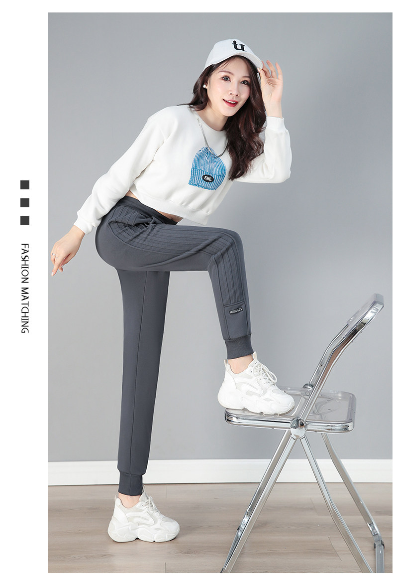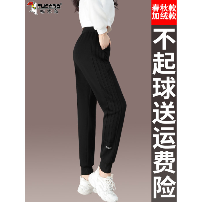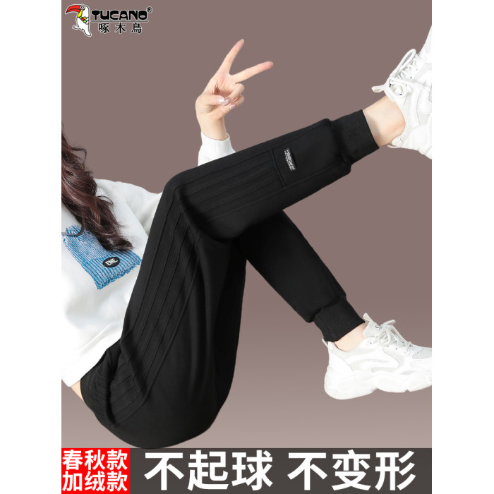 啄木鳥灰色運動褲女春秋2026新款小個子衛褲休閒九分女士加絨褲子