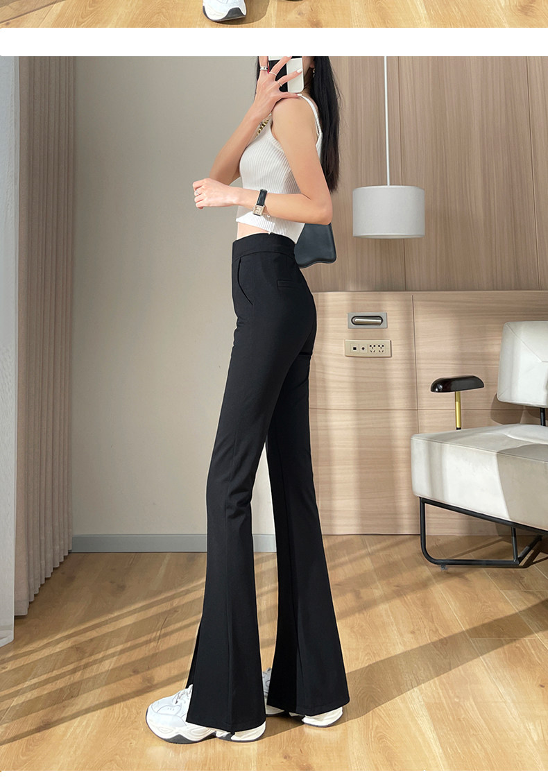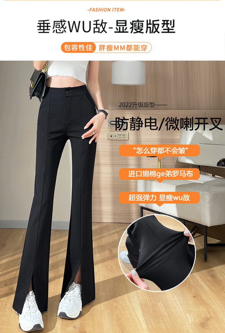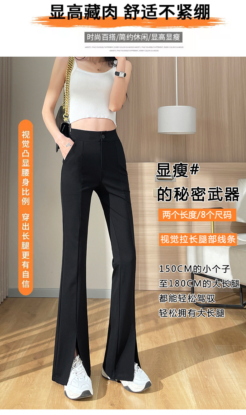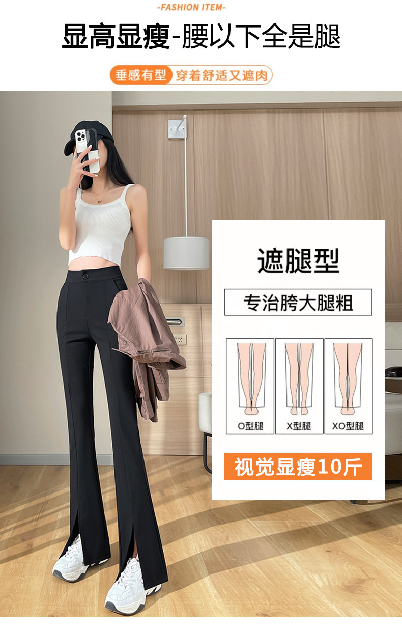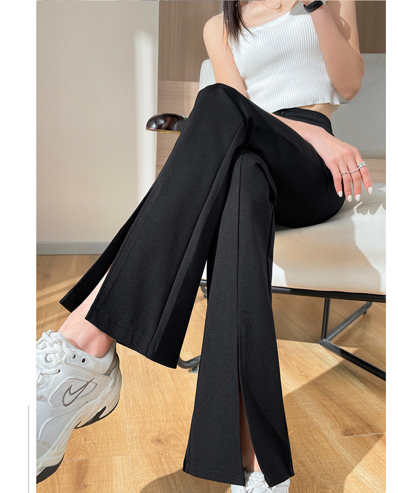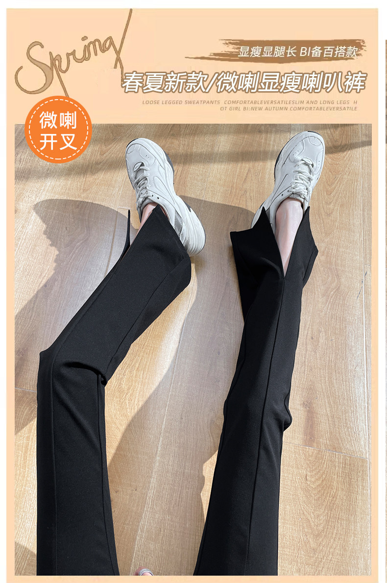 冰絲喇叭褲女夏季薄款2025爆款垂感高腰大碼顯瘦開叉加長微喇褲子