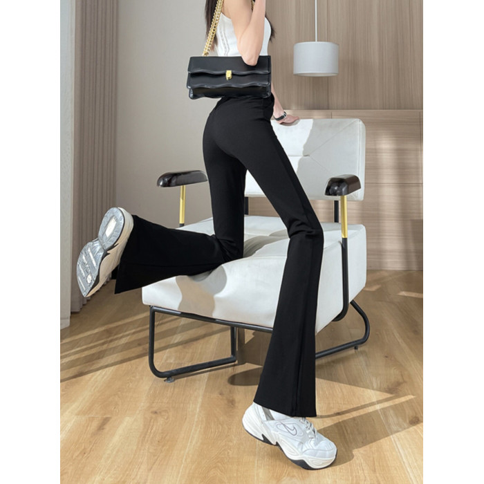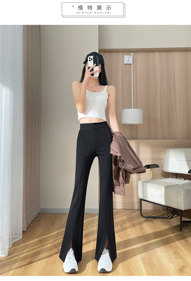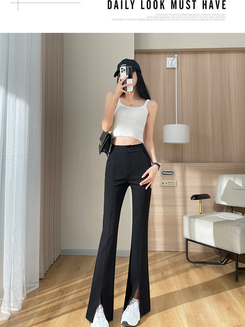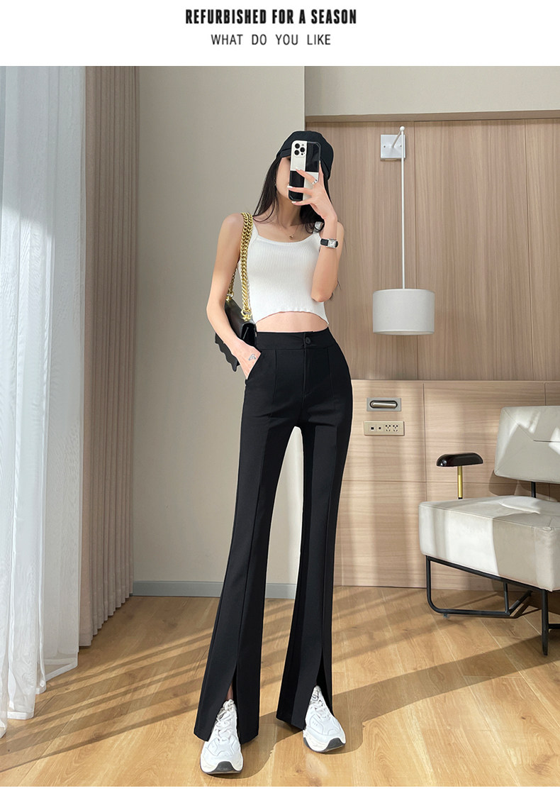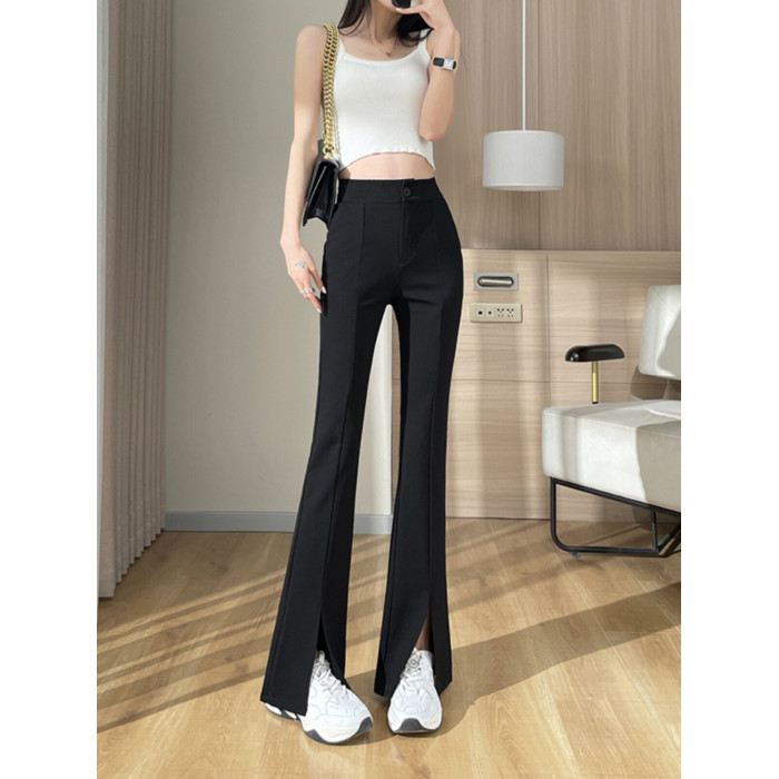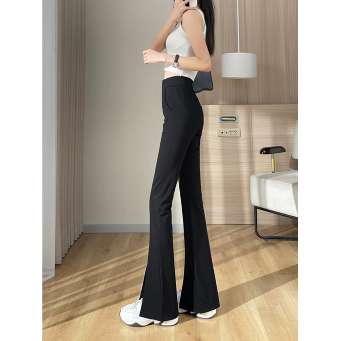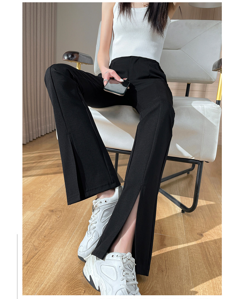 冰絲喇叭褲女夏季薄款2025爆款垂感高腰大碼顯瘦開叉加長微喇褲子