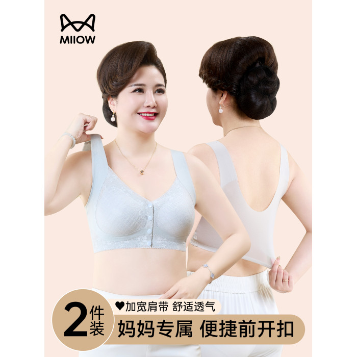 貓人媽媽內衣文胸中老年專用前釦收副乳防下垂大碼薄款無鋼圈胸罩