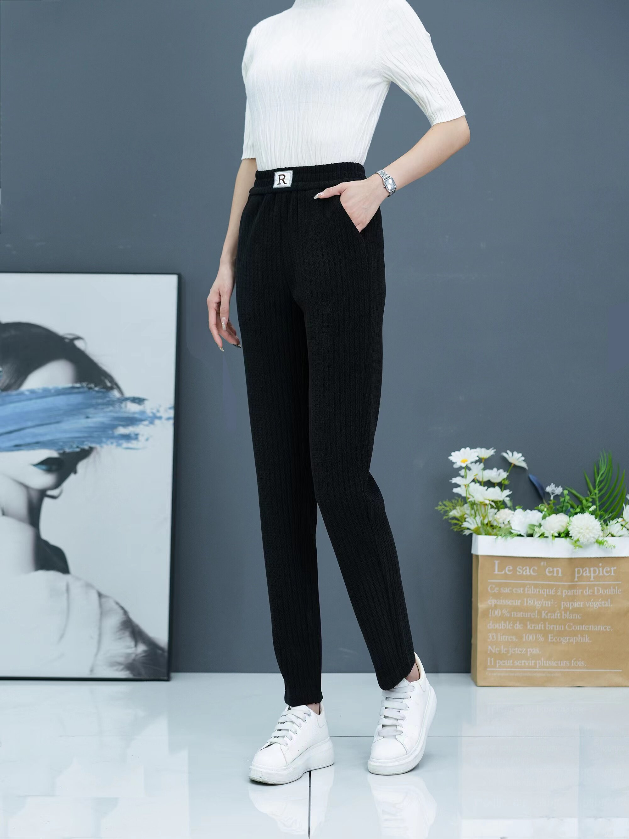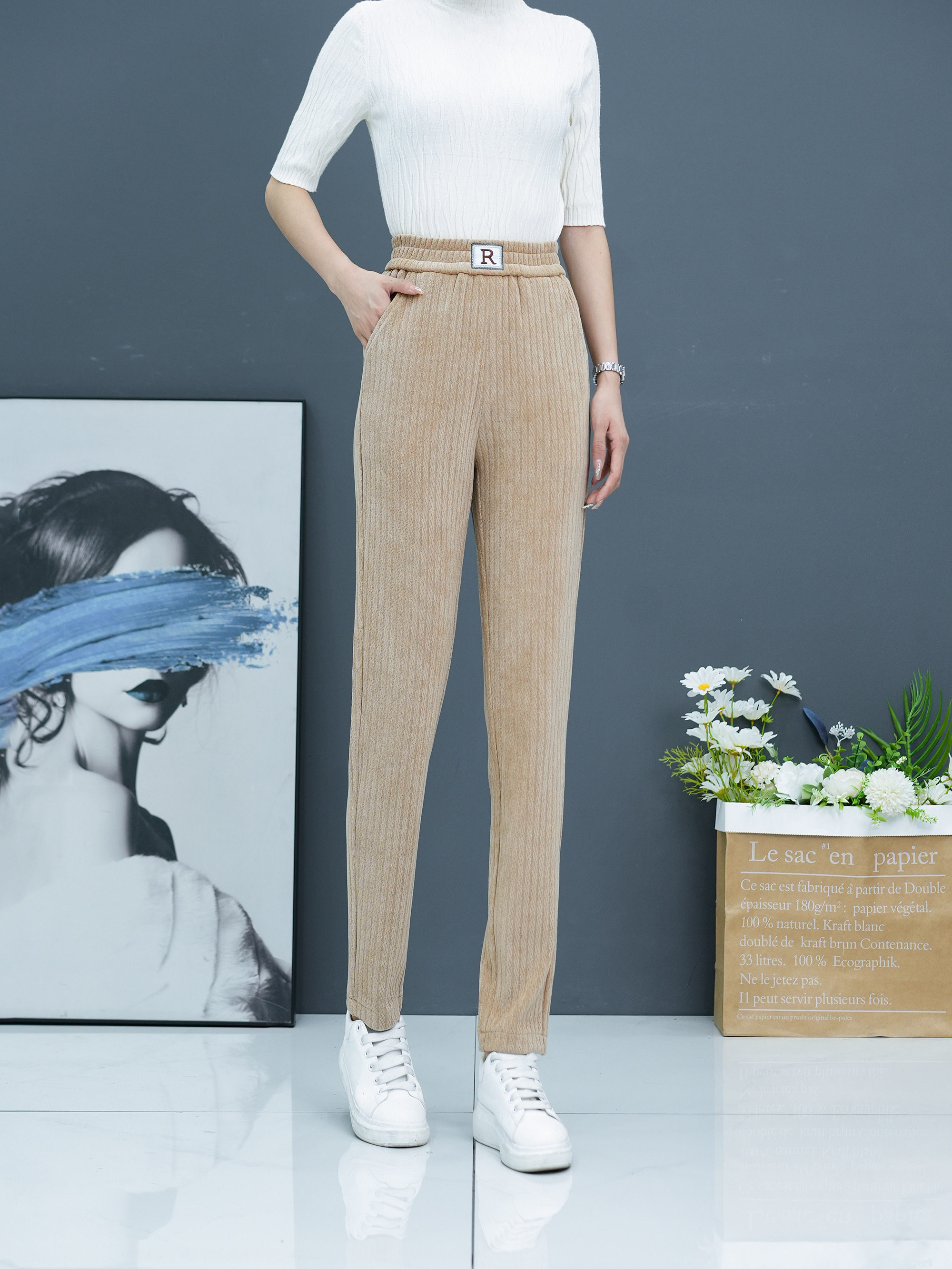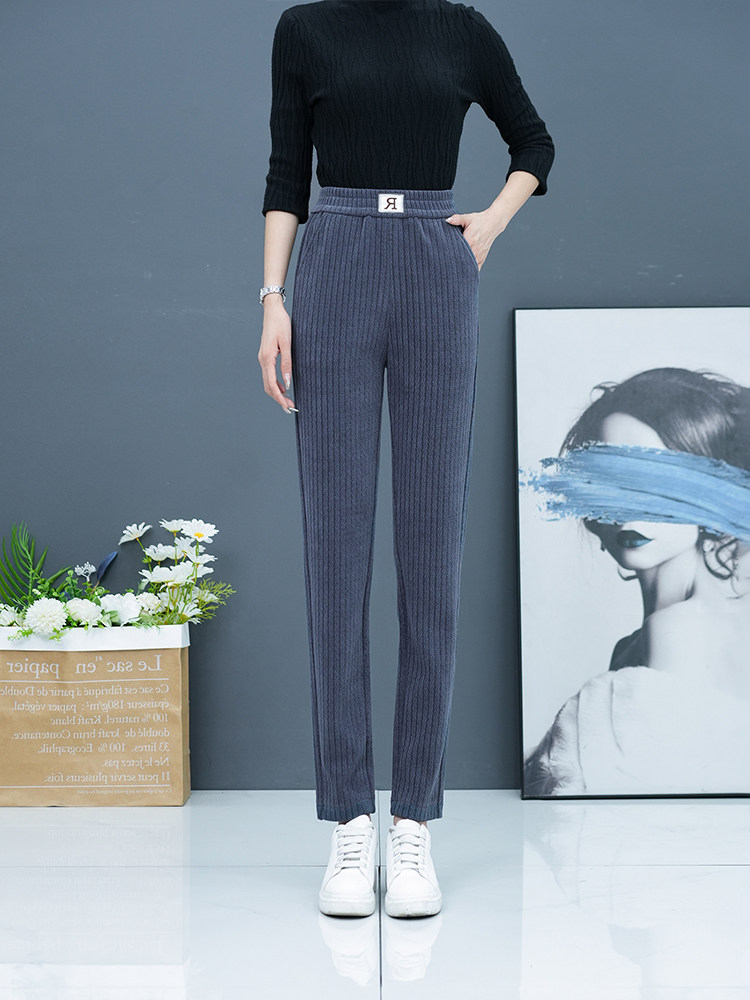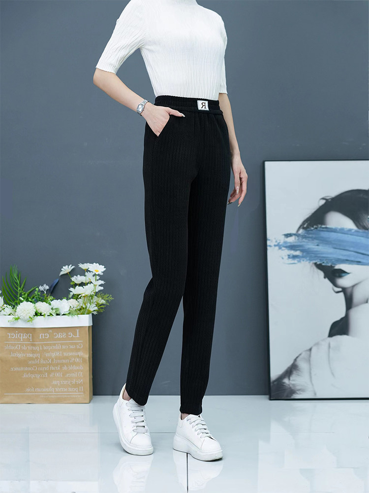 2025秋冬新款小個子高腰褲女顯瘦小腳褲休閒褲加絨褲百搭哈倫衛褲