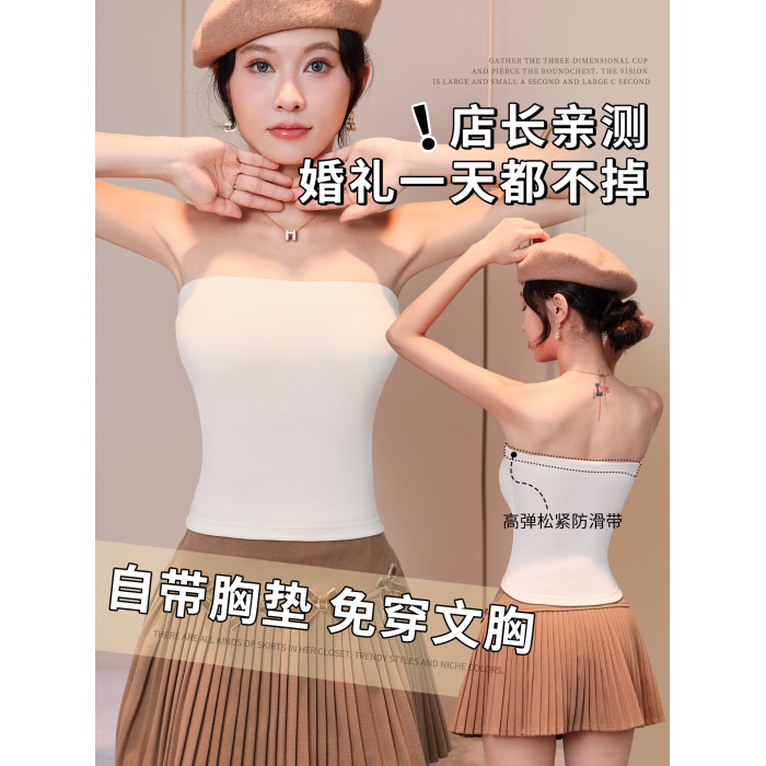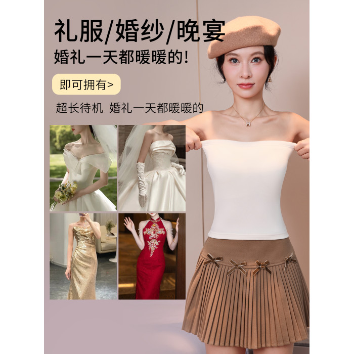婚紗保暖神器無肩帶抹胸內衣隱形裹胸內搭新娘加絨冬季禮服打底衣