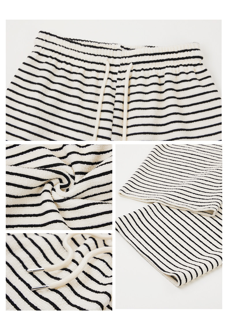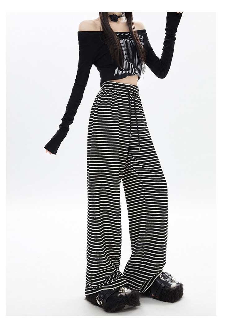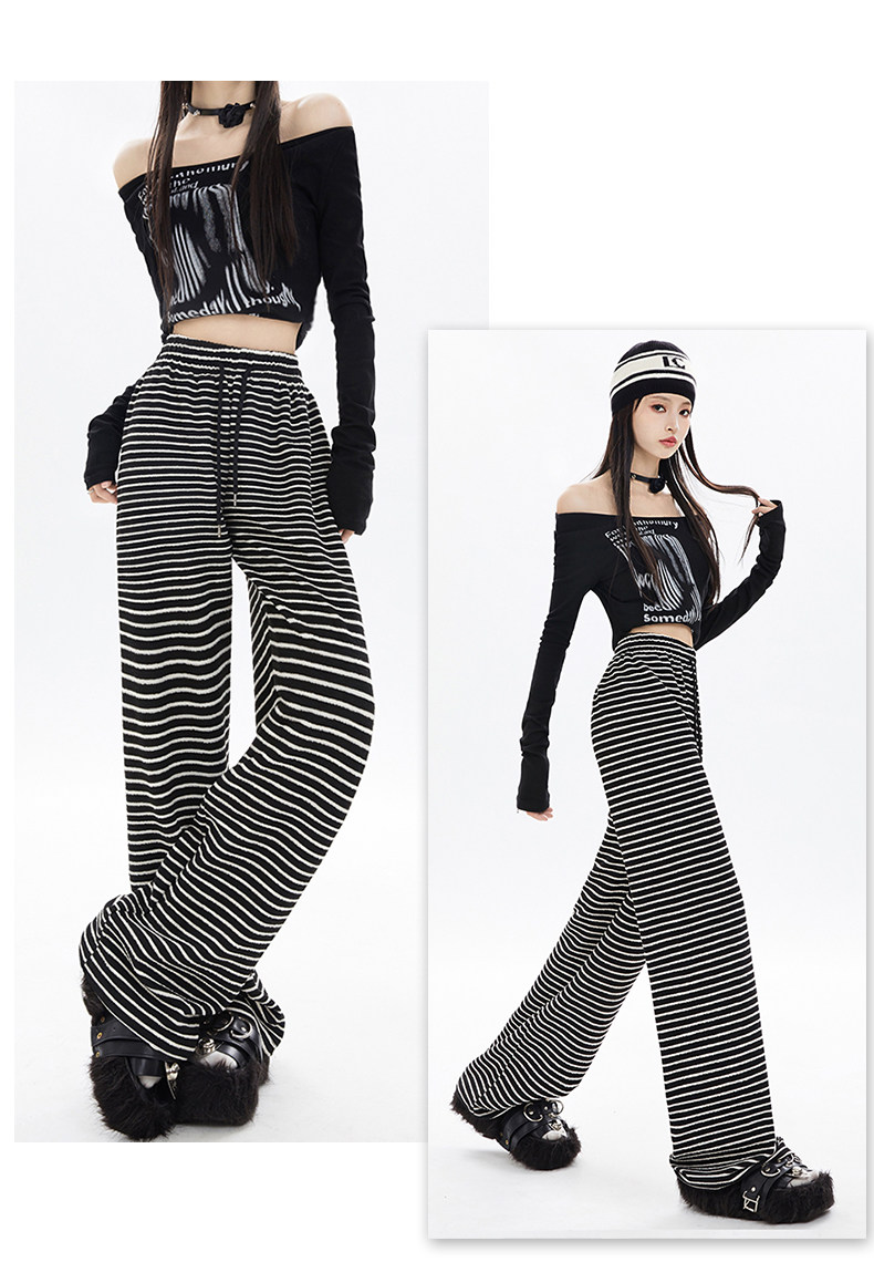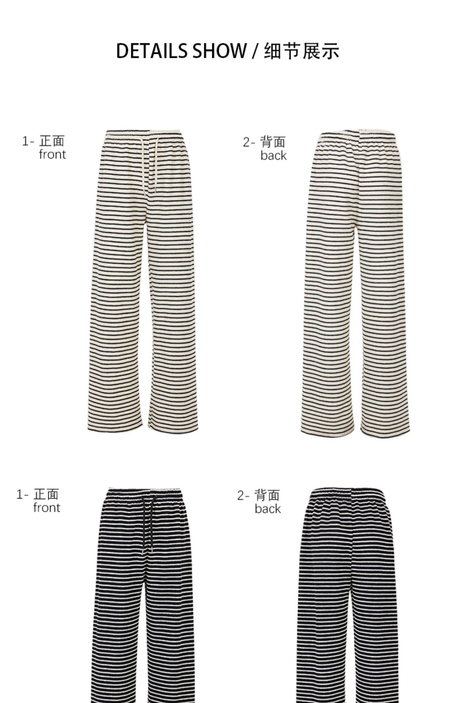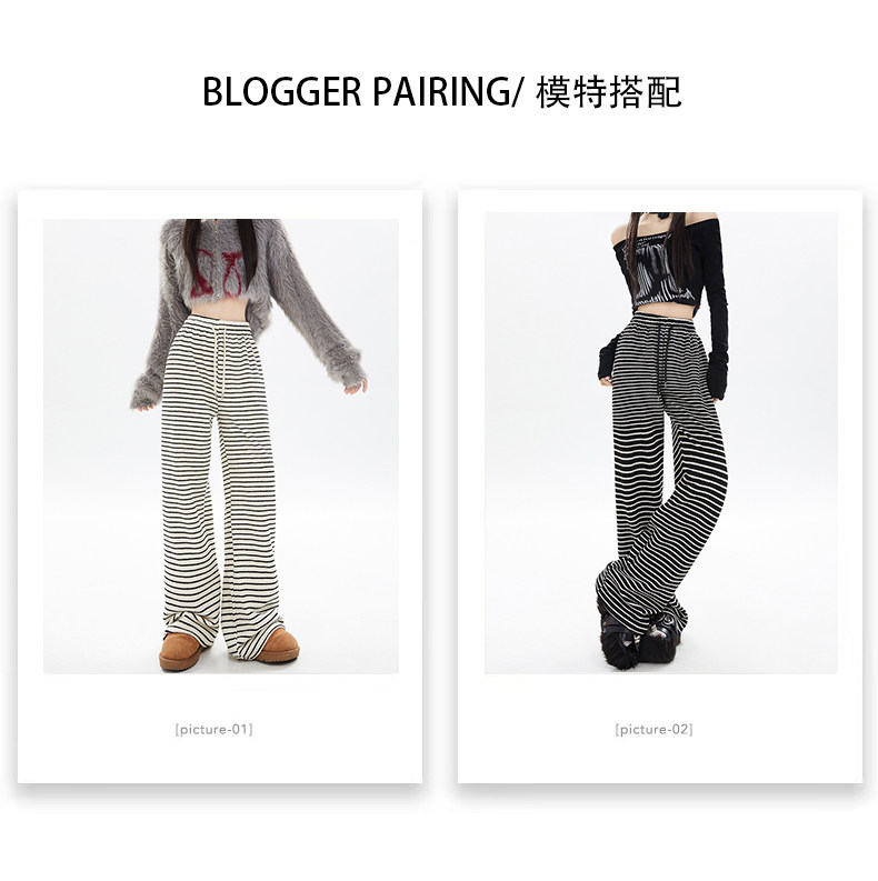 拉夏貝爾Lababite白色加絨條紋濶腿褲冬季女2025新款休閒毛巾褲子