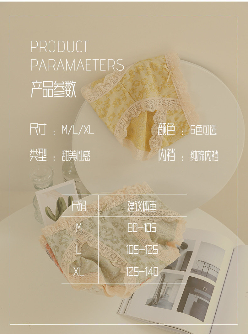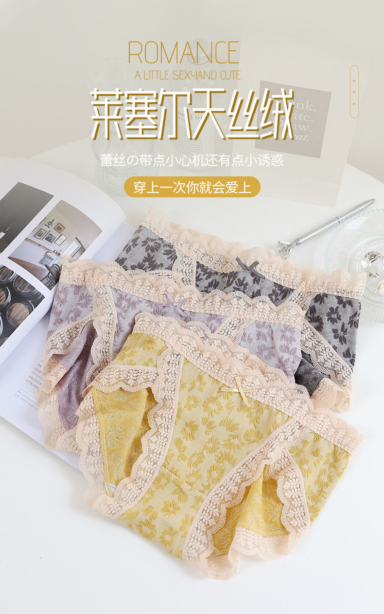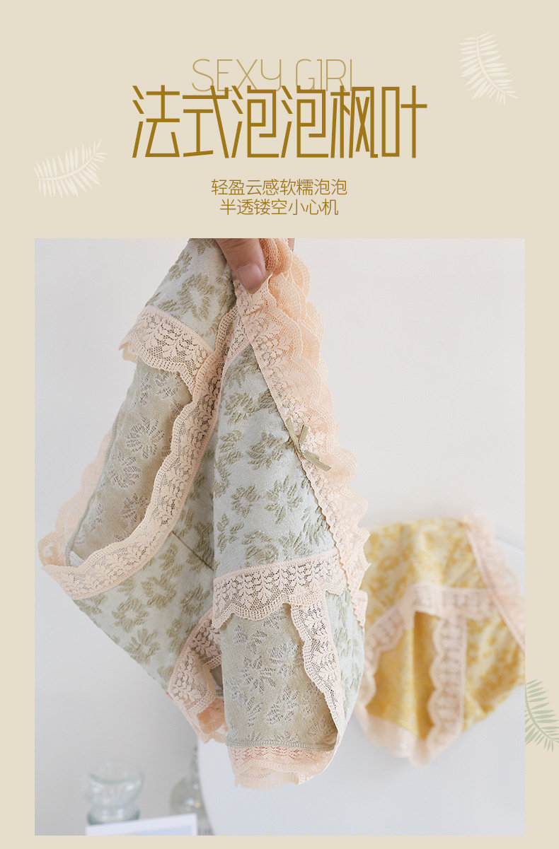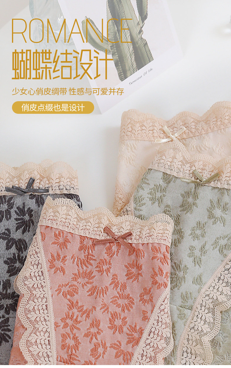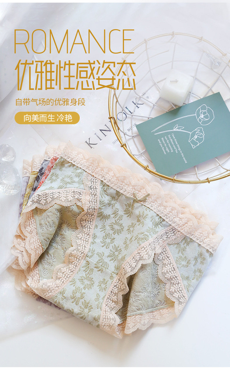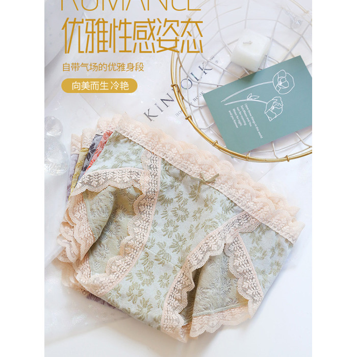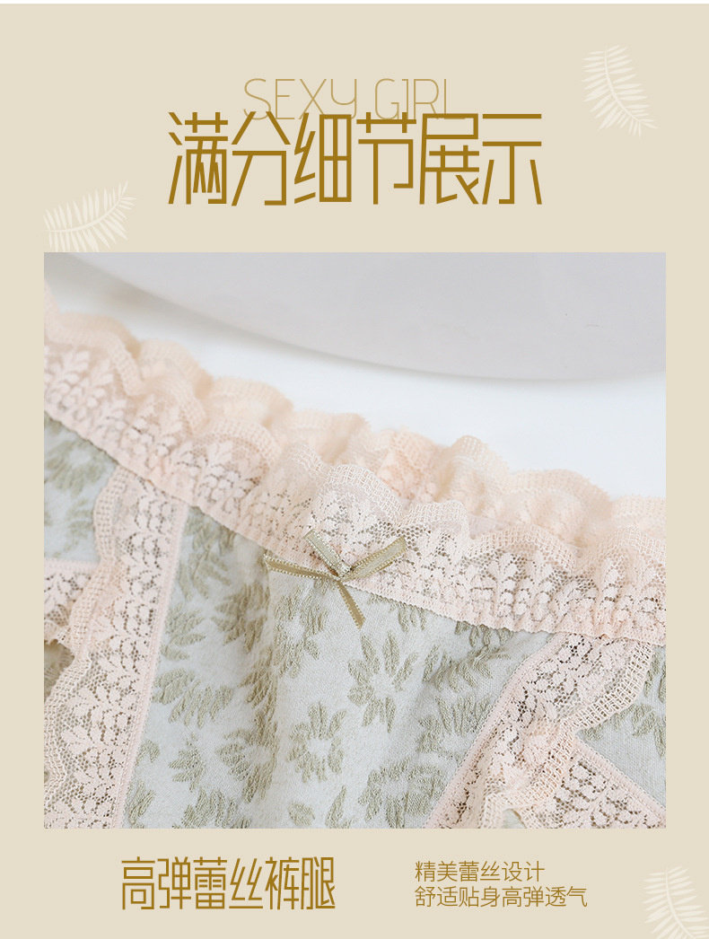 【情竇初開】內褲少女生無痕純棉抗菌蕾絲泡泡棉日系甜美中腰短褲