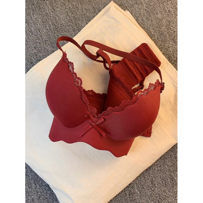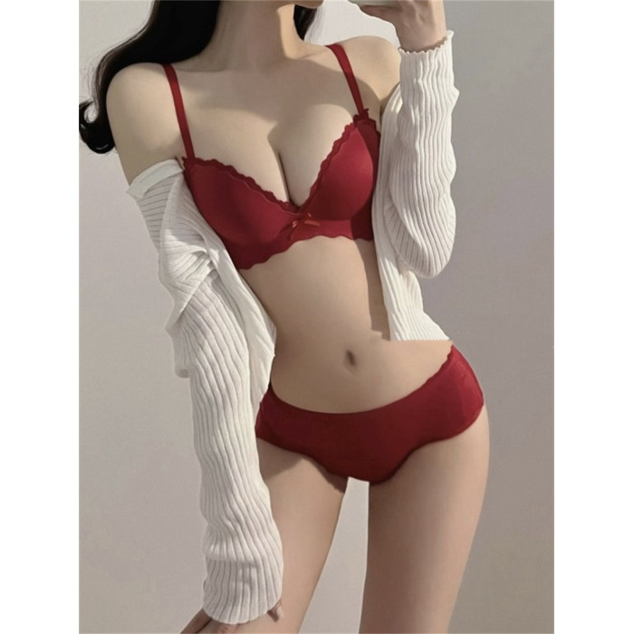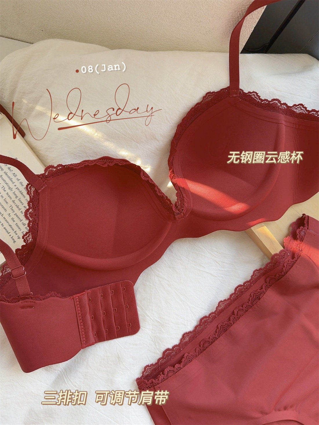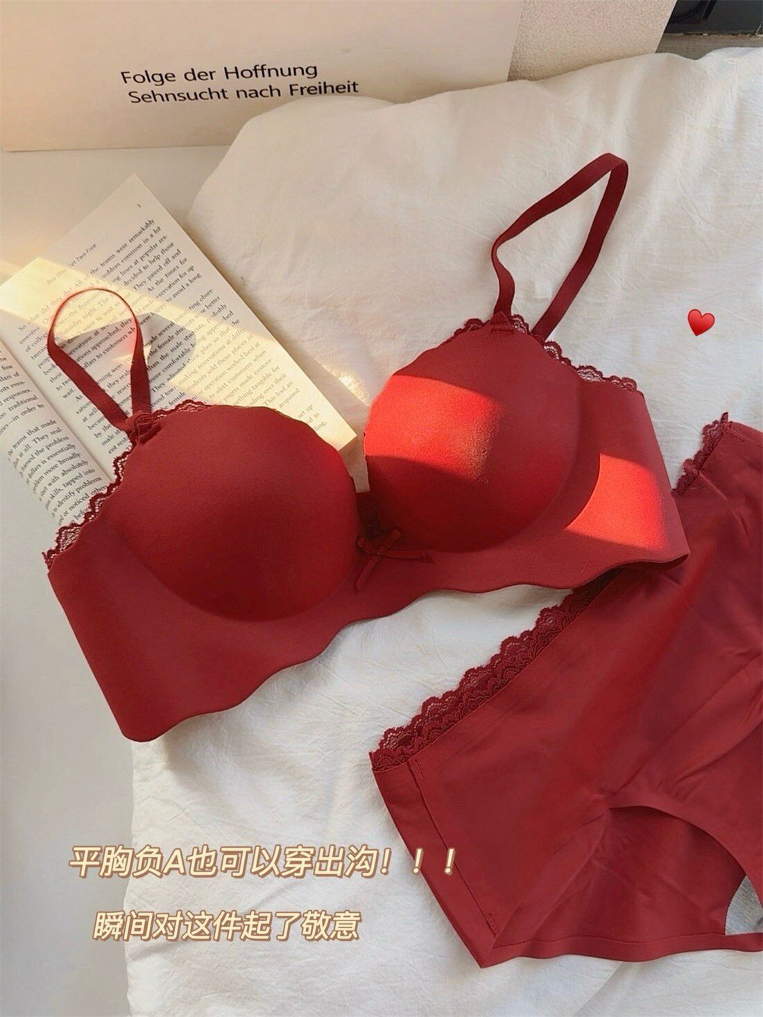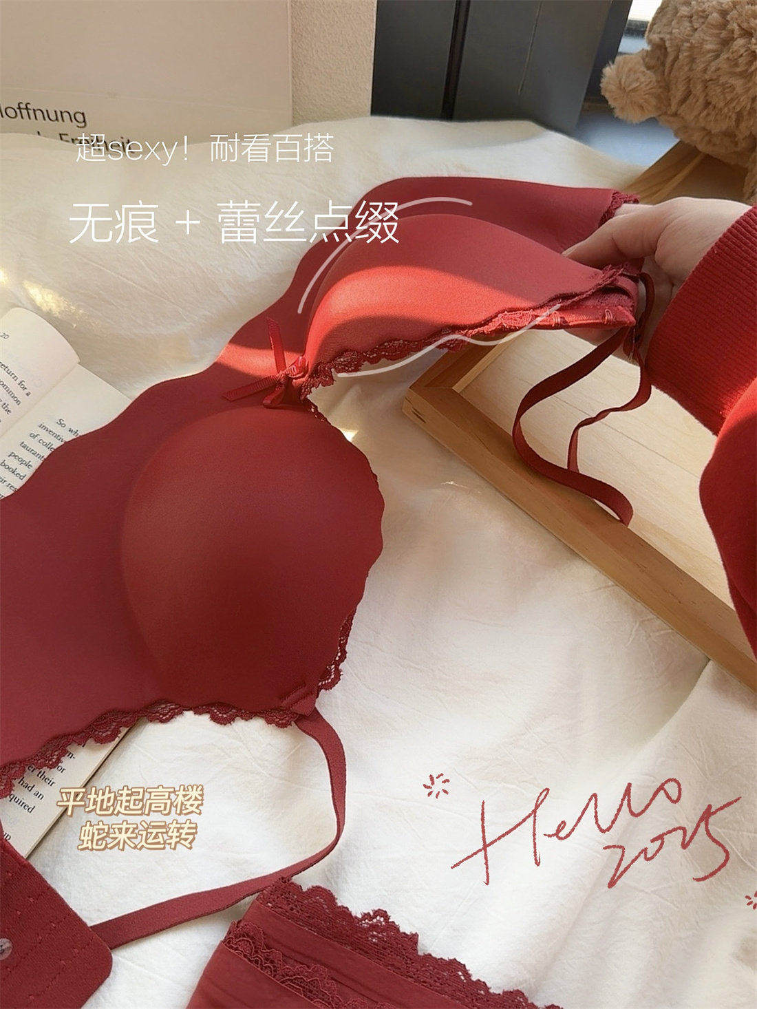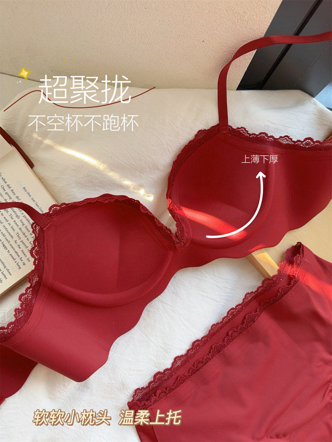 紅色內衣女小胸聚攏顯大本命年無鋼圈無痕結婚新娘馬年文胸罩套裝
