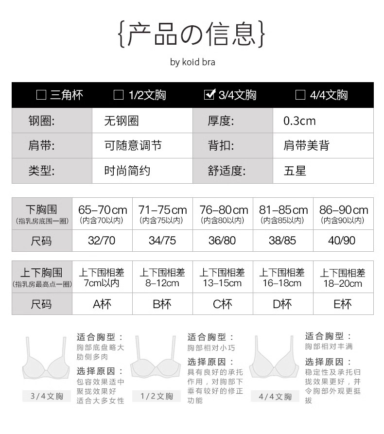 | 罩杯款式 | 3/4罩杯 |
