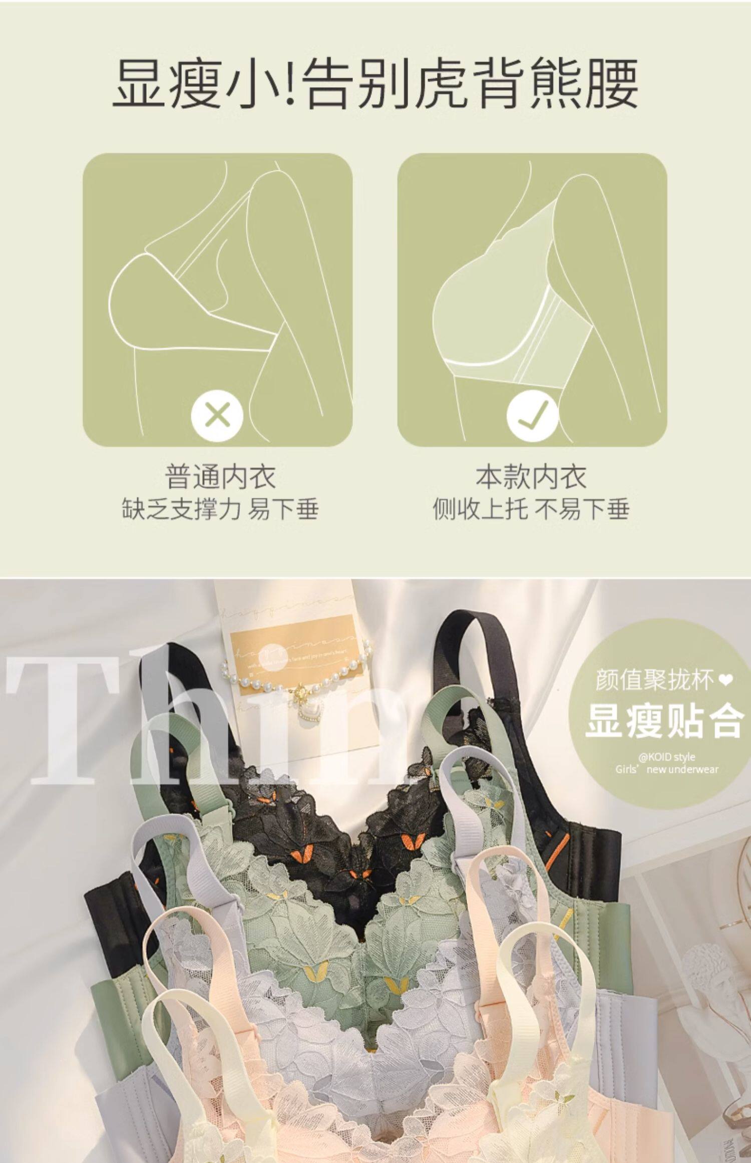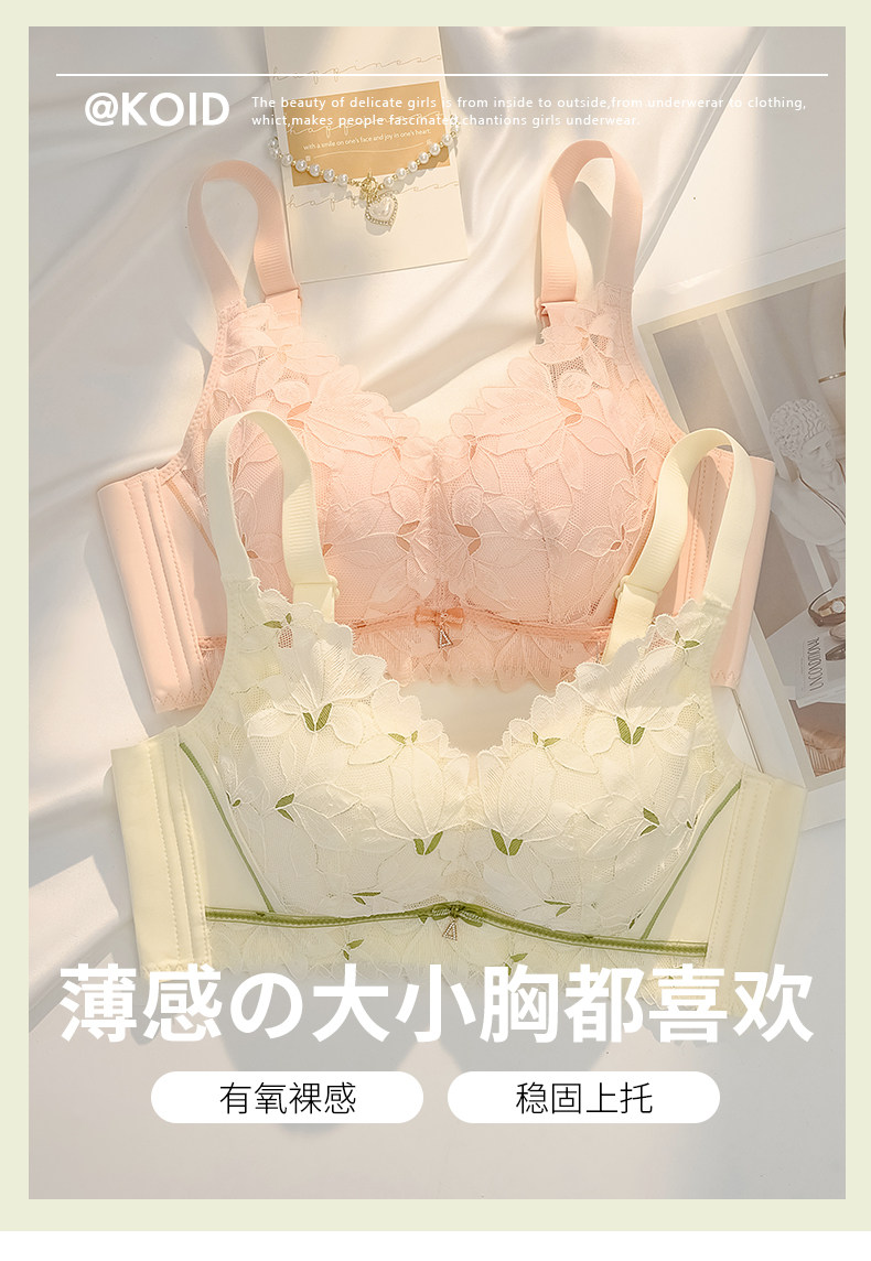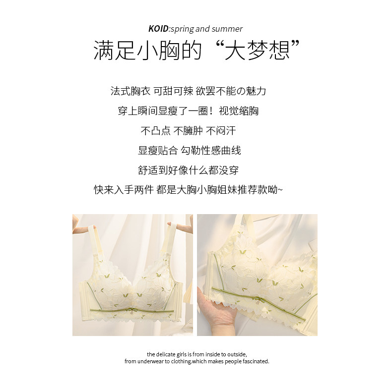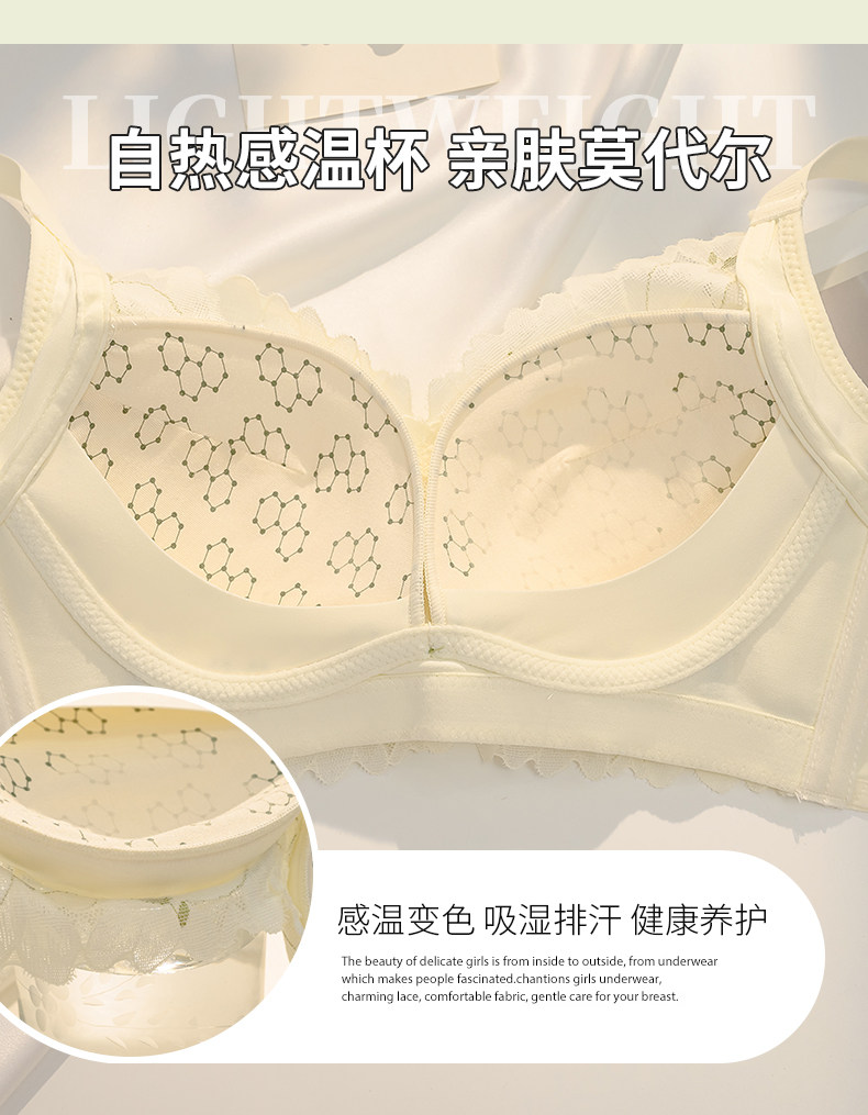莫代爾內衣女士聚攏小胸無鋼圈上托防下垂收副乳調整型薄款文胸罩