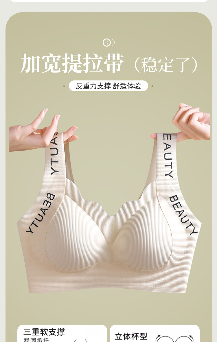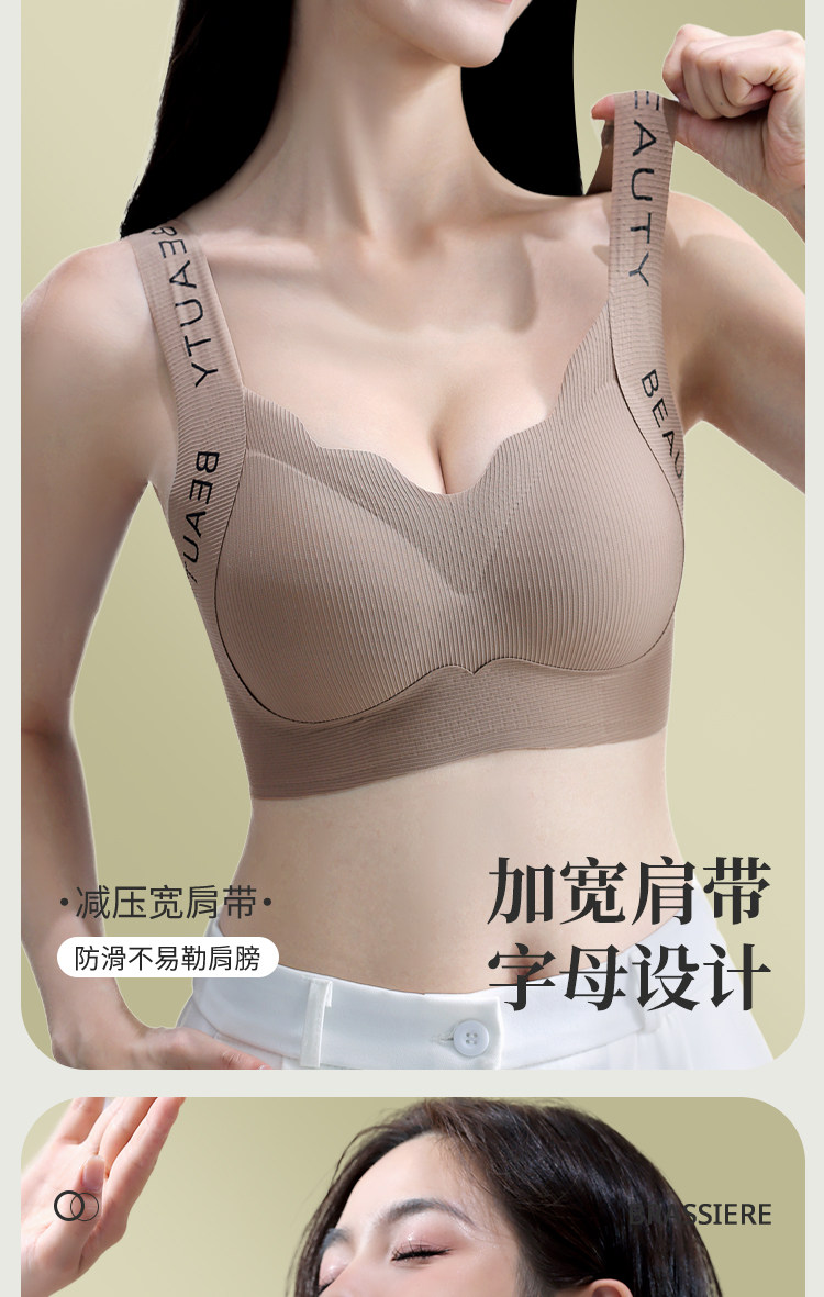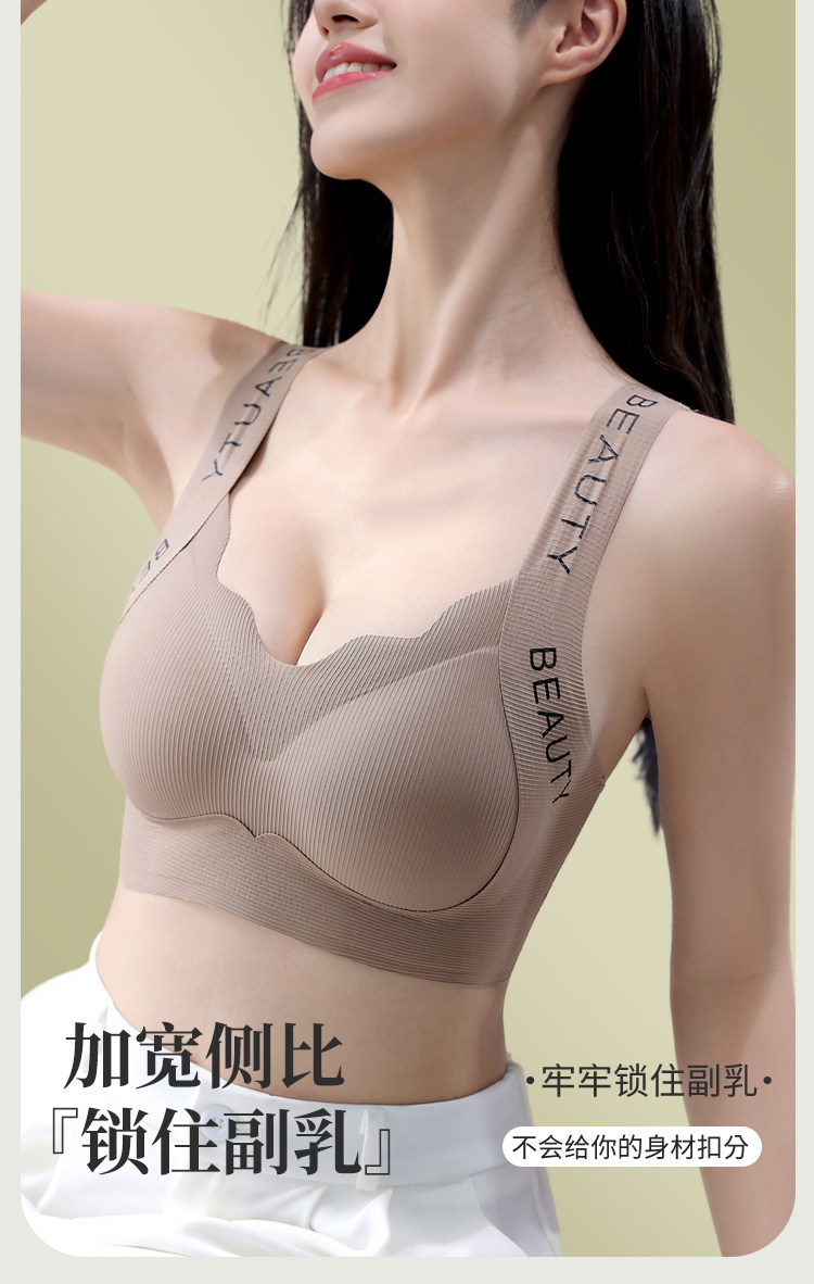 背心式無痕運動內衣女無鋼圈大胸顯小提拉聚攏文胸罩夏季薄款大碼