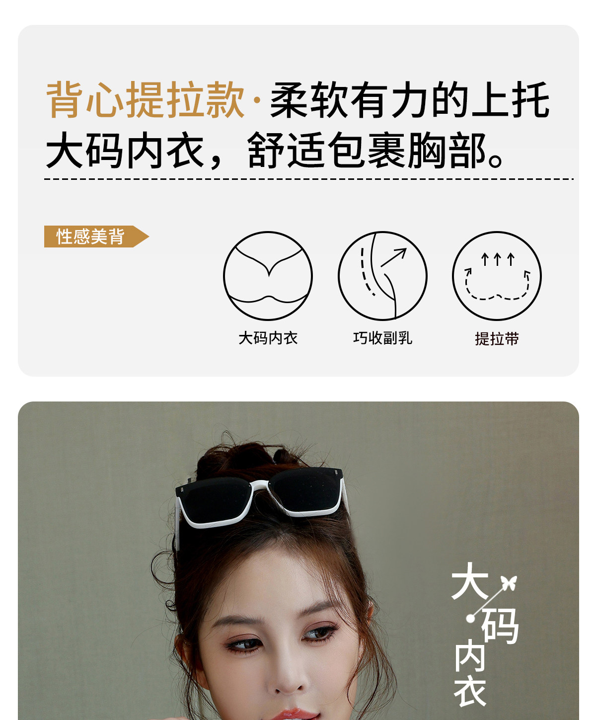 大碼內衣聚攏收副乳防下垂上托大胸顯小美背背心一體式女士文胸罩