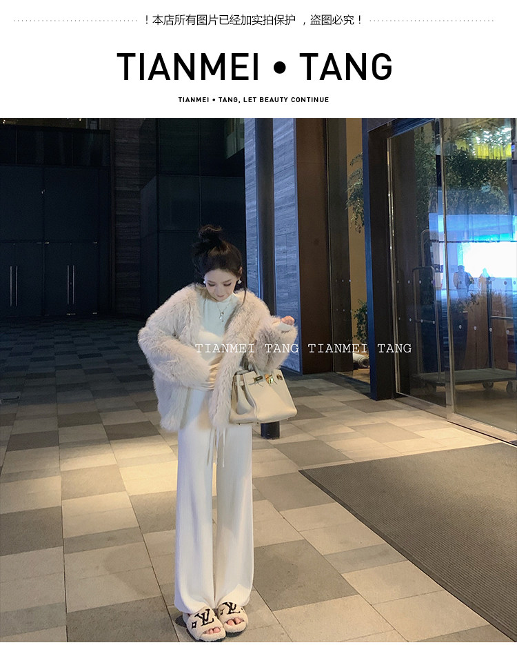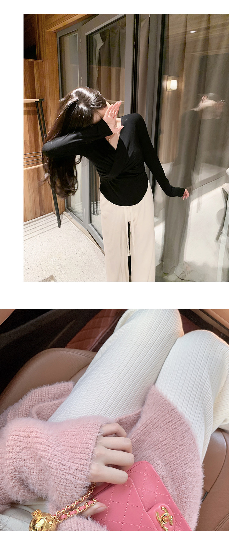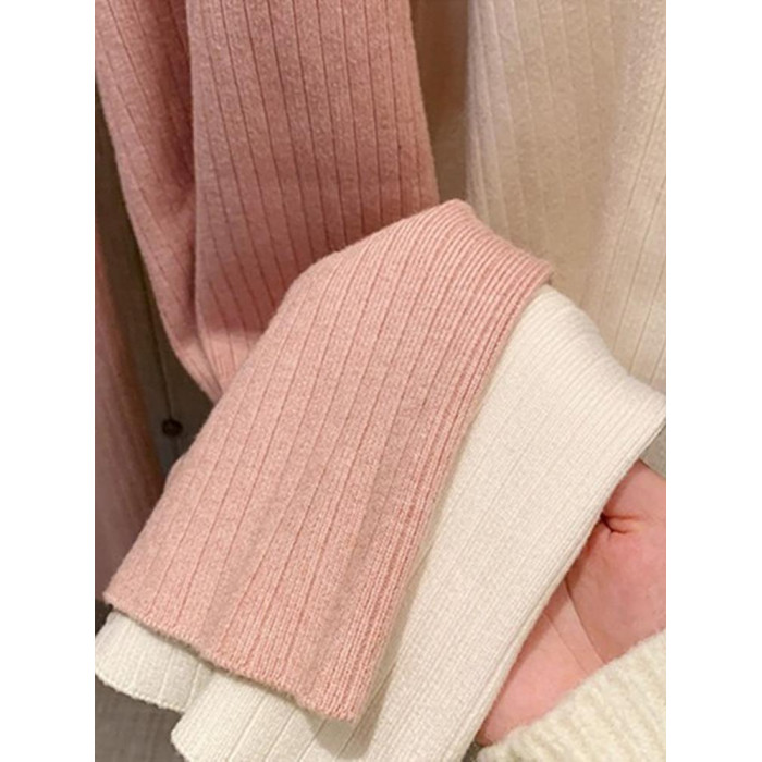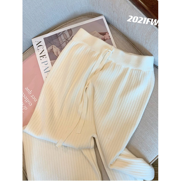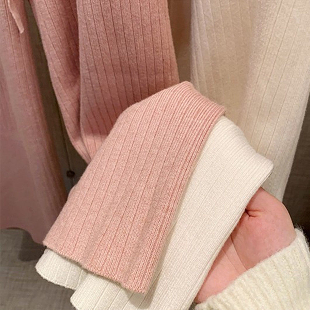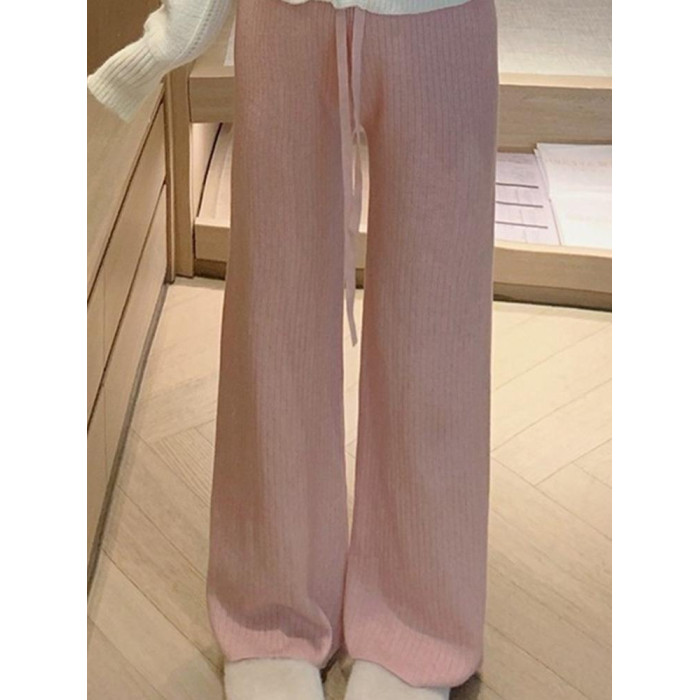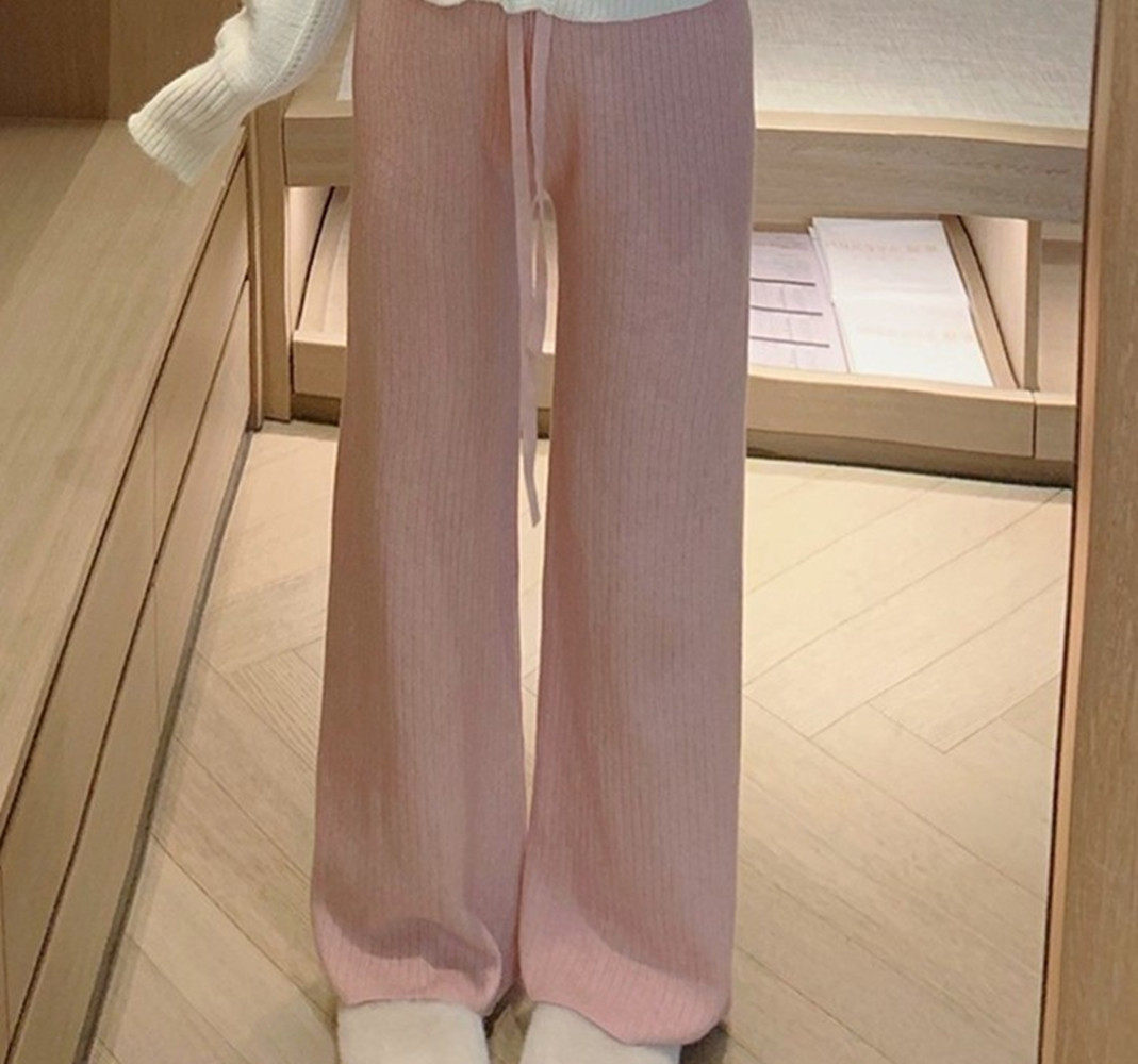 小個子145粉色針織濶腿褲子女秋冬女裝150高腰垂感百搭直筒休閒褲
