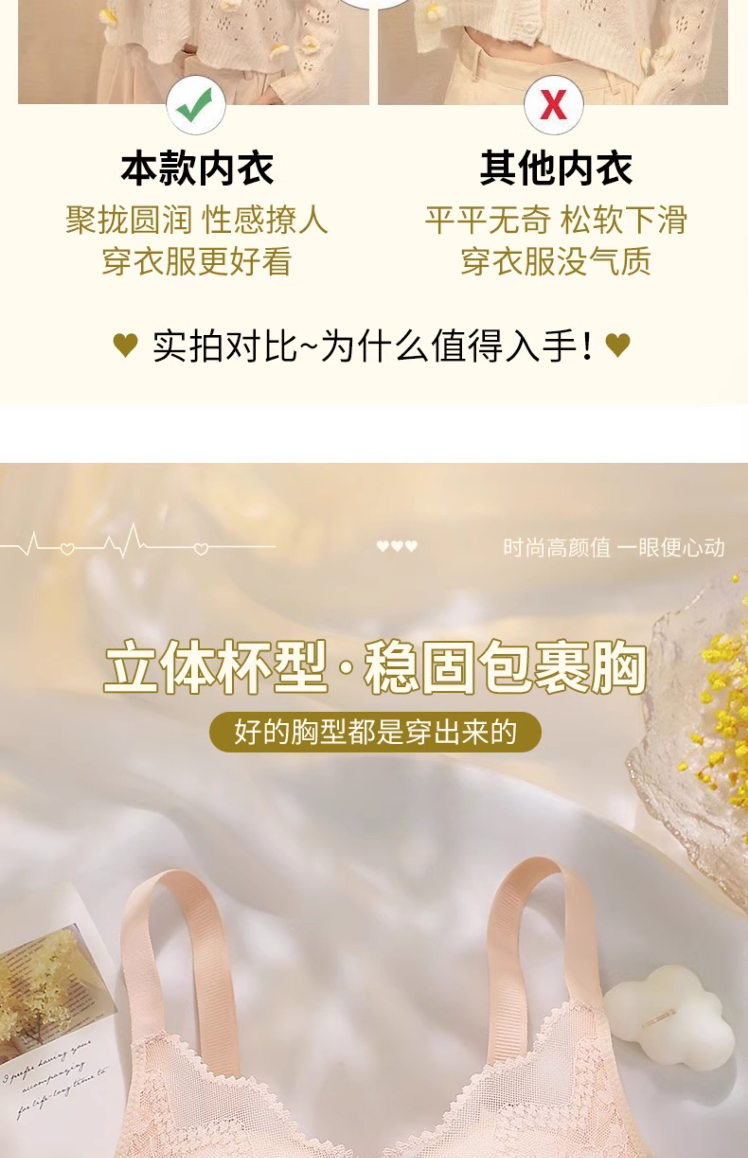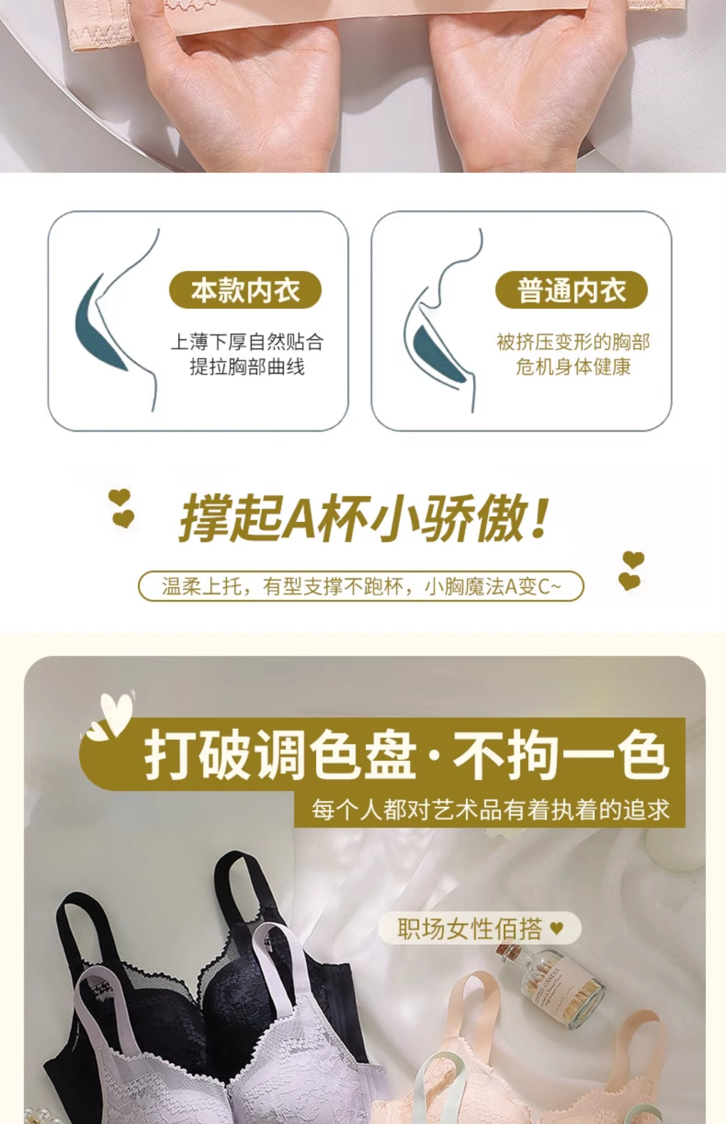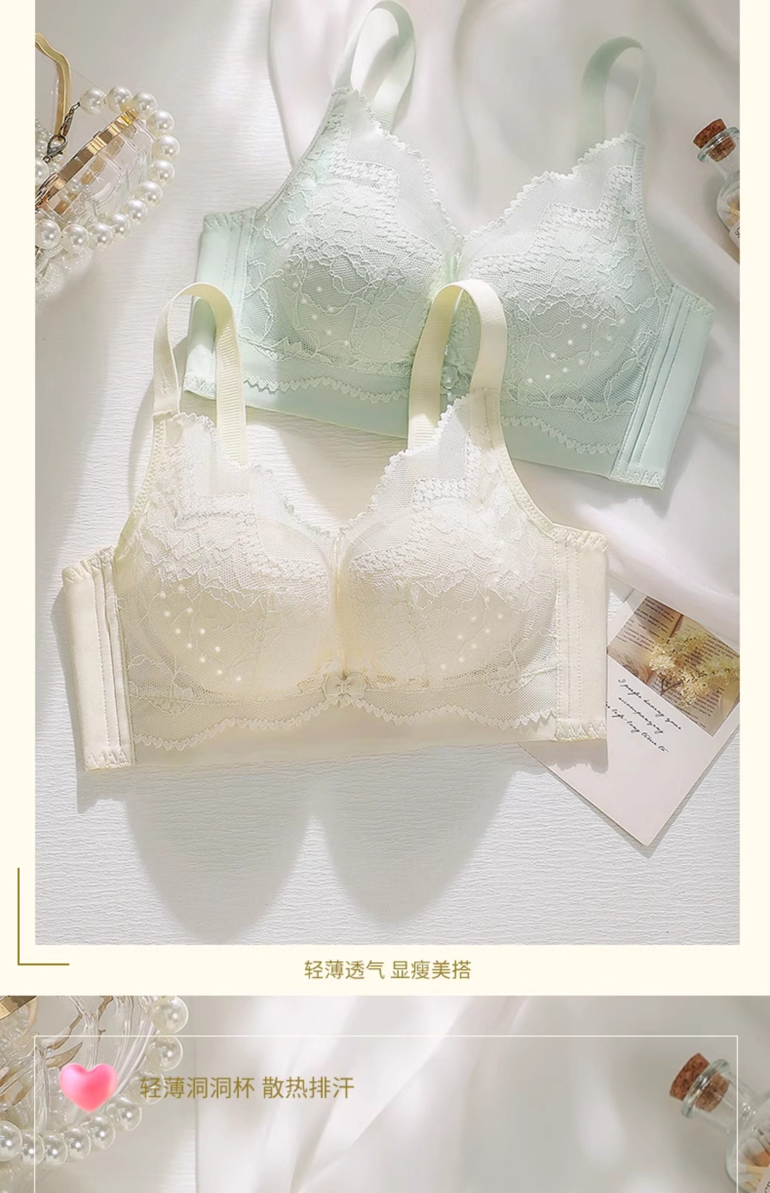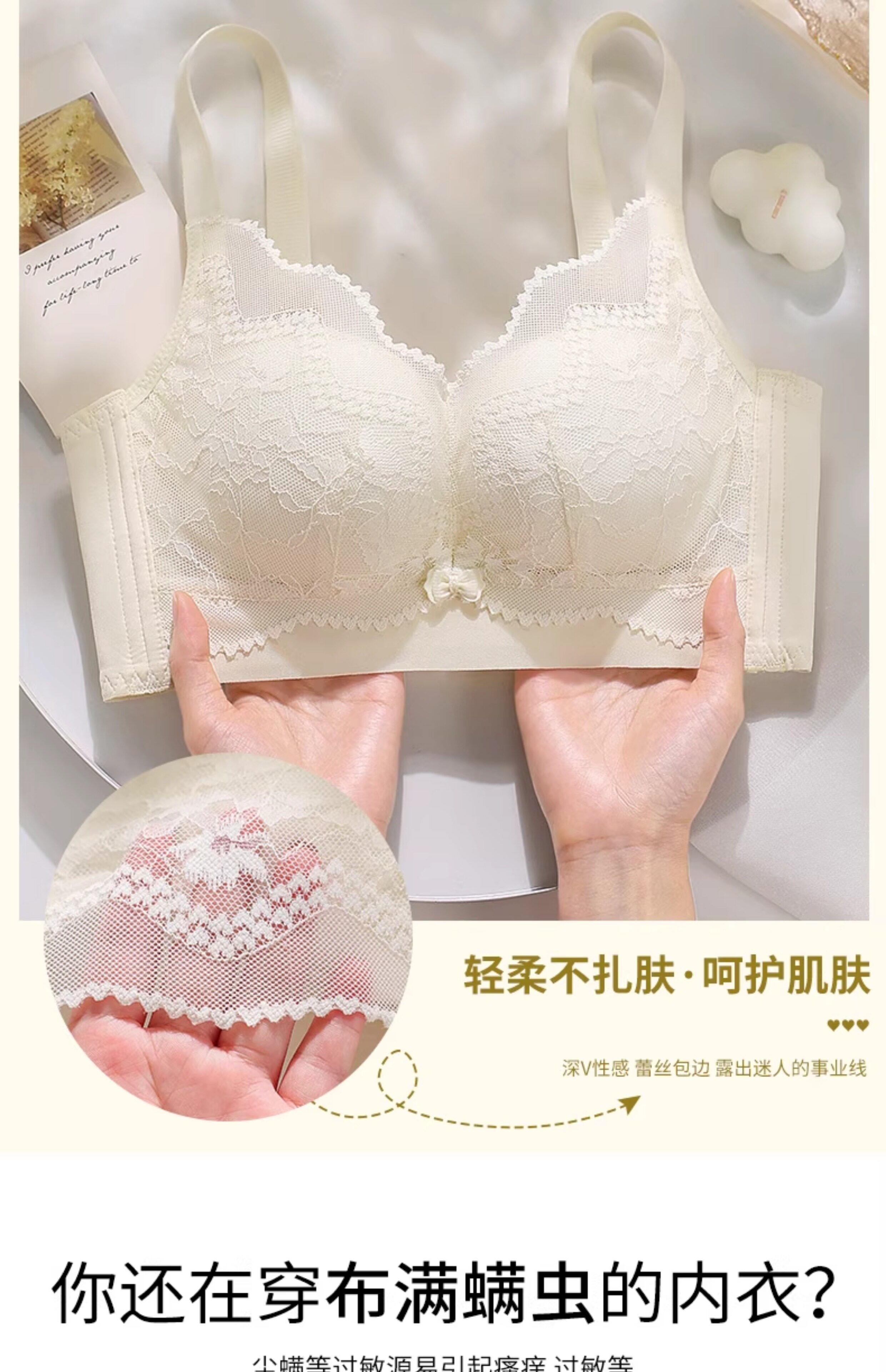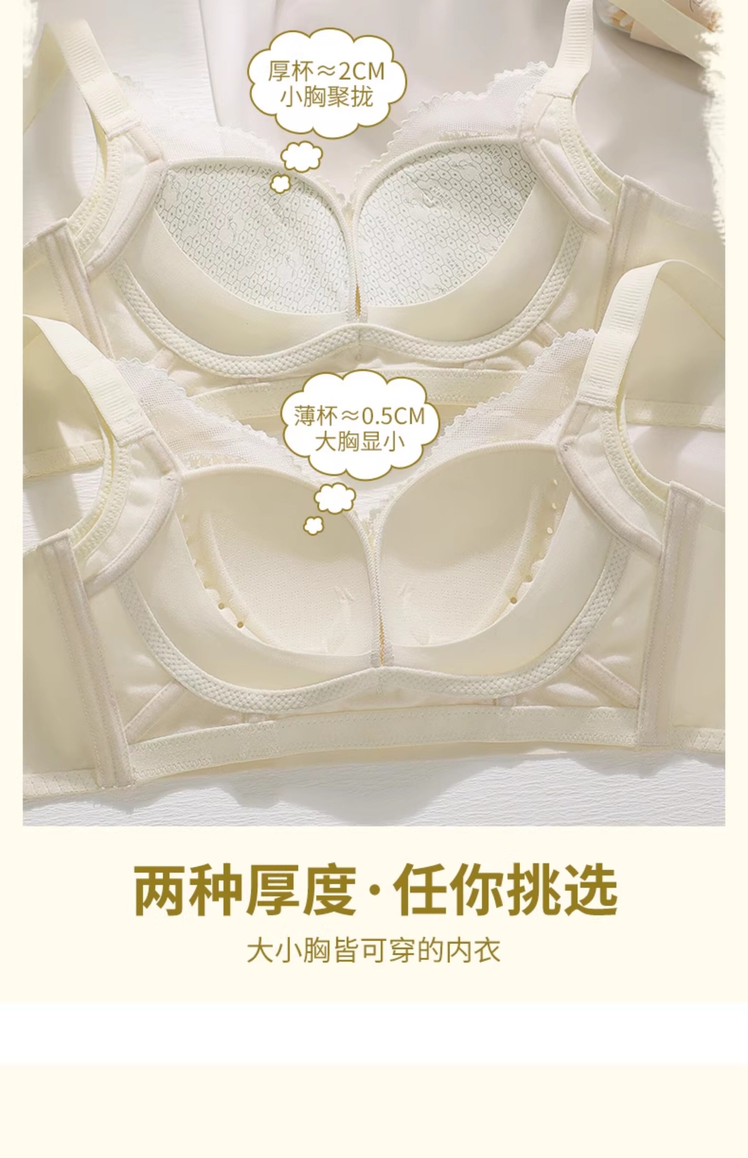 貓人內衣女小胸聚攏收副乳防下垂無鋼圈大胸顯小蕾絲夏季薄款文胸