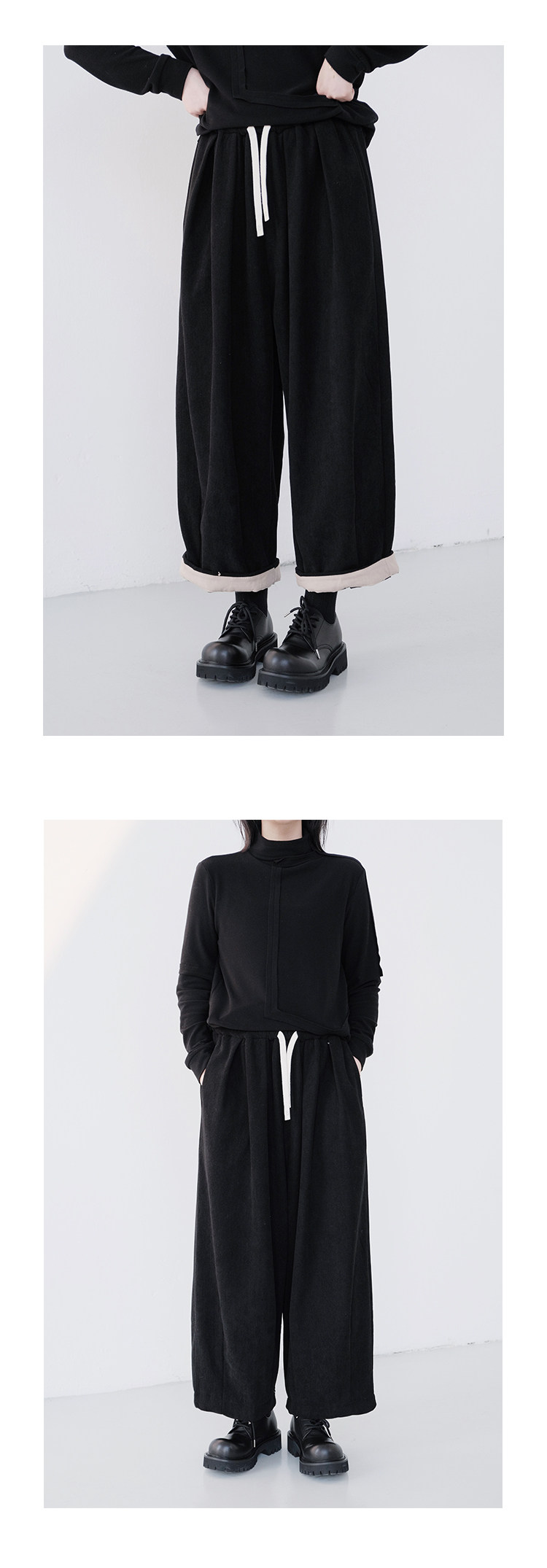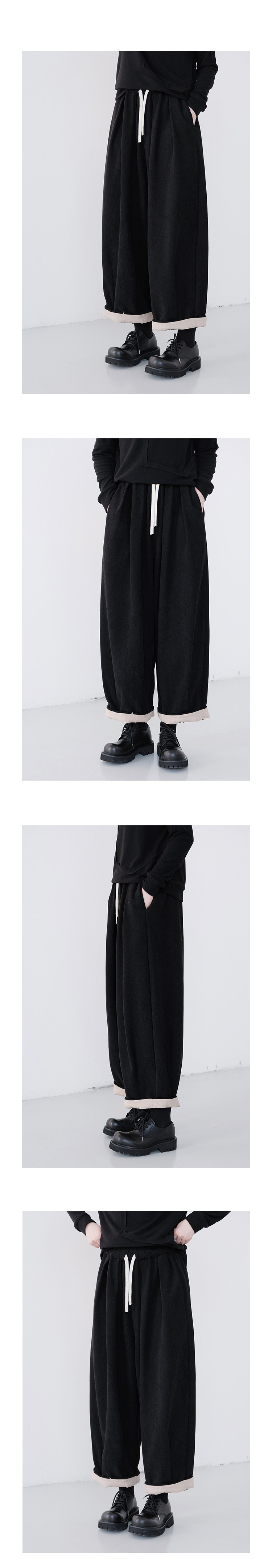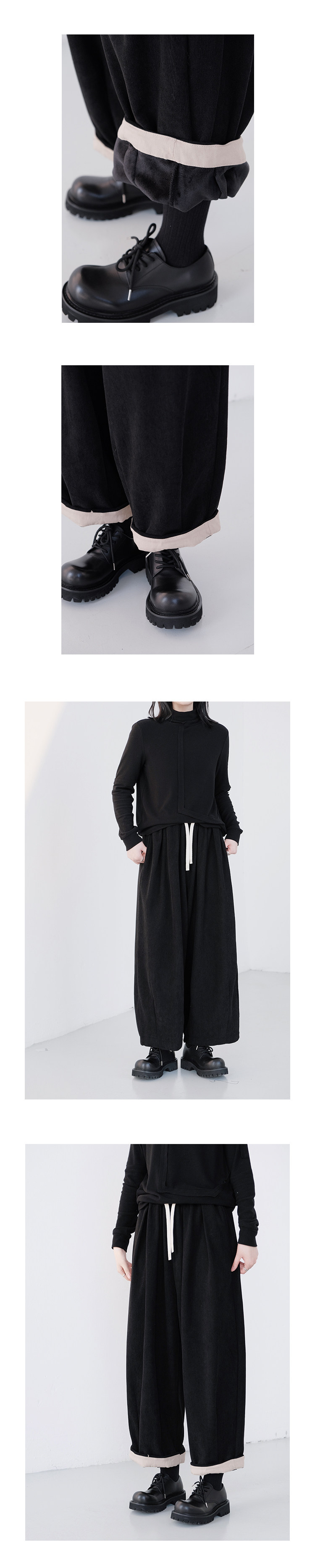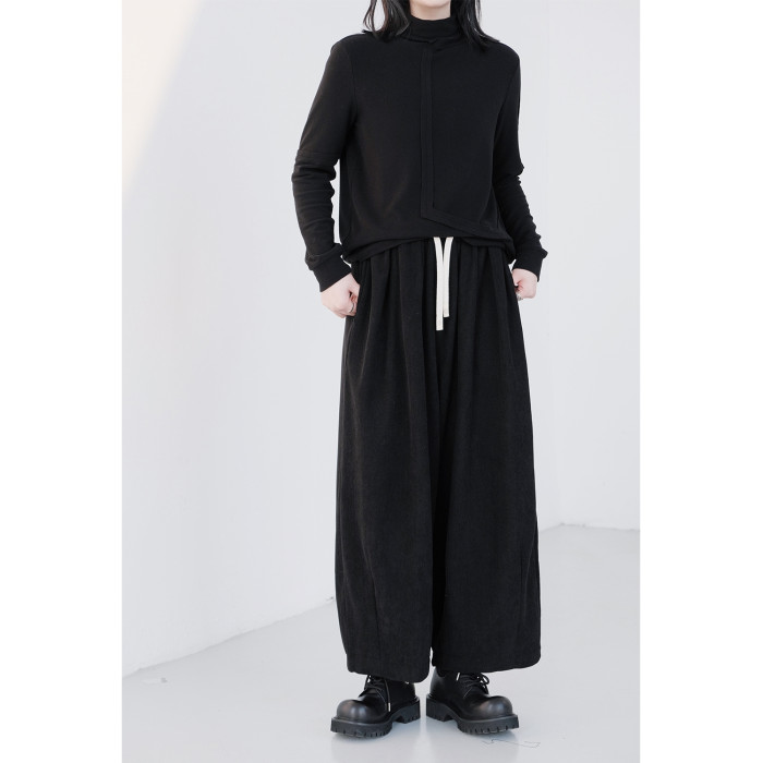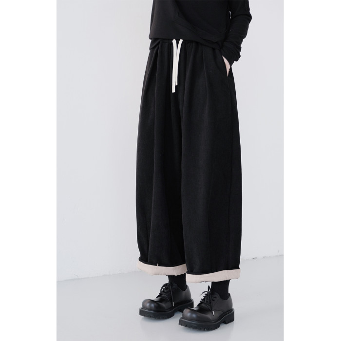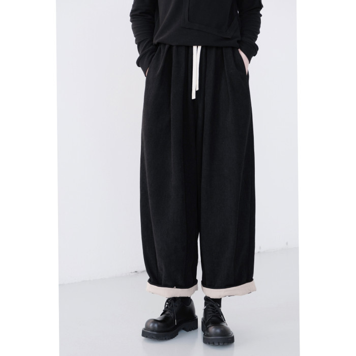 叁拾一 / 小衆設計款拼接撞色厚絨濶腿褲休閒寬鬆顯瘦燈芯絨長褲