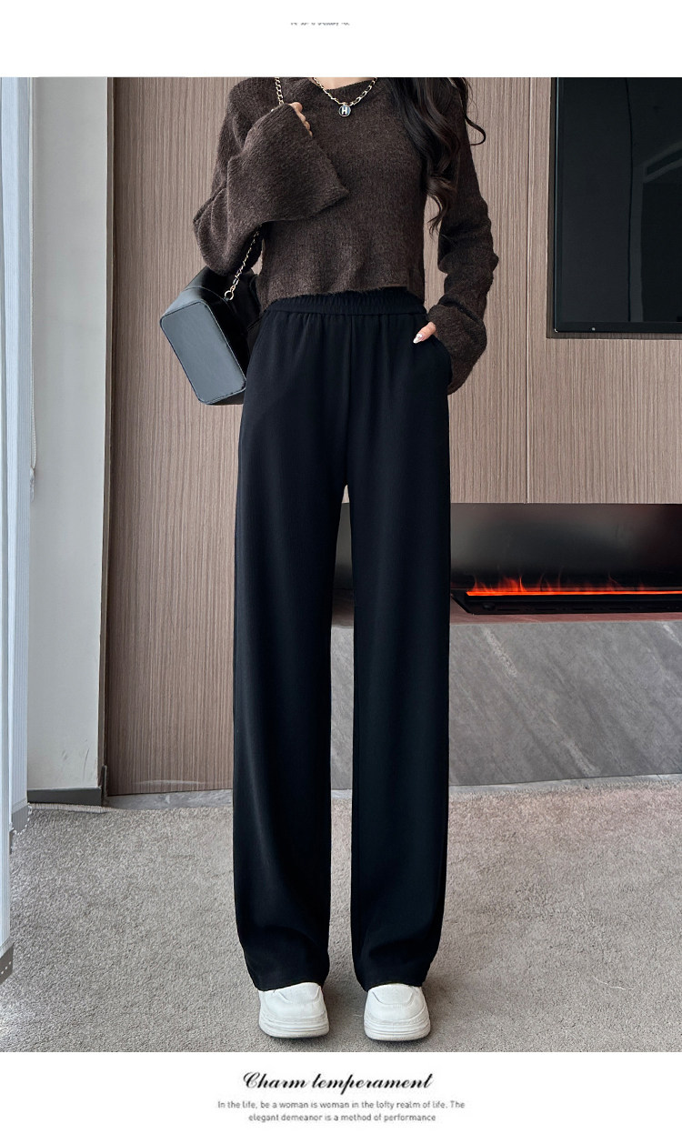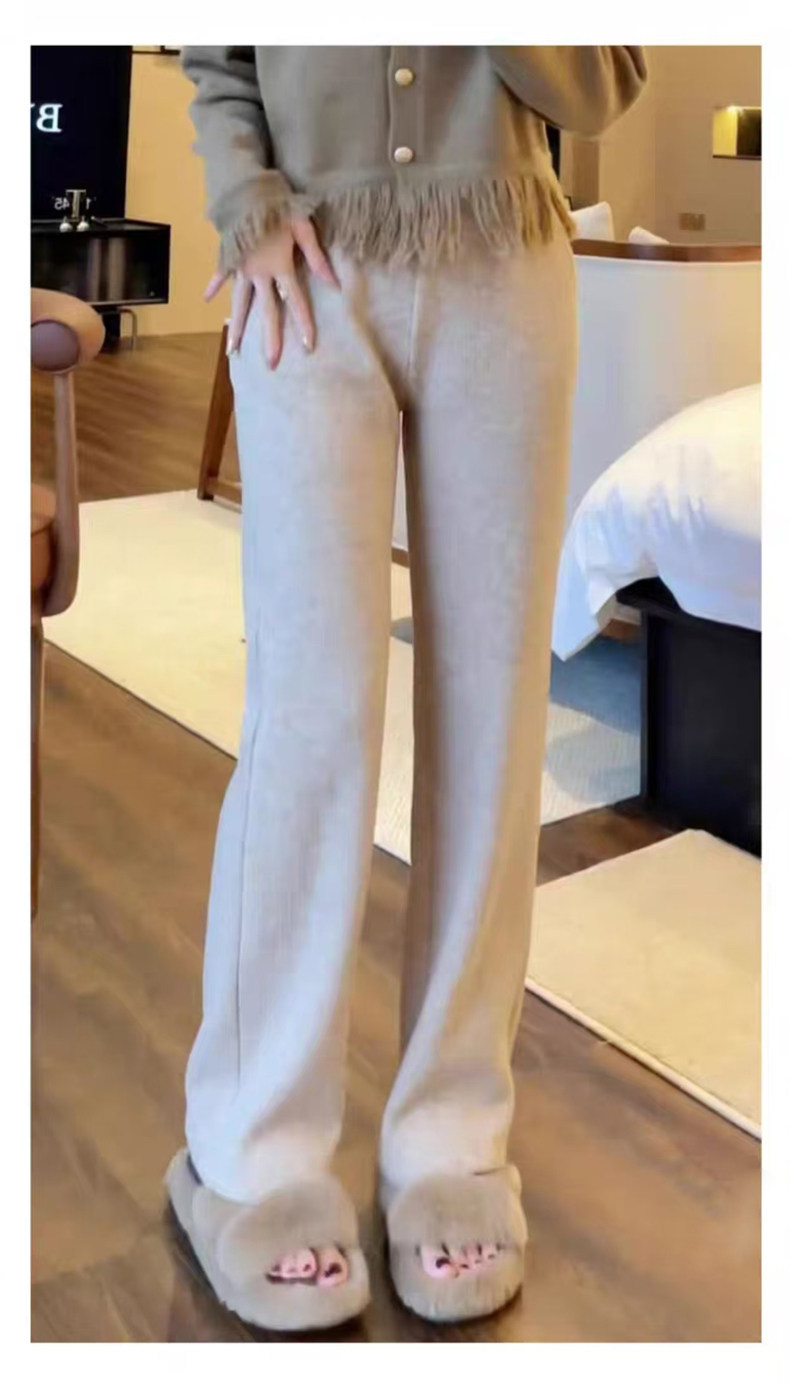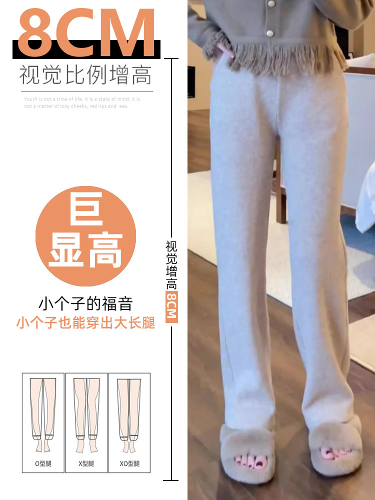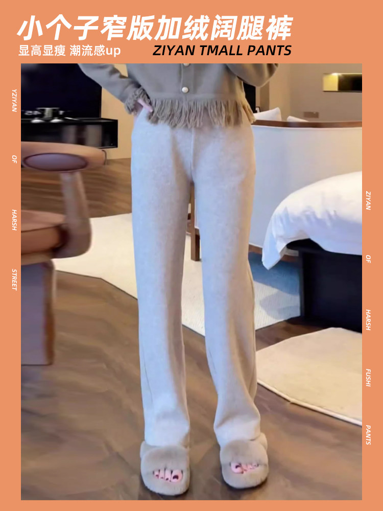小個子窄版濶腿褲女秋冬高腰寬鬆雪尼爾直筒褲150cm顯高褲子145xs