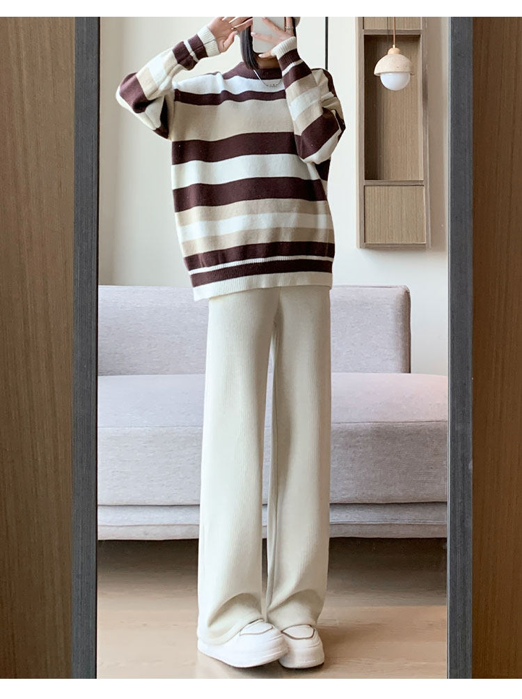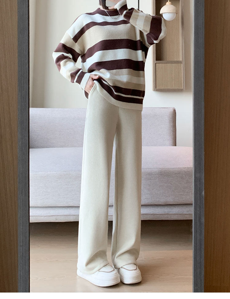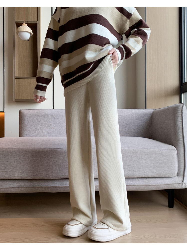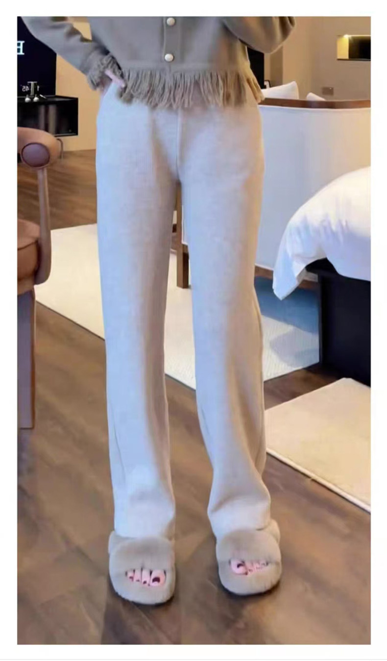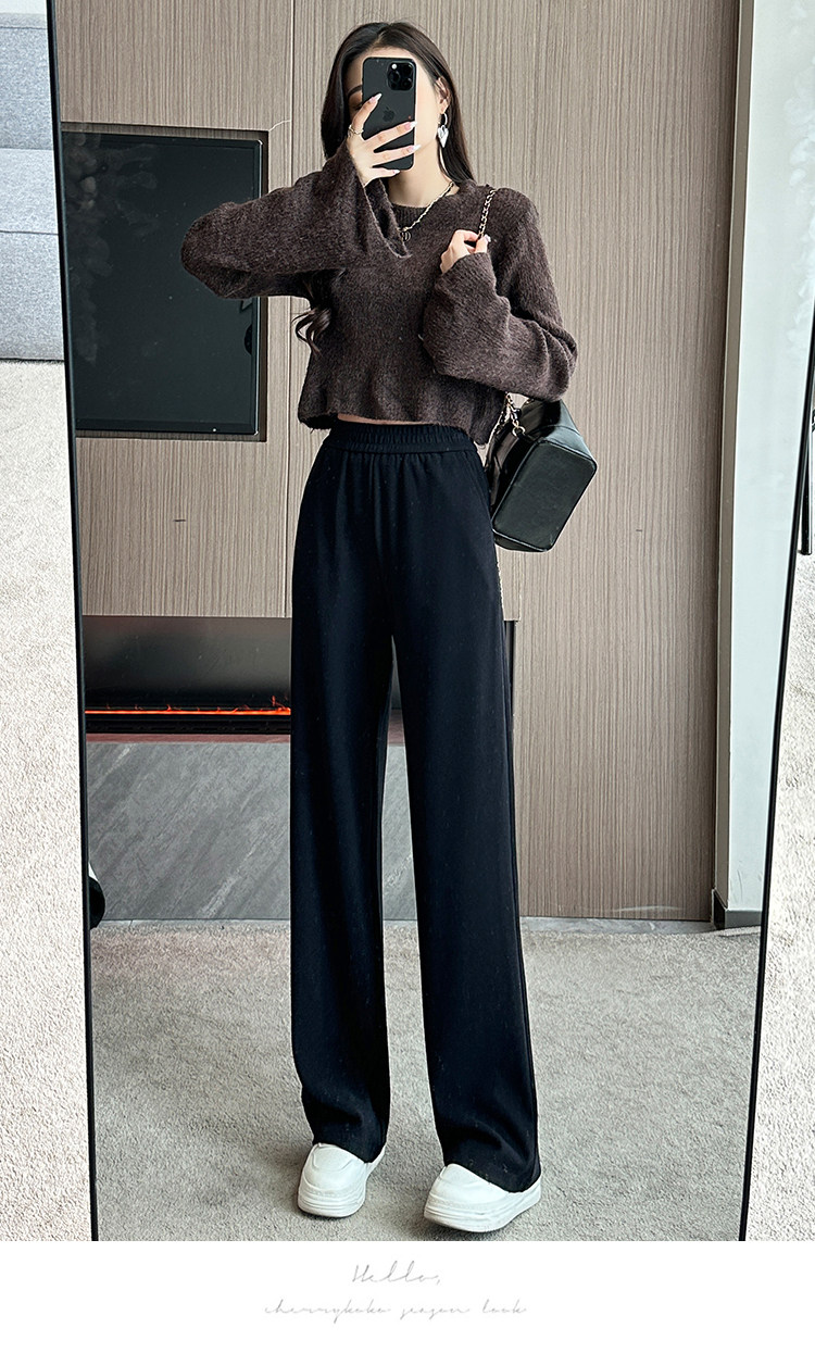 小個子窄版濶腿褲女秋冬高腰寬鬆雪尼爾直筒褲150cm顯高褲子145xs