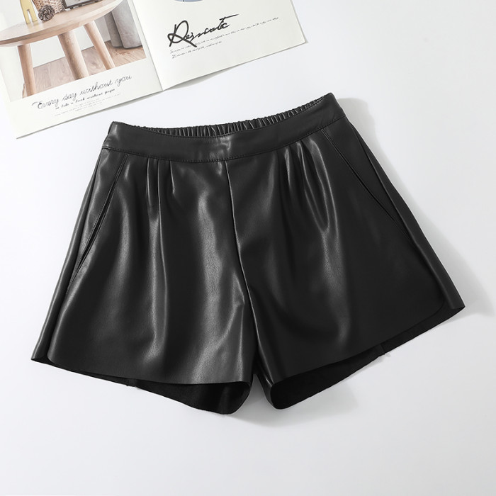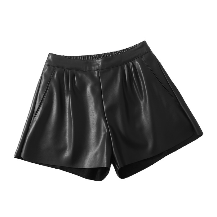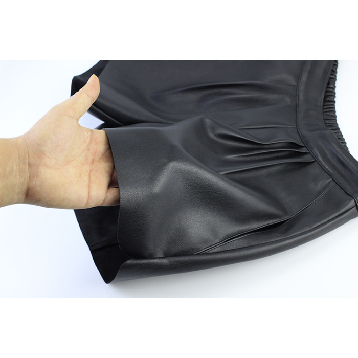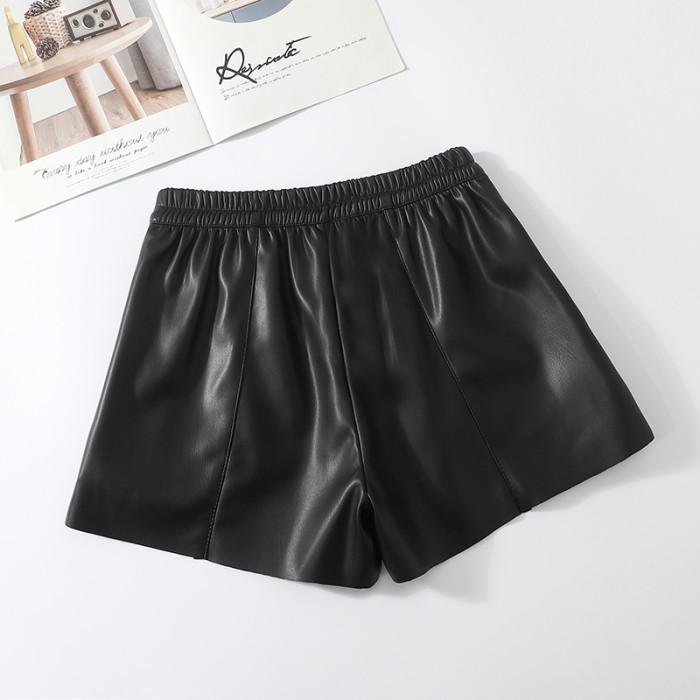 黑色PU皮褲2025年新款高腰顯瘦大碼百搭寬鬆濶腿皮短褲女秋冬外穿
