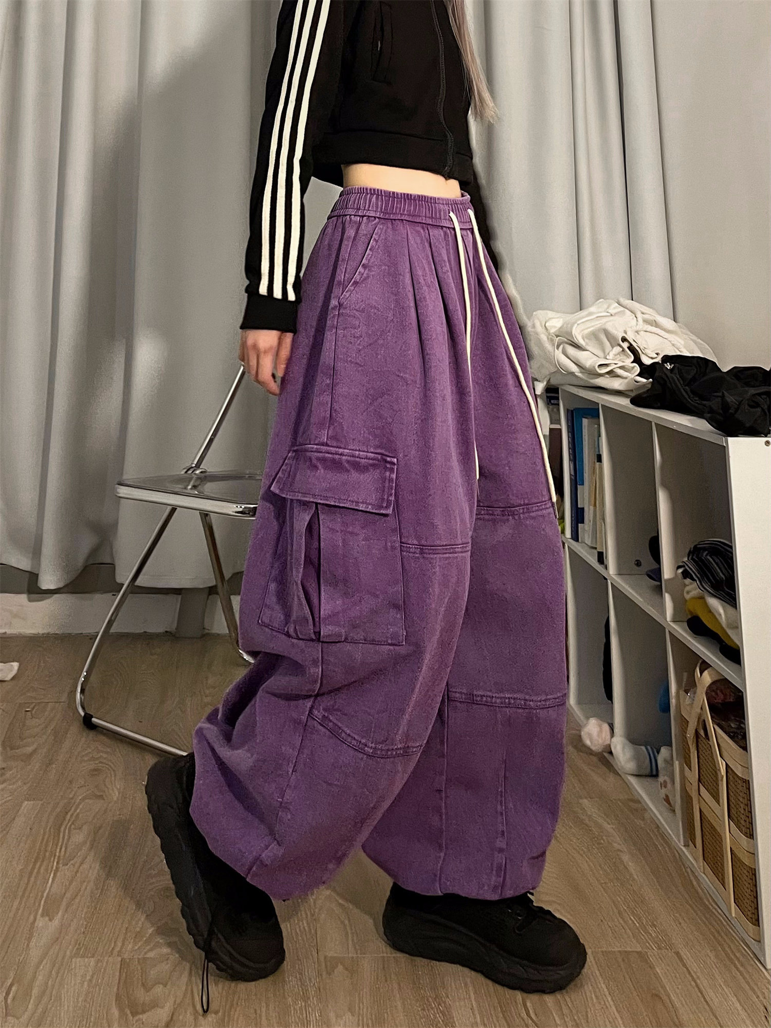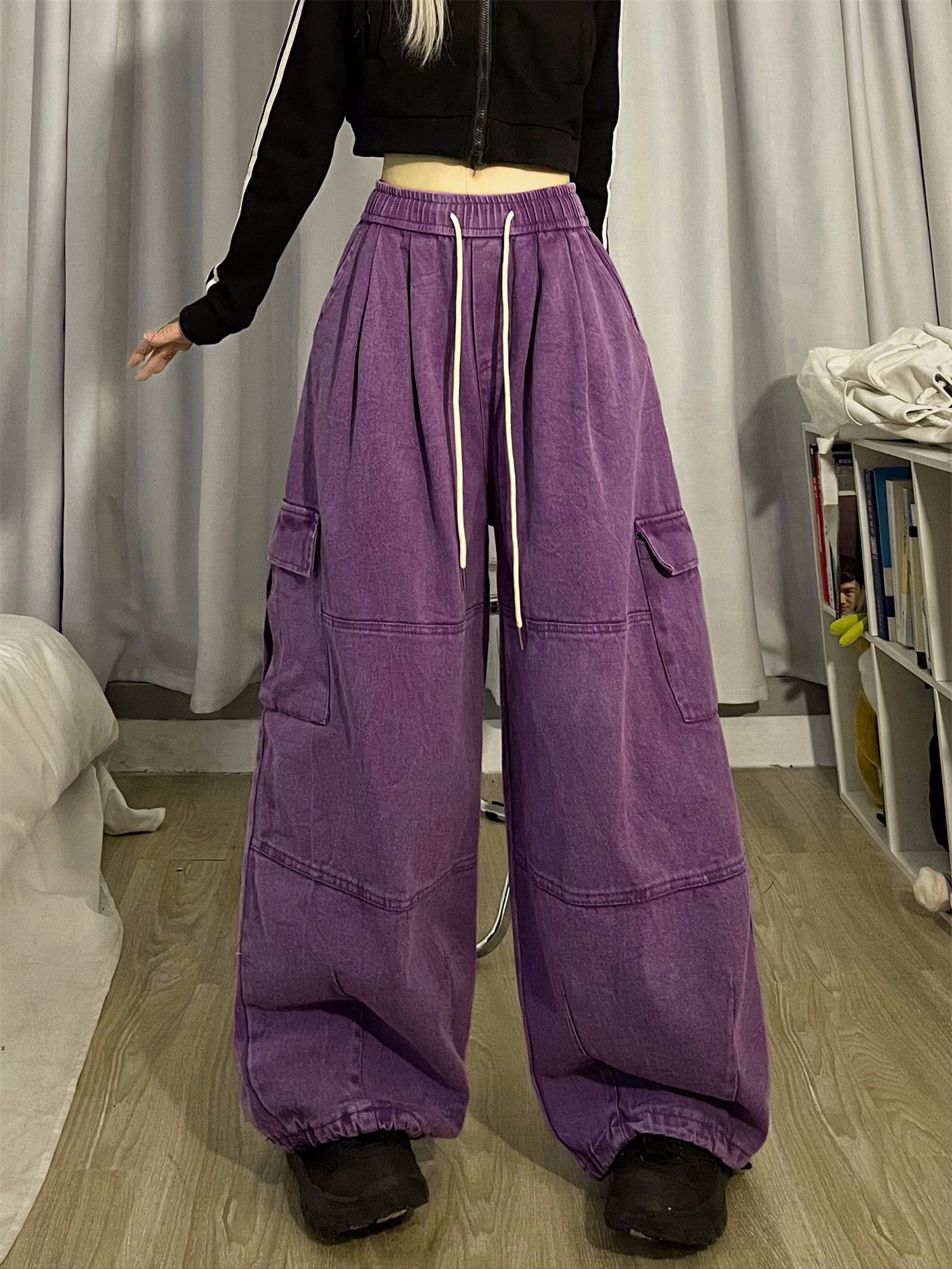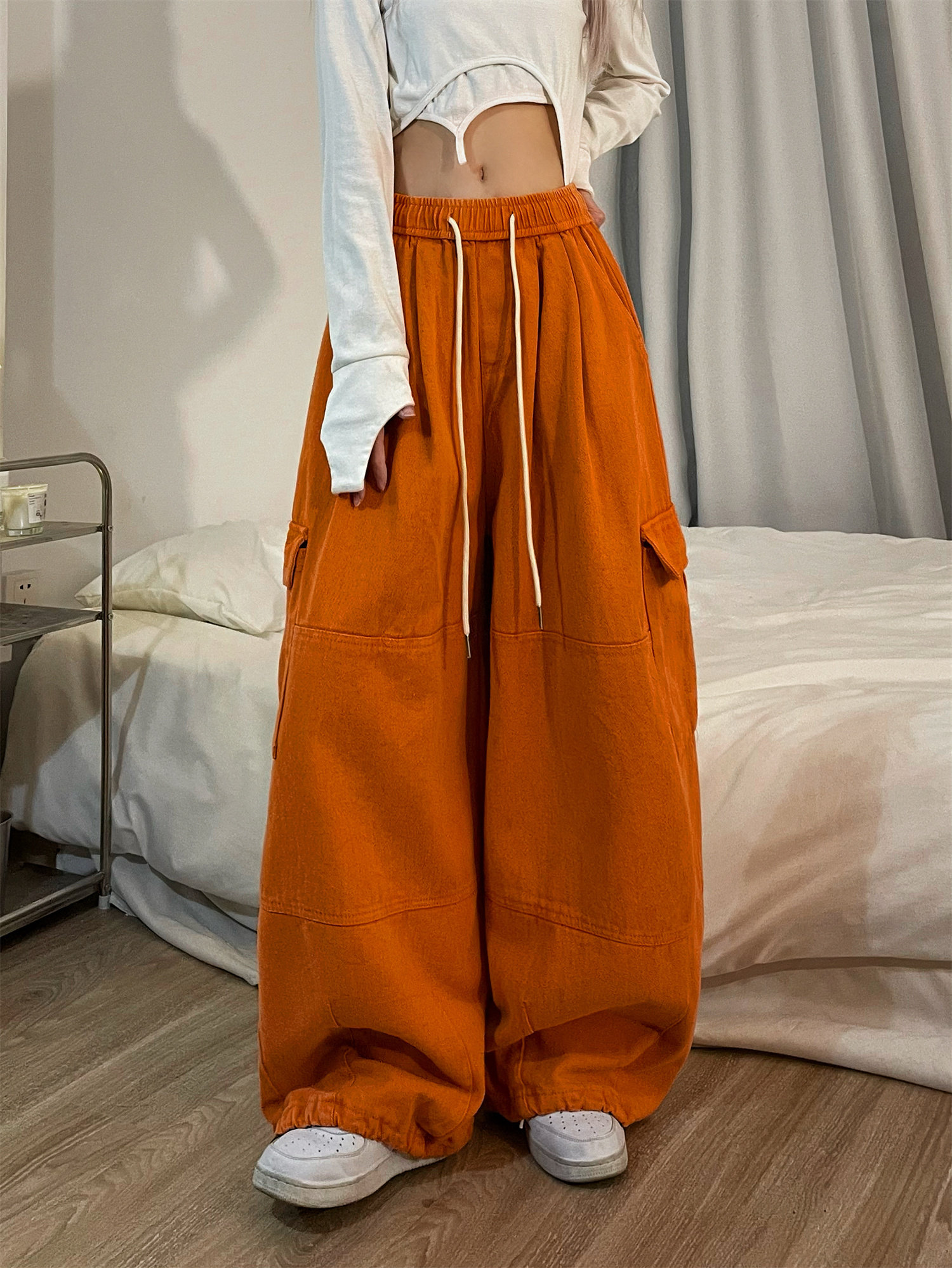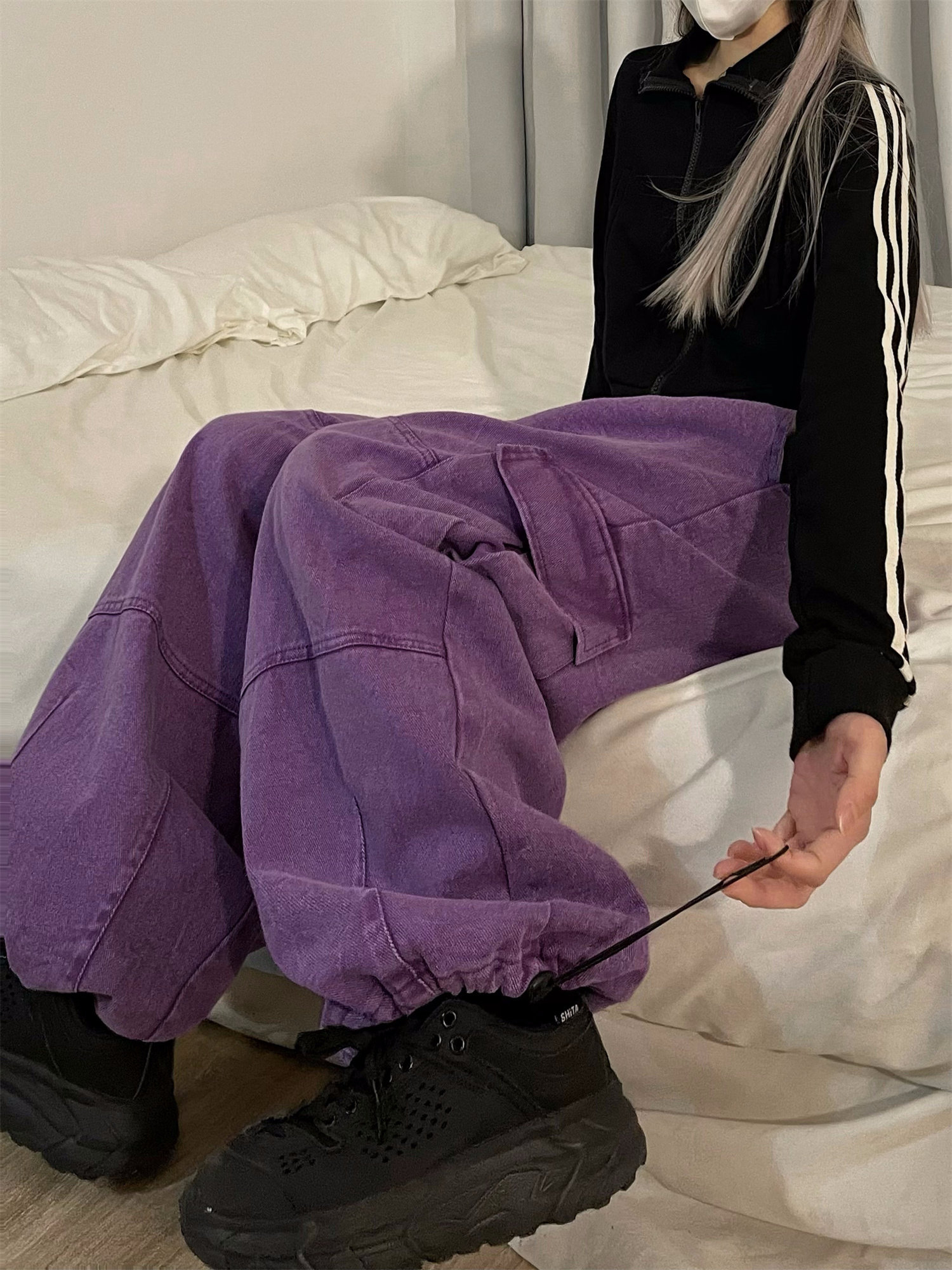 酷拽少女 國潮復古工裝褲女春季純棉加厚休閒寬鬆拖地濶腿褲ins潮