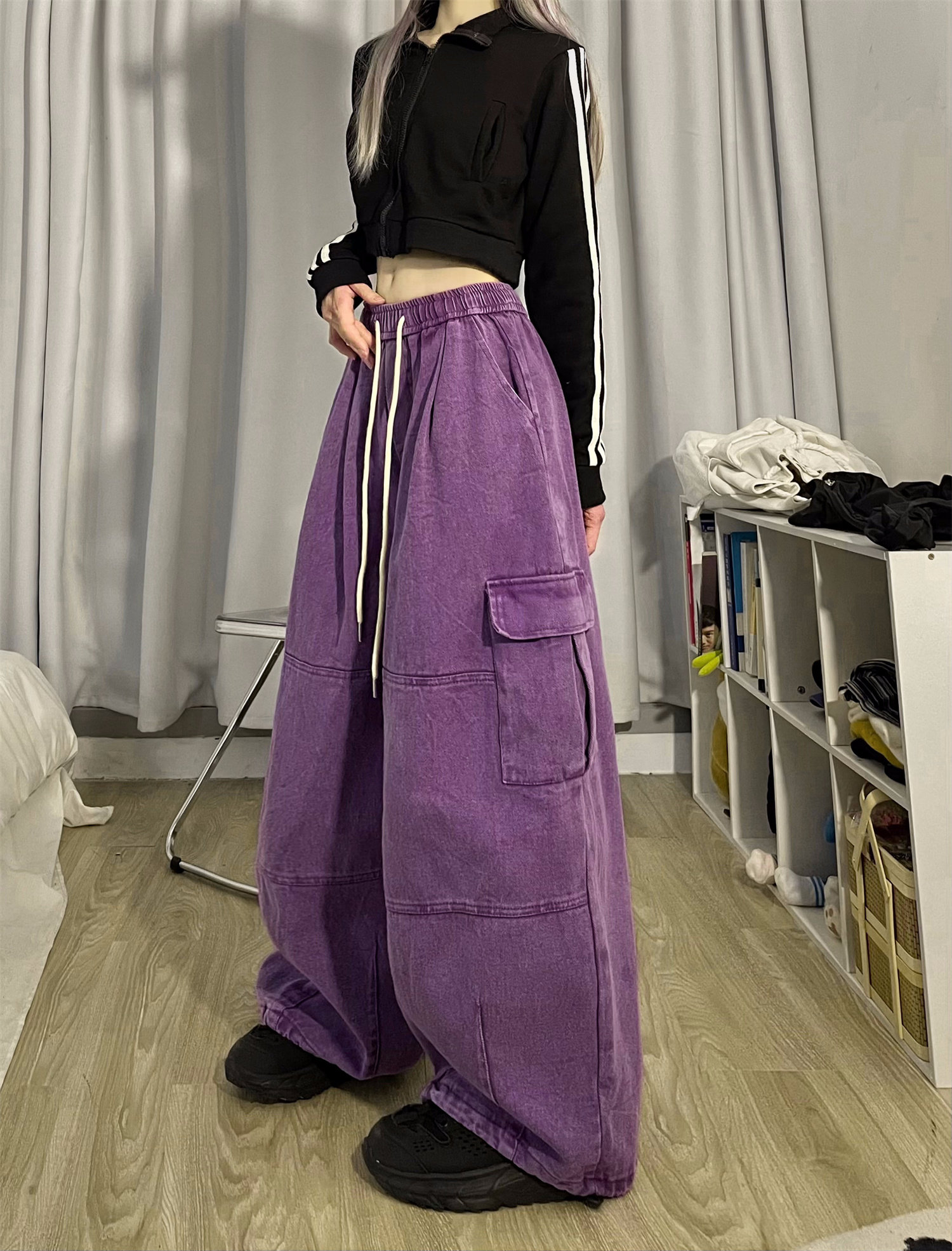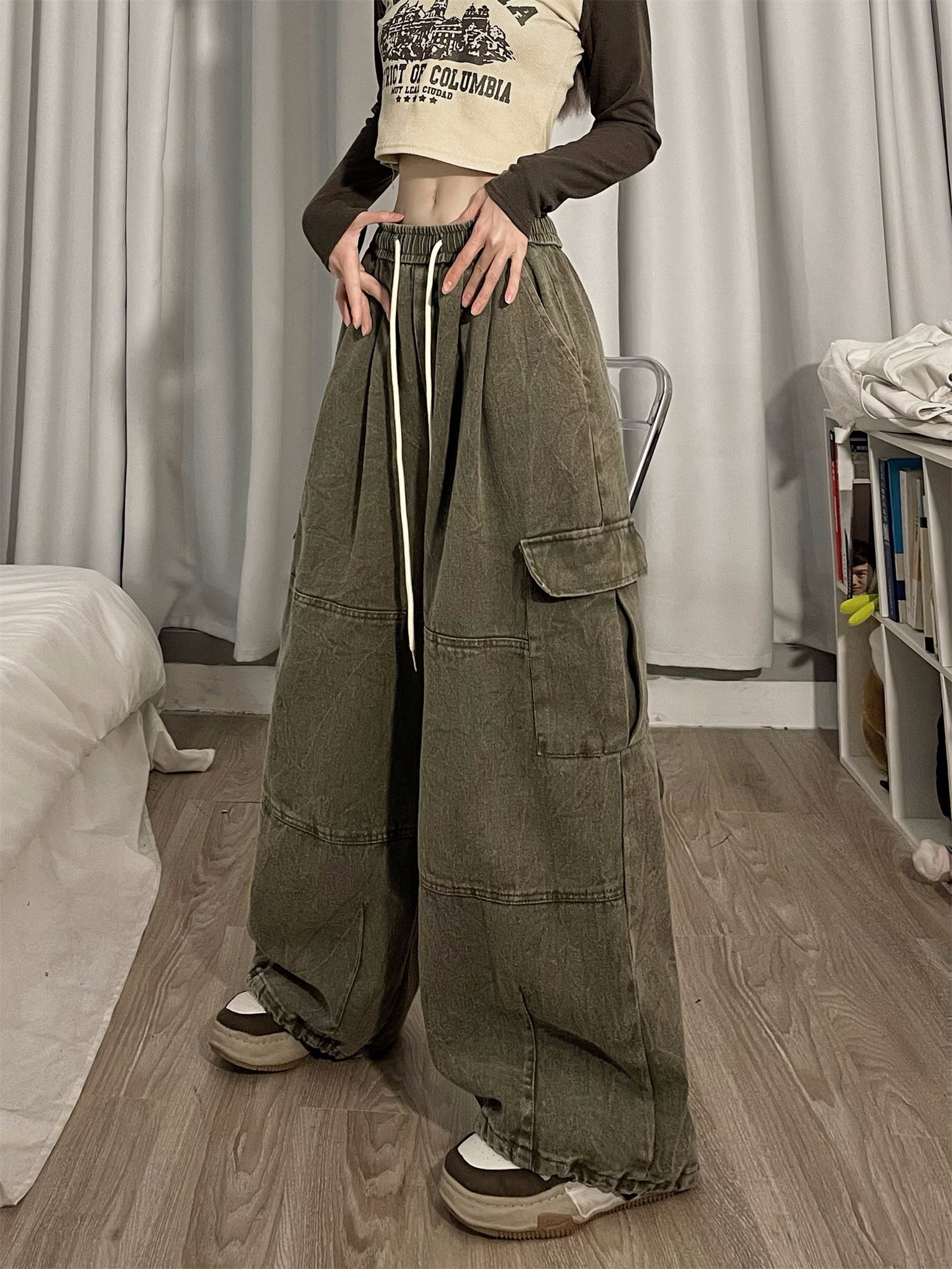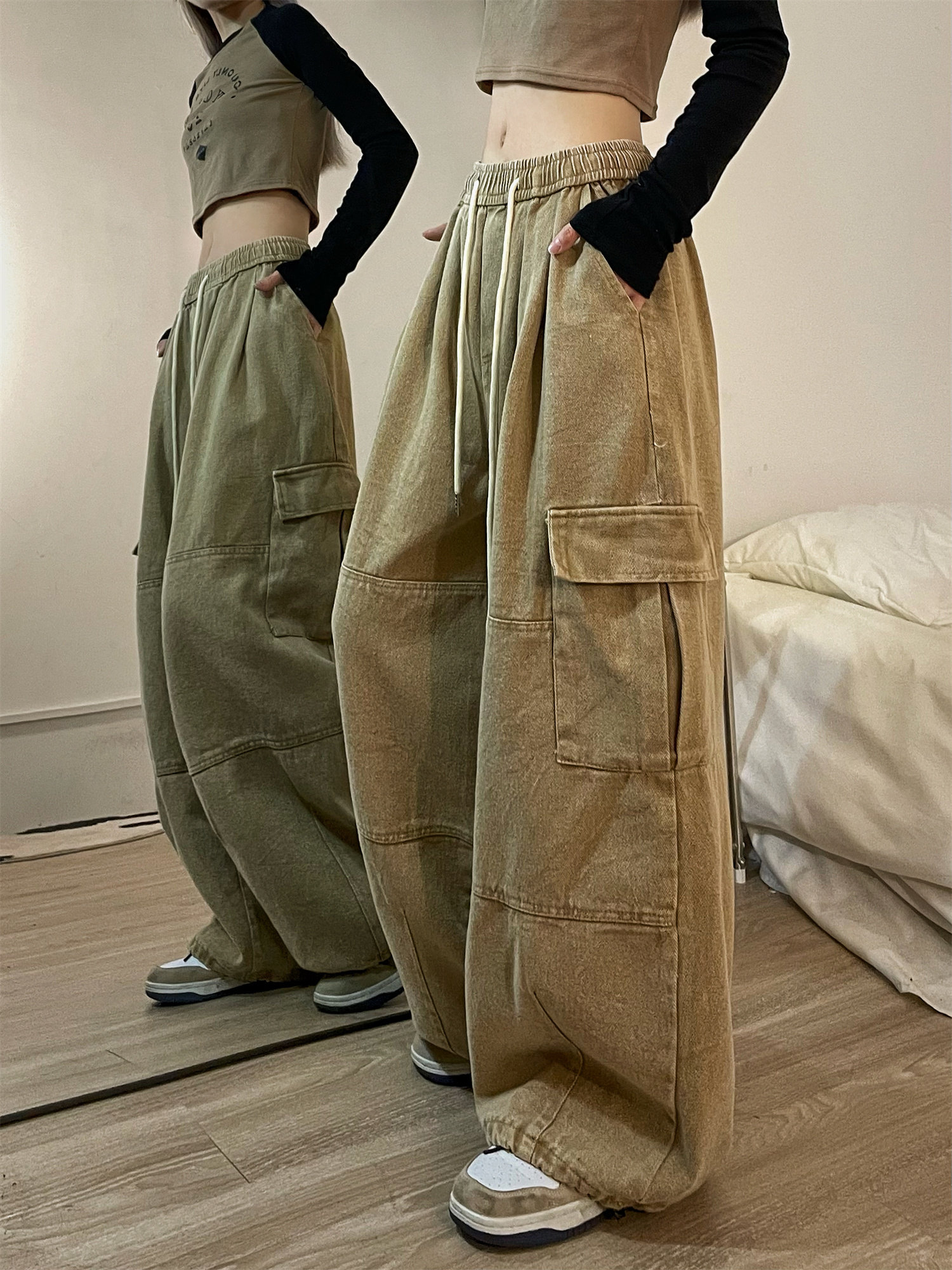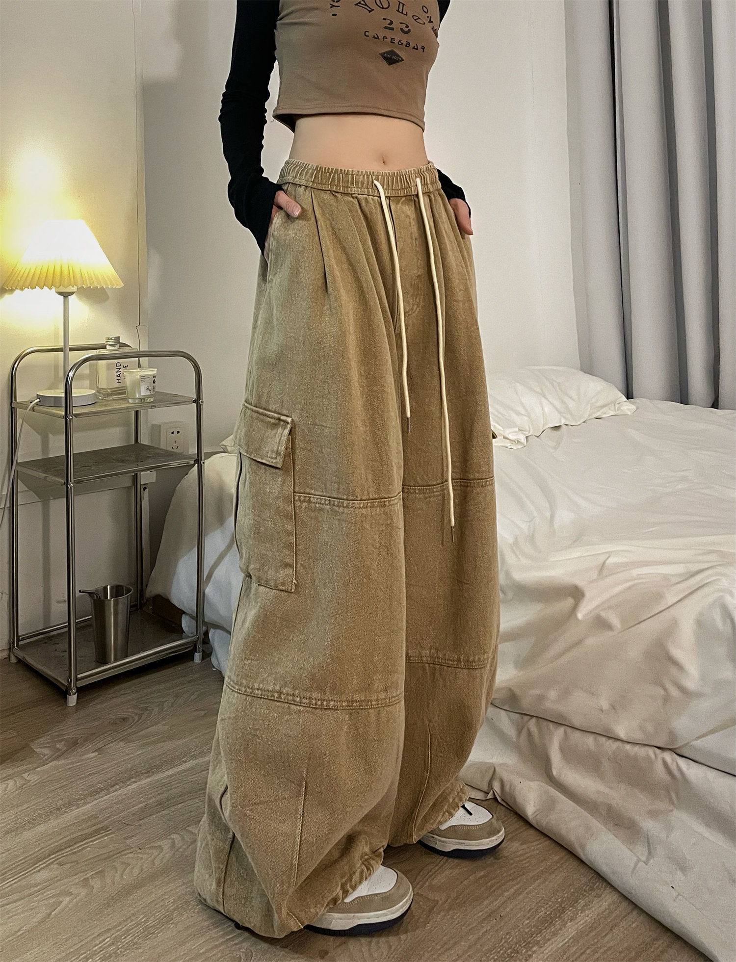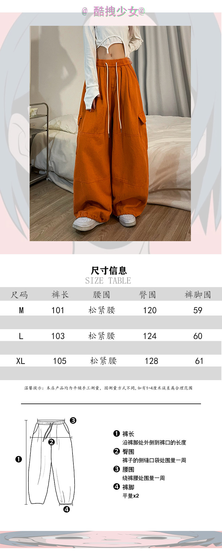 酷拽少女 國潮復古工裝褲女春季純棉加厚休閒寬鬆拖地濶腿褲ins潮