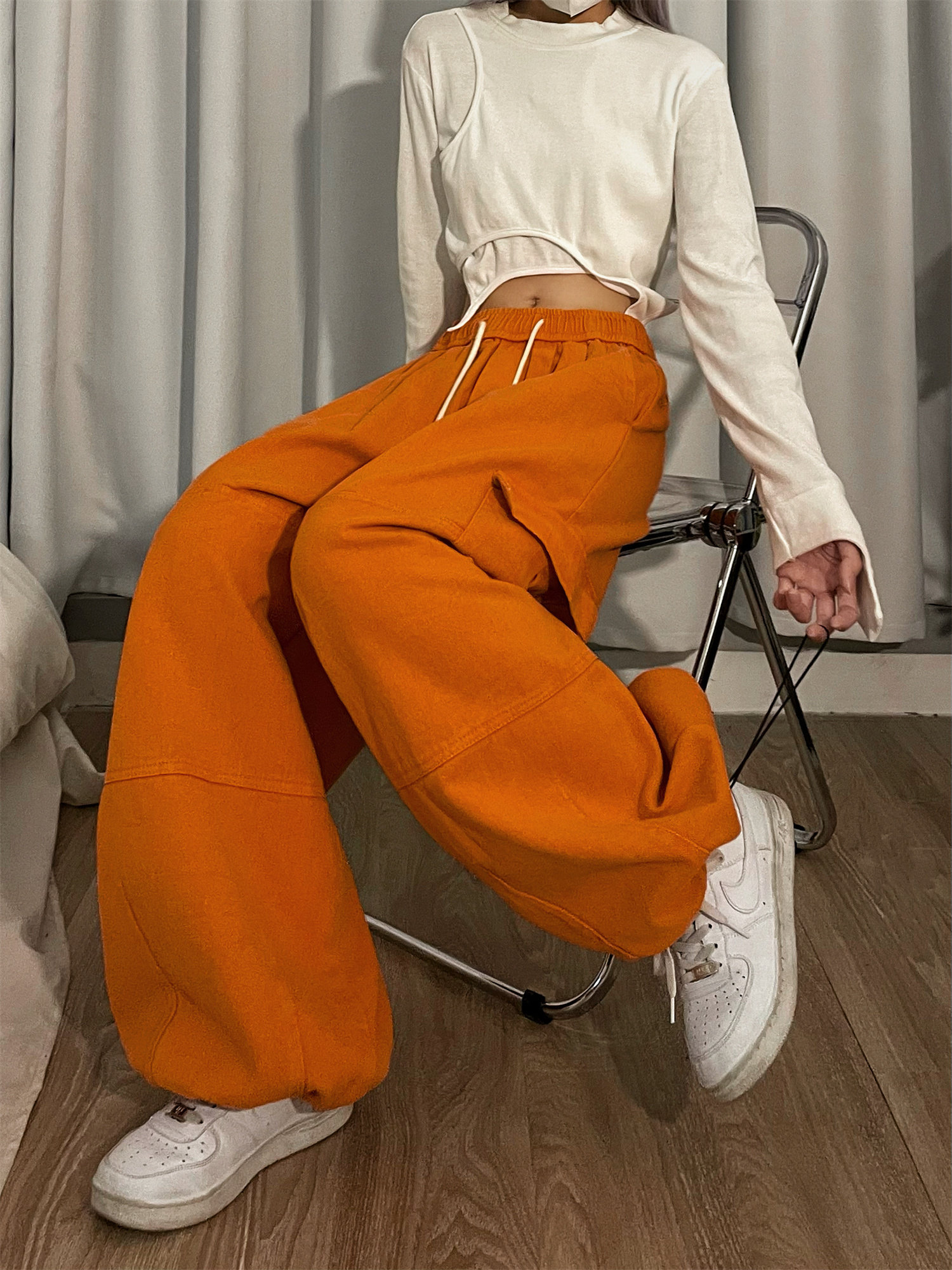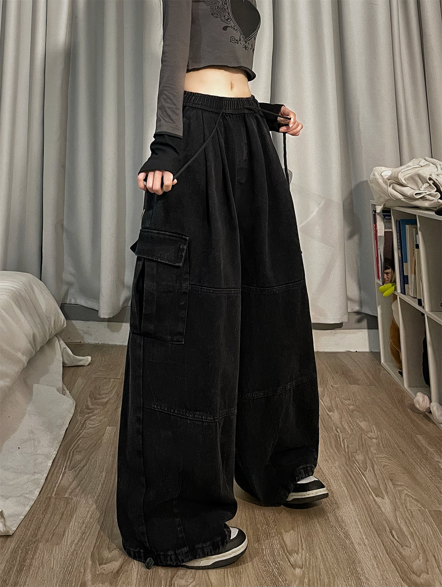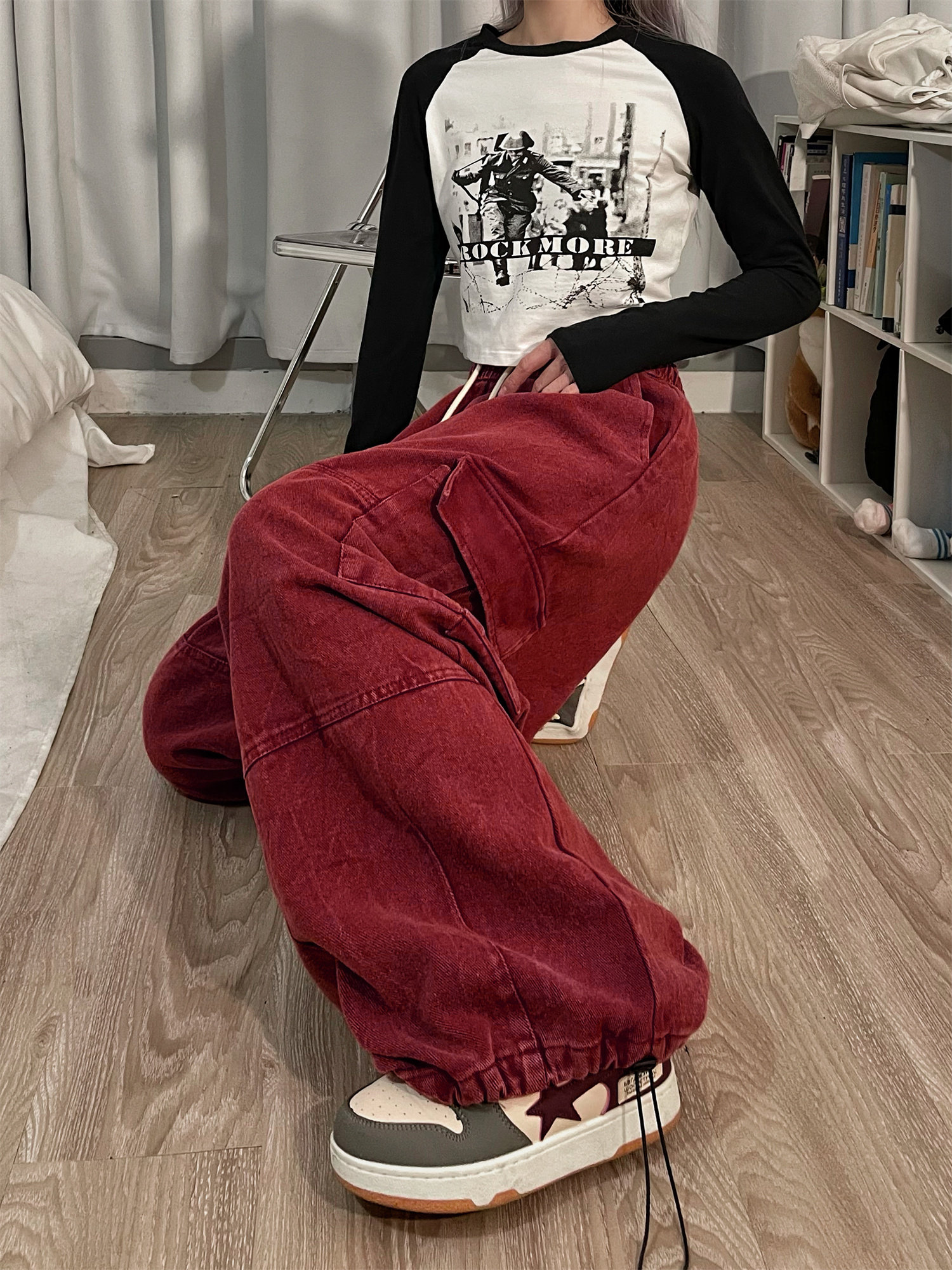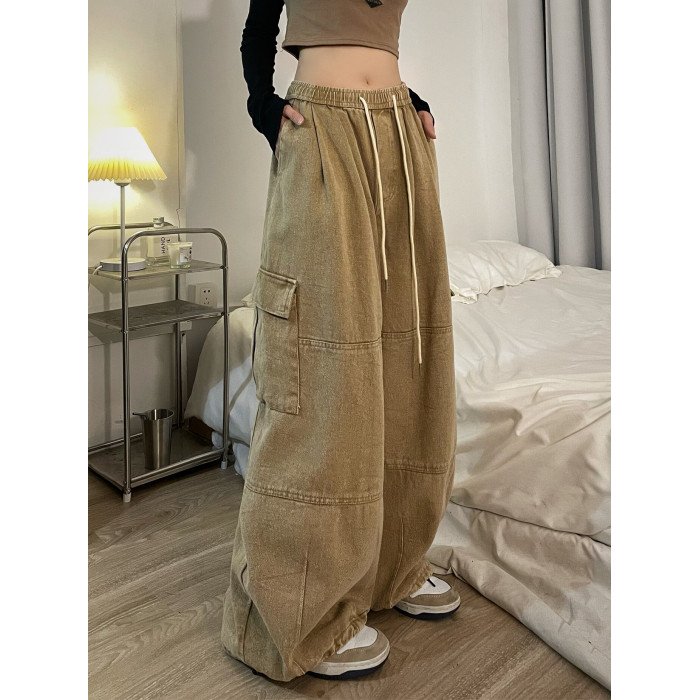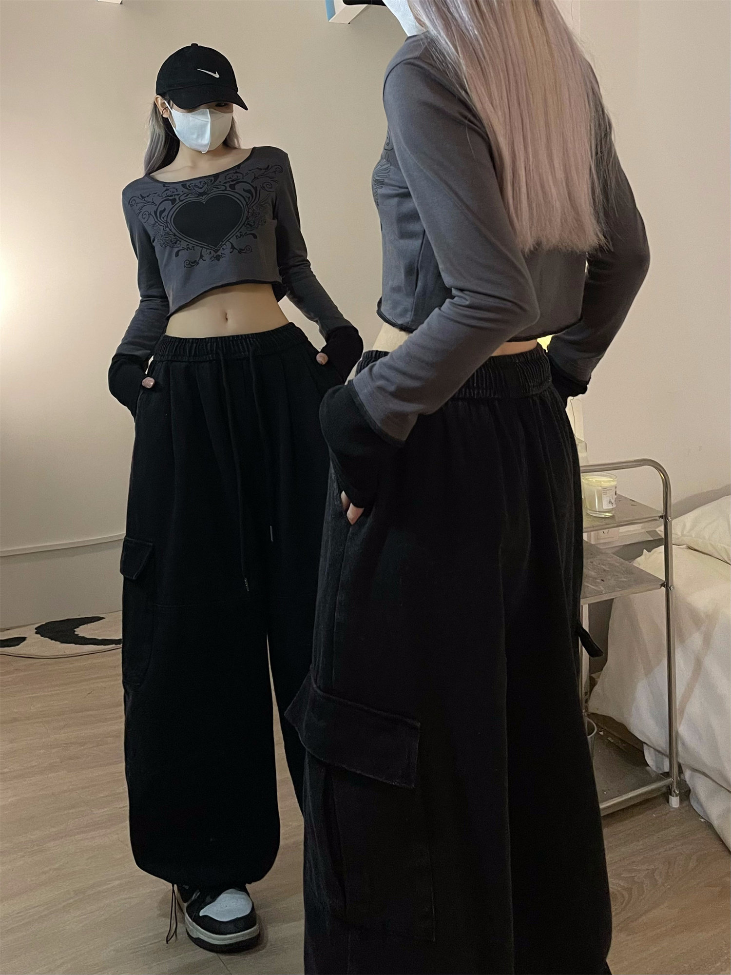 酷拽少女 國潮復古工裝褲女春季純棉加厚休閒寬鬆拖地濶腿褲ins潮