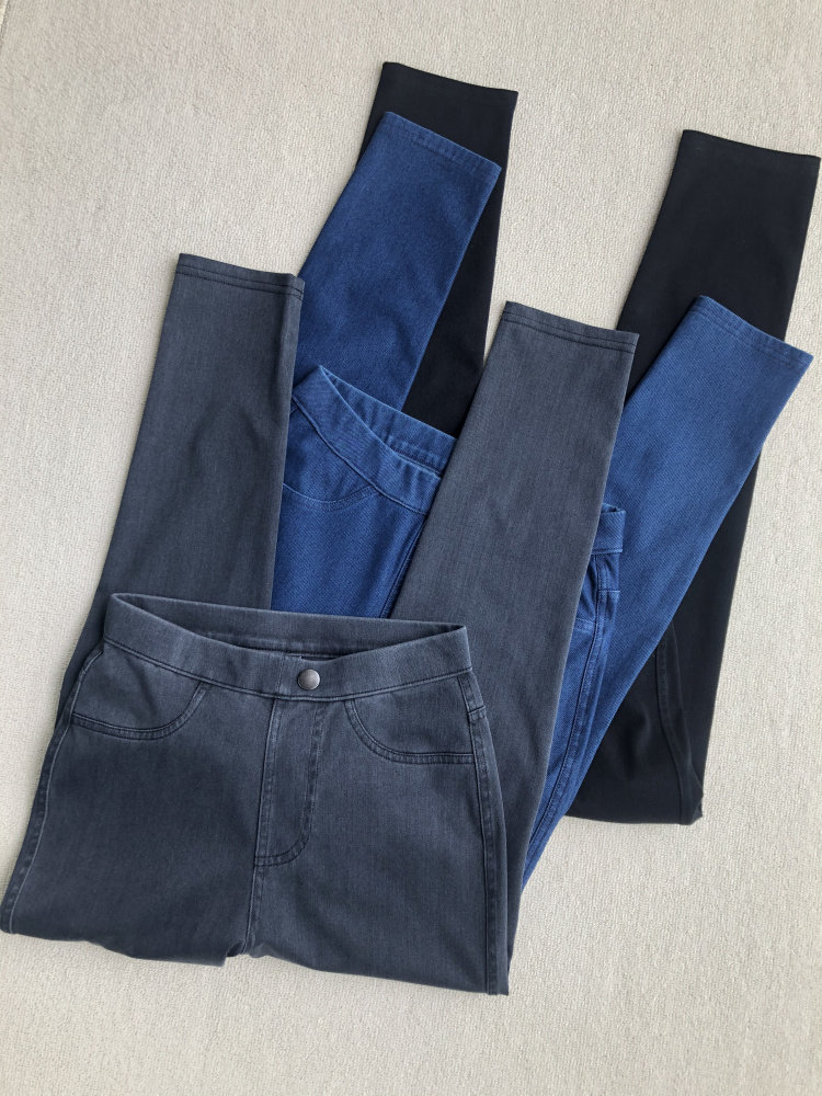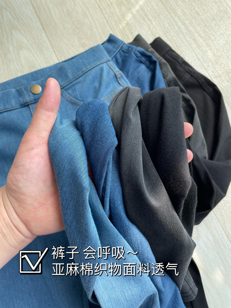 亞麻面料春秋單款+秋冬加絨:松緊腰 黑、藍、深灰三色