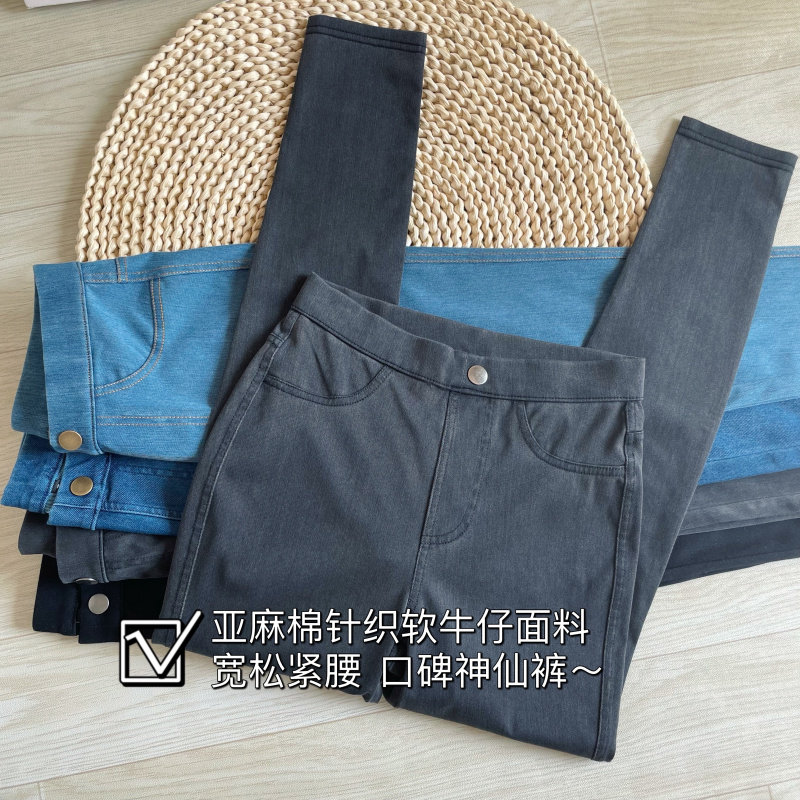 2025新 C家常規款緊身打底松緊腰針織牛仔軟彈力小腳褲女秋冬加絨
