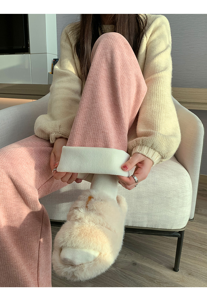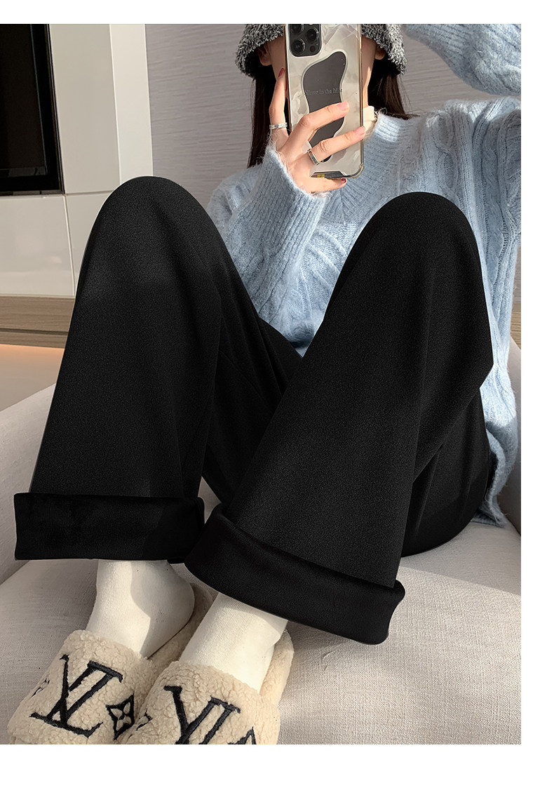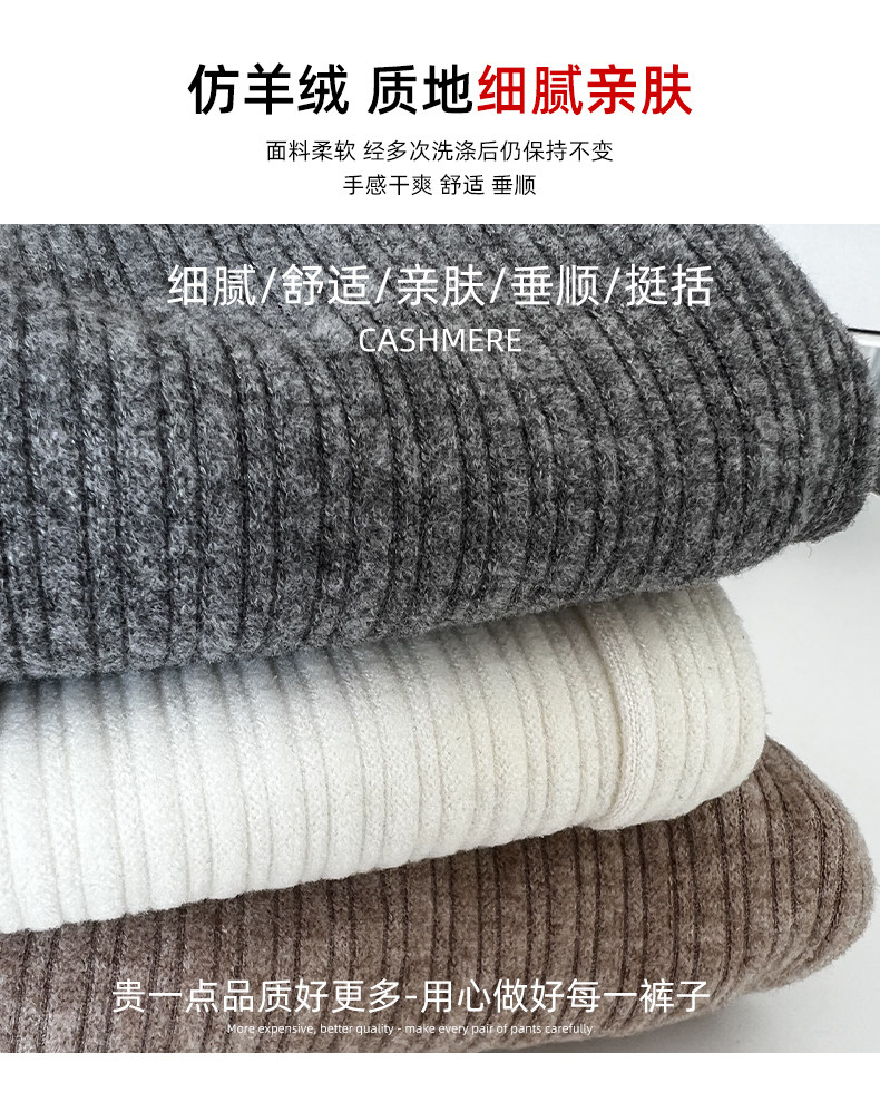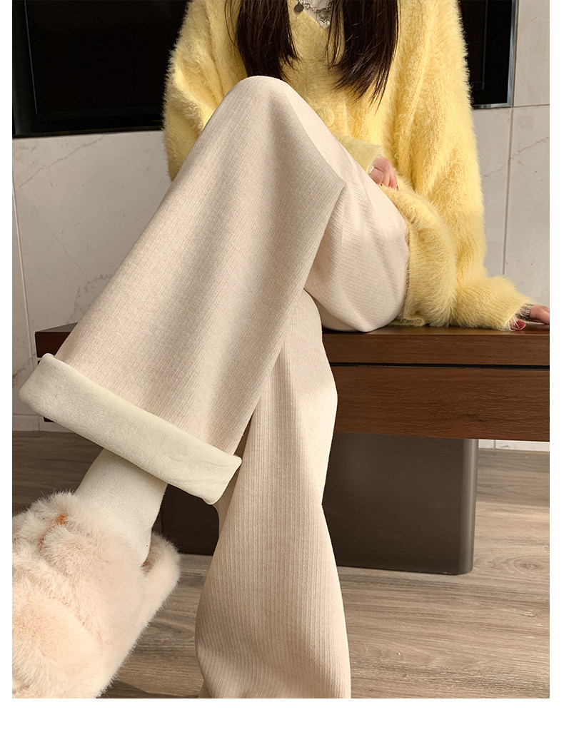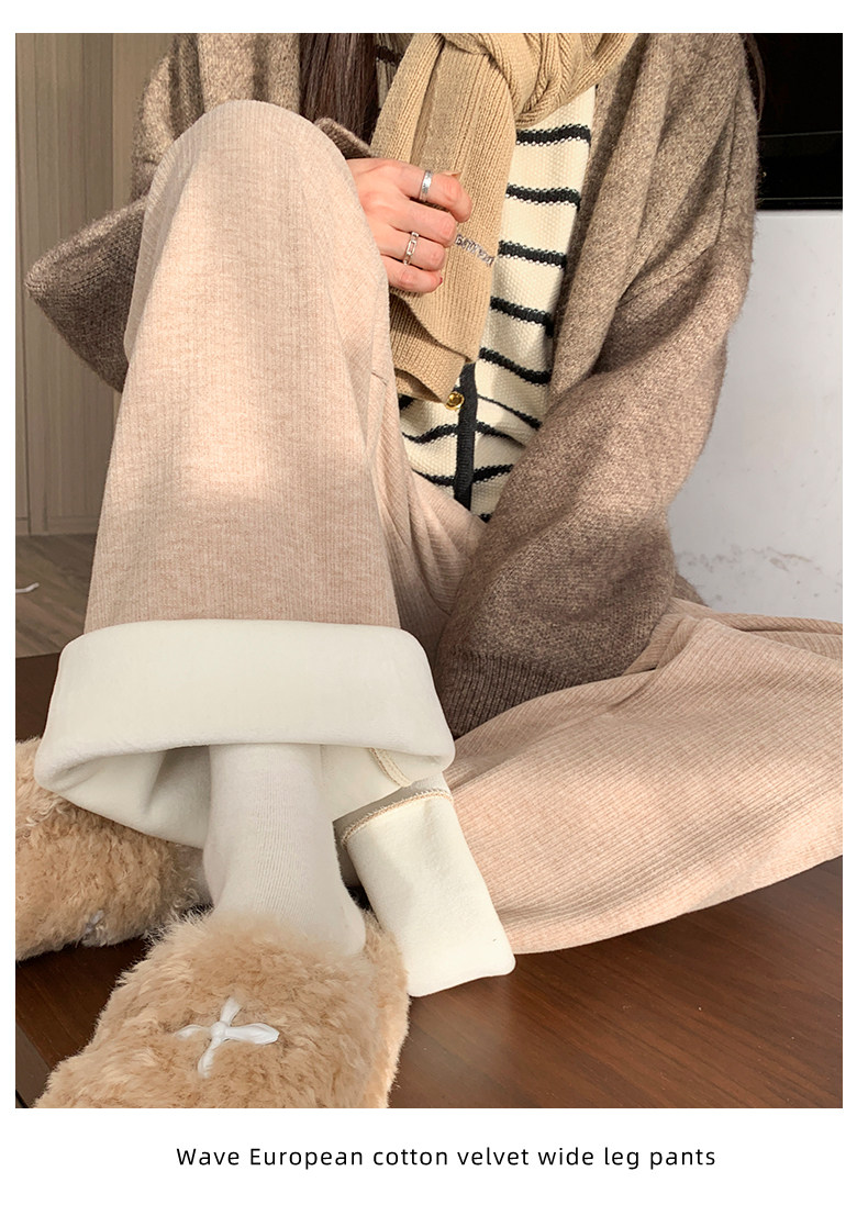 灰色仿羊毛絨加絨濶腿褲女秋季高腰垂感直筒窄版休閒褲糯米針織褲
