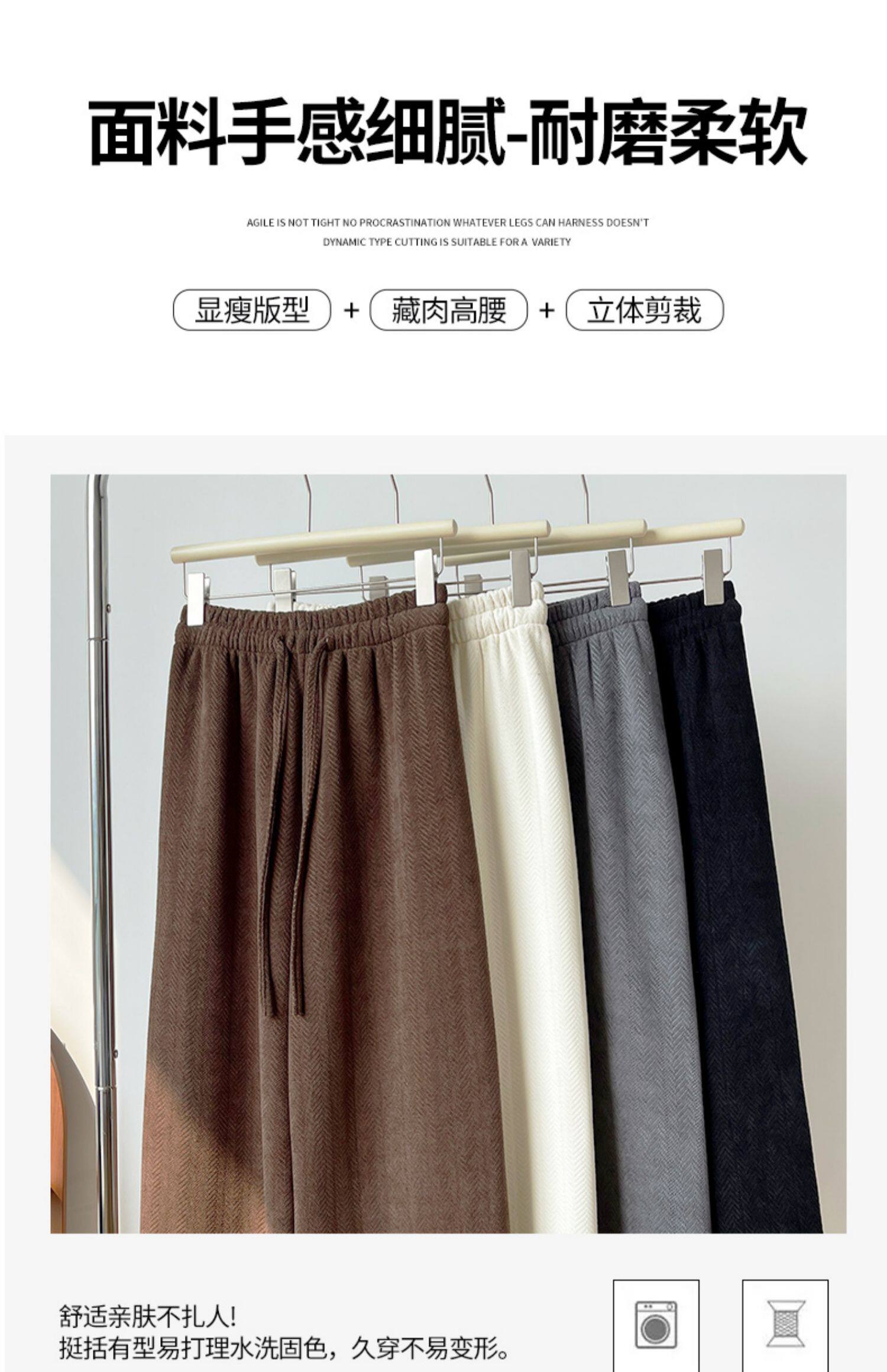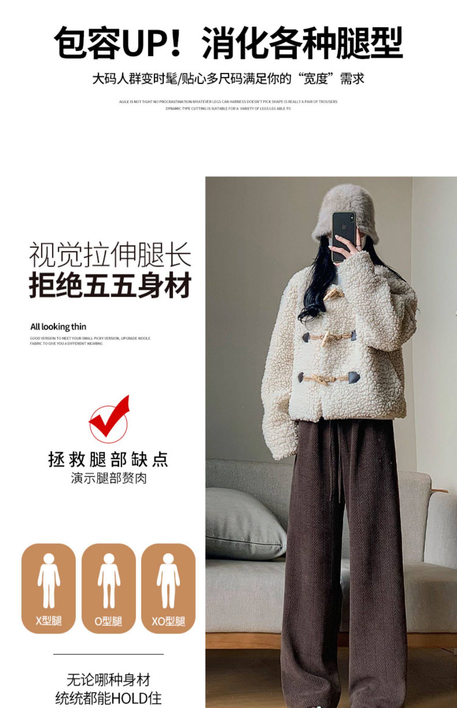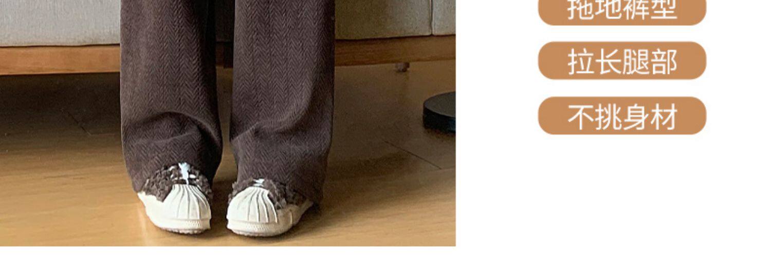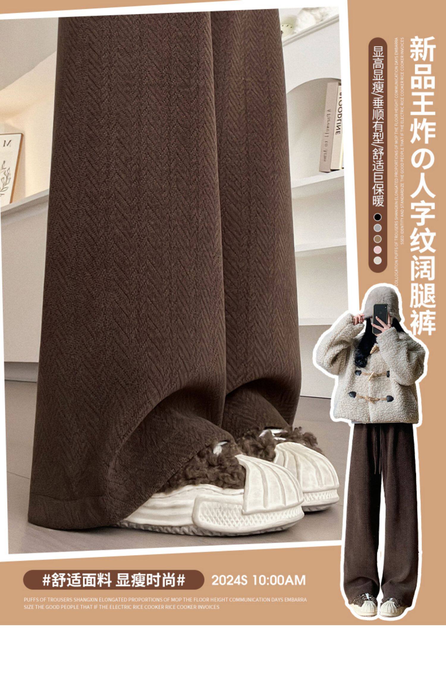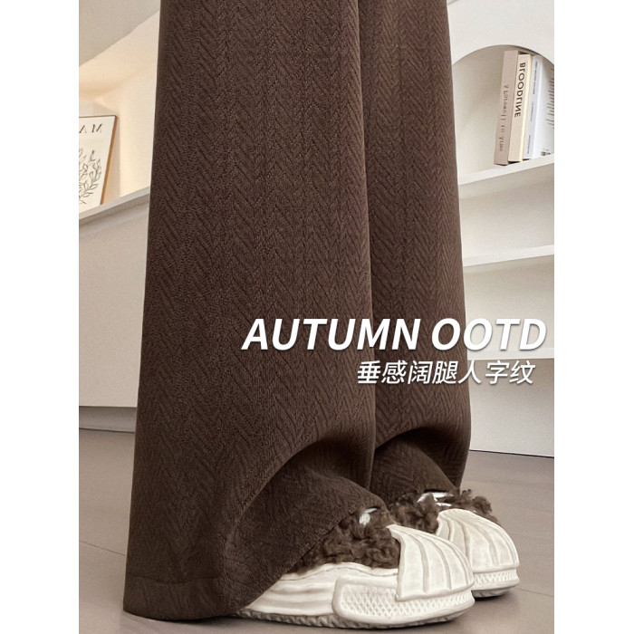 咖色人字紋濶腿褲女秋冬2025新款bf慵懶風小個子雪尼爾加絨直筒褲