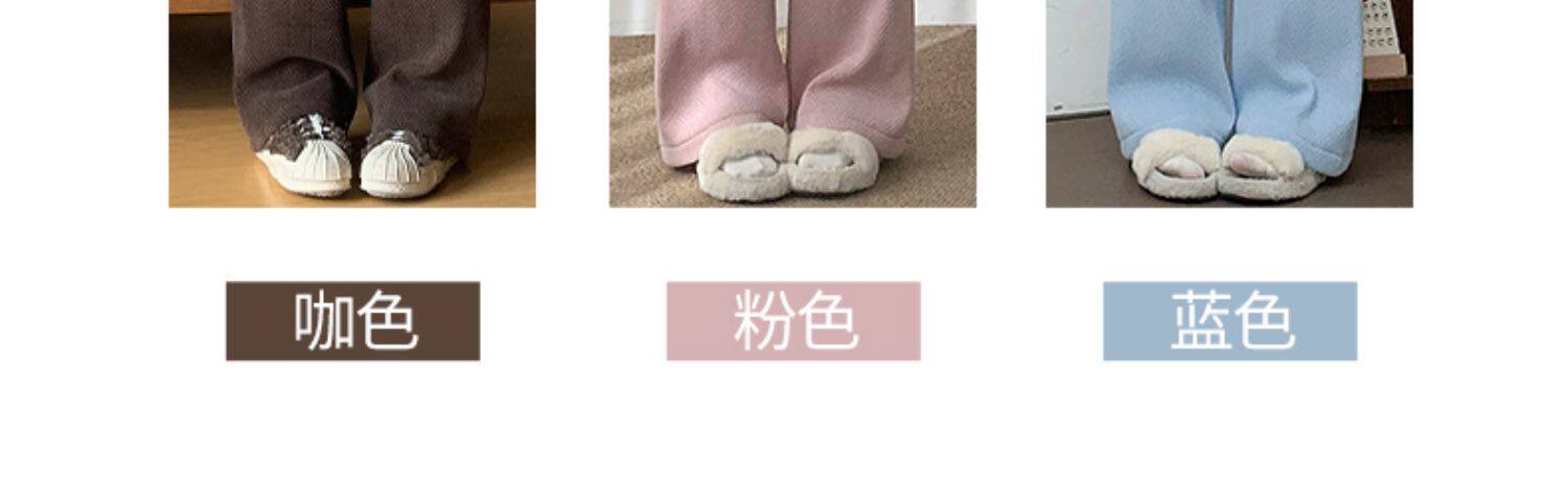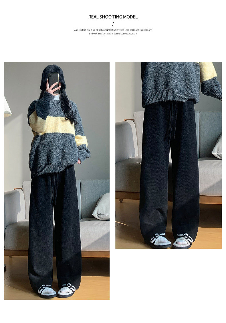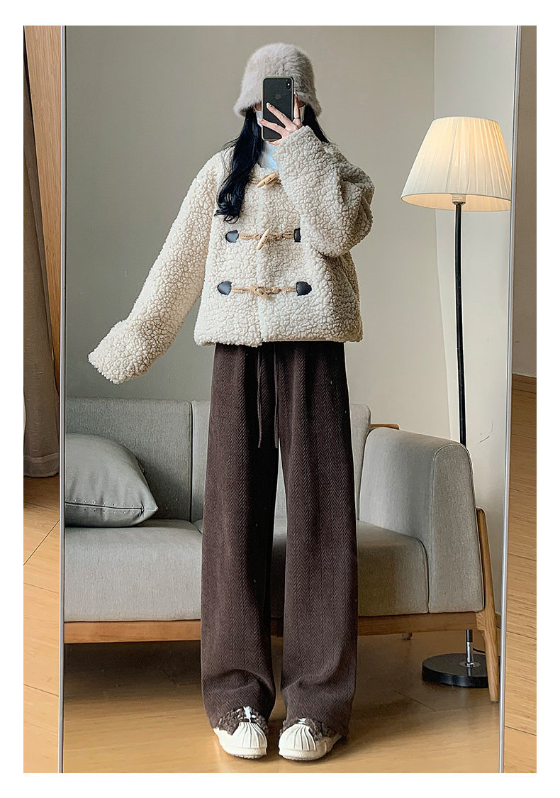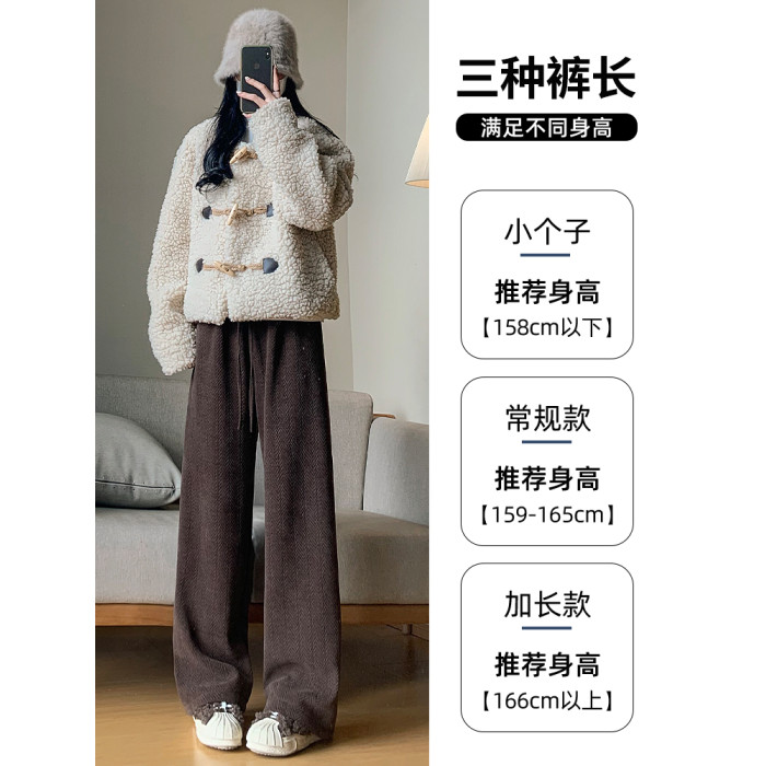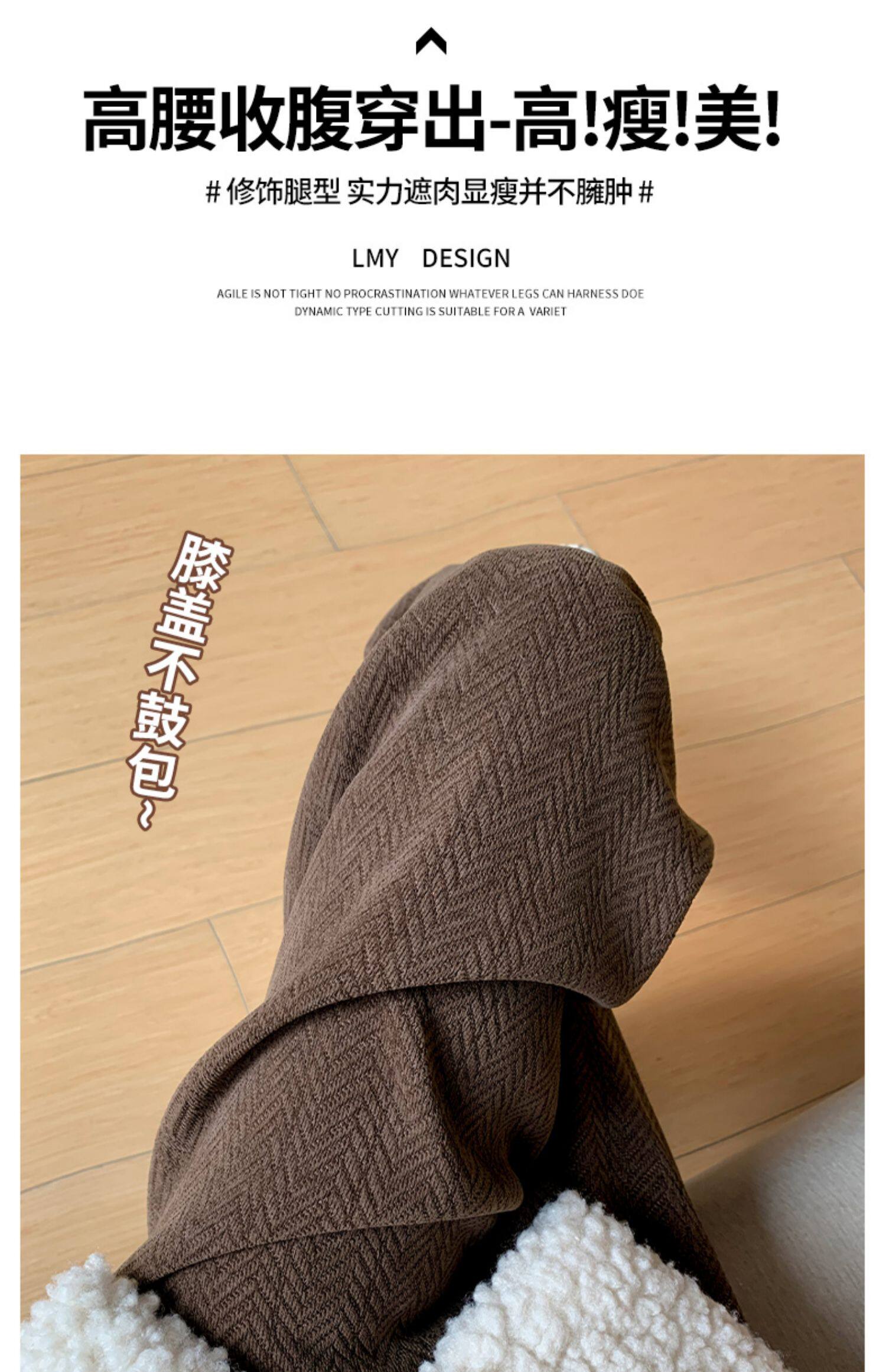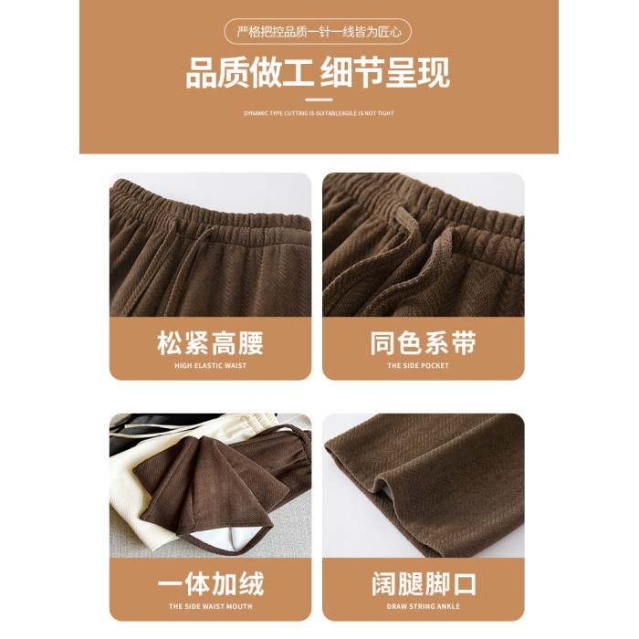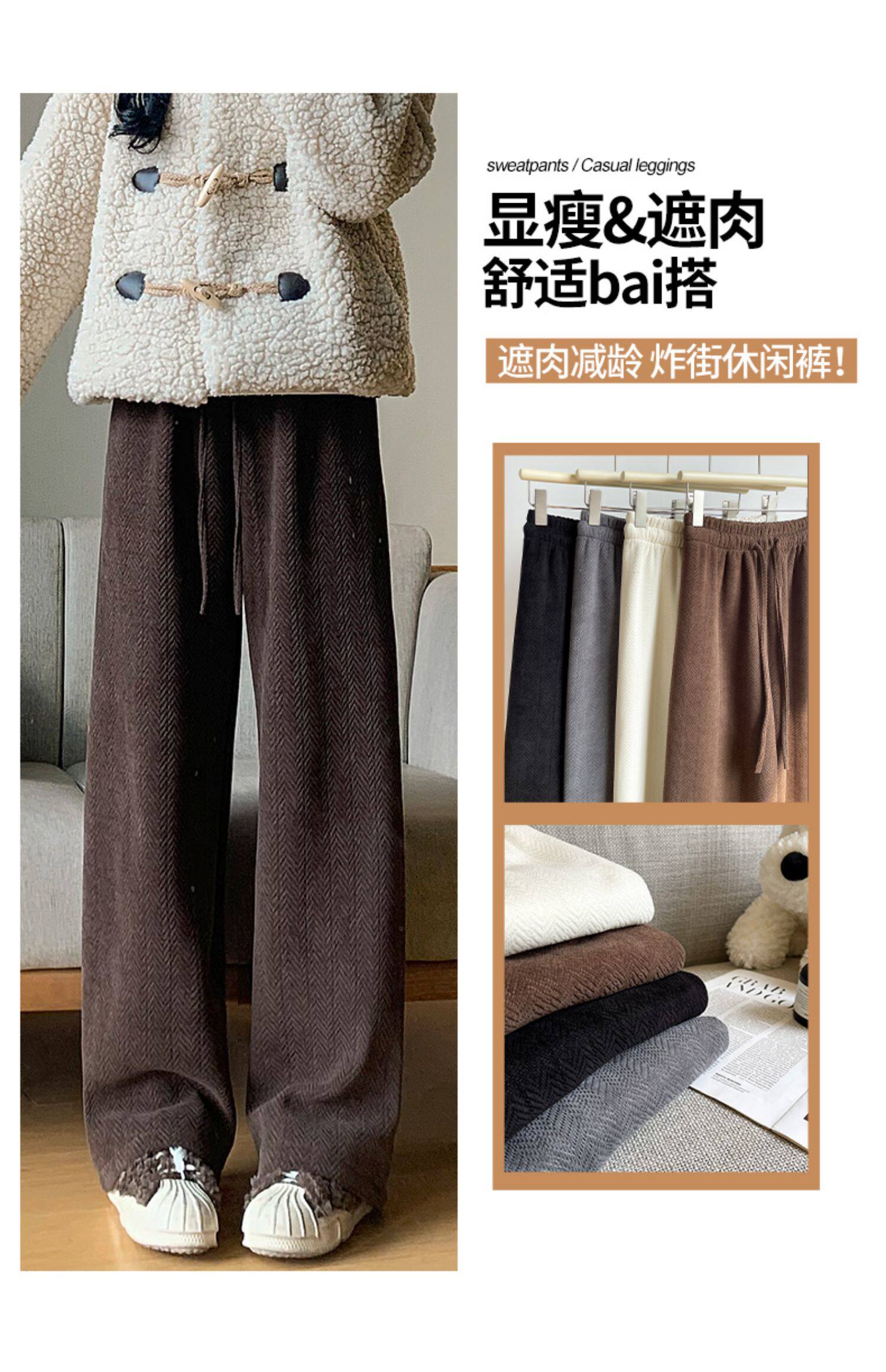 咖色人字紋濶腿褲女秋冬2025新款bf慵懶風小個子雪尼爾加絨直筒褲
