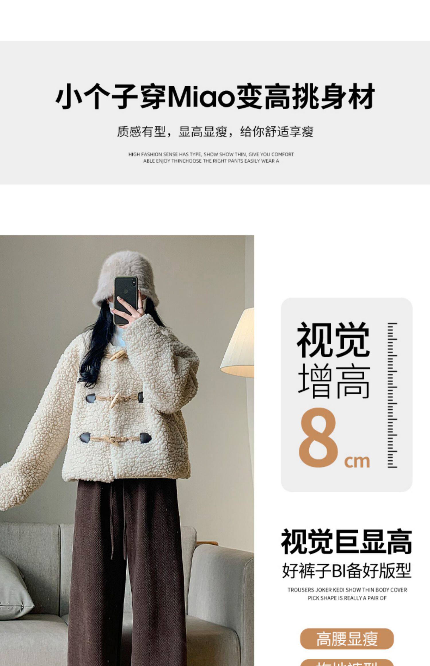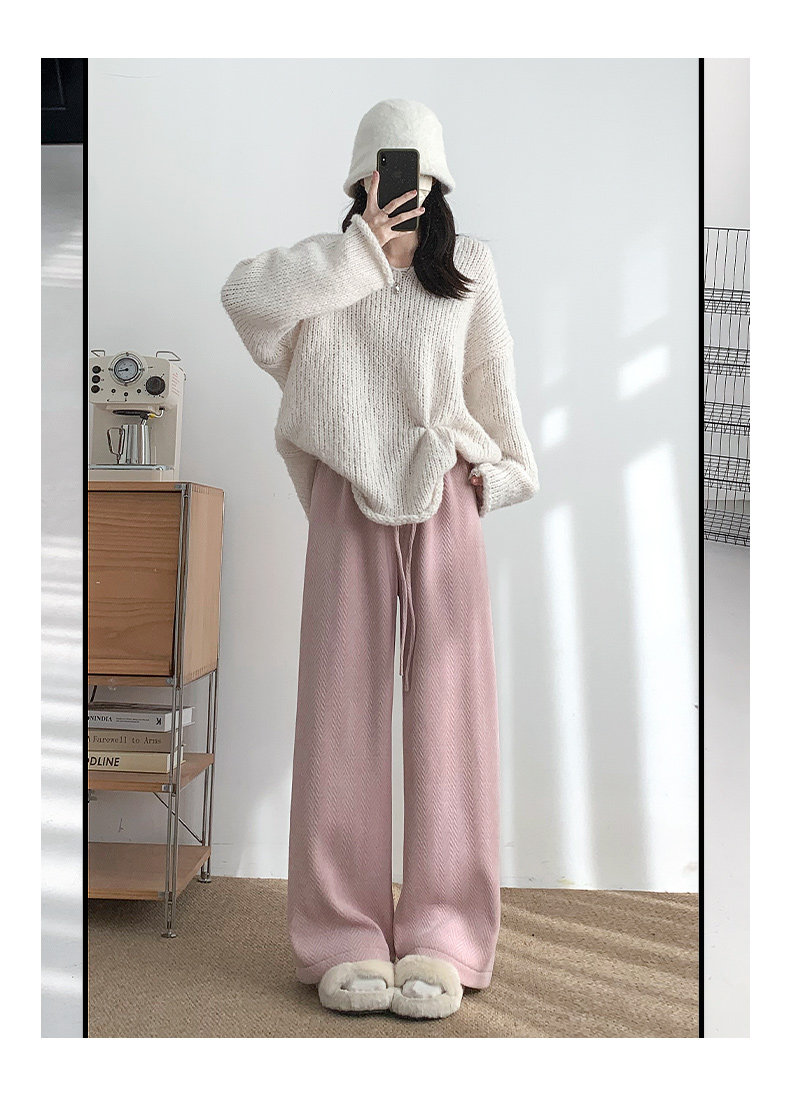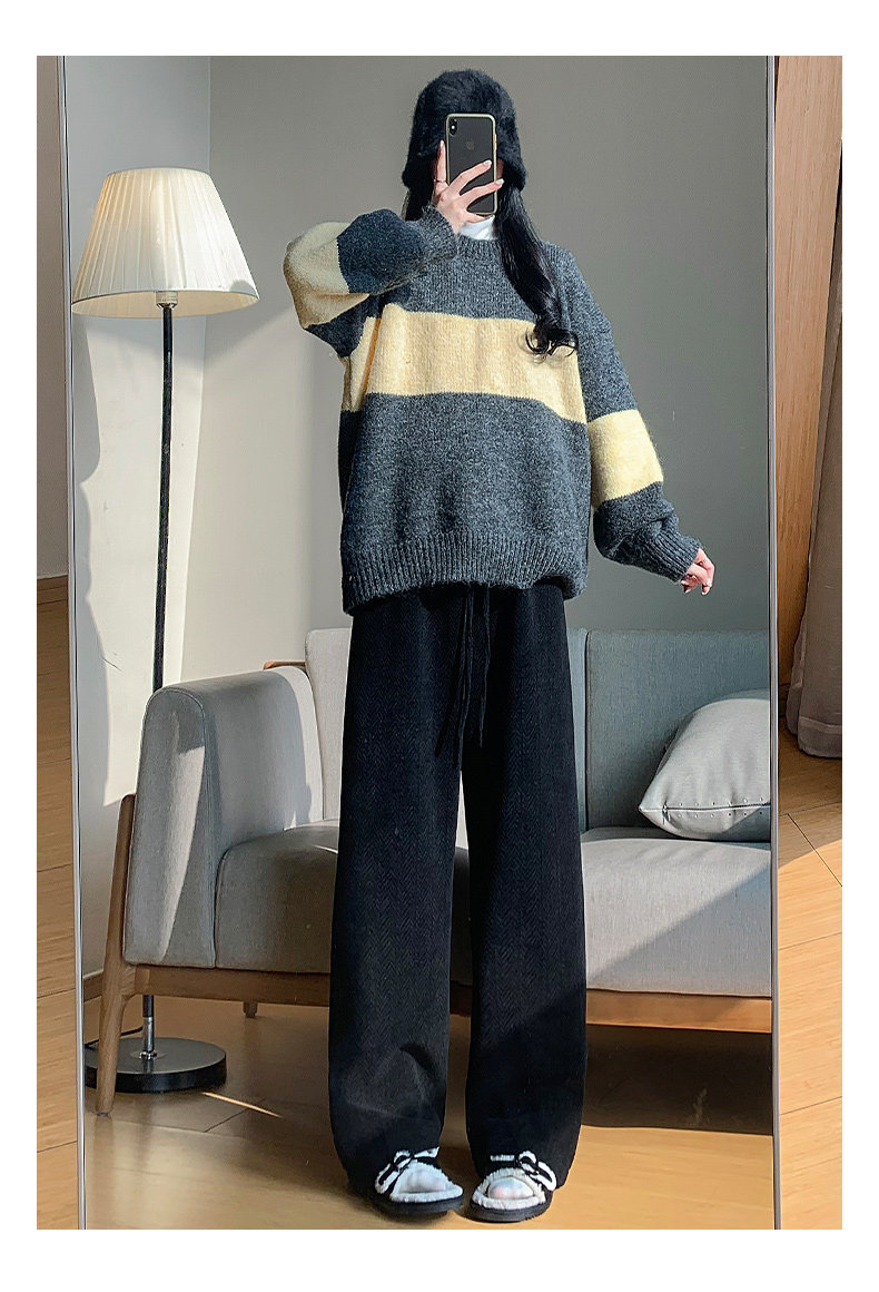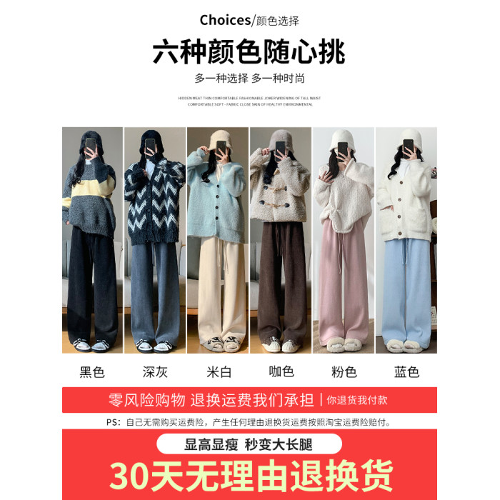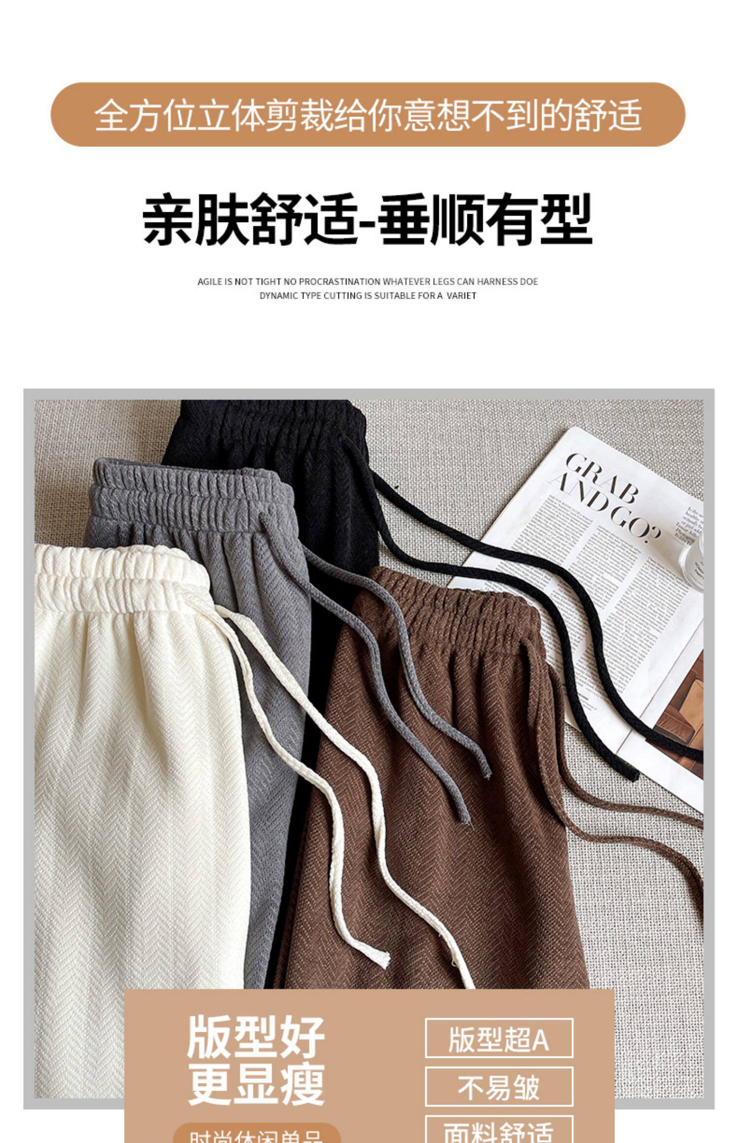 咖色人字紋濶腿褲女秋冬2025新款bf慵懶風小個子雪尼爾加絨直筒褲