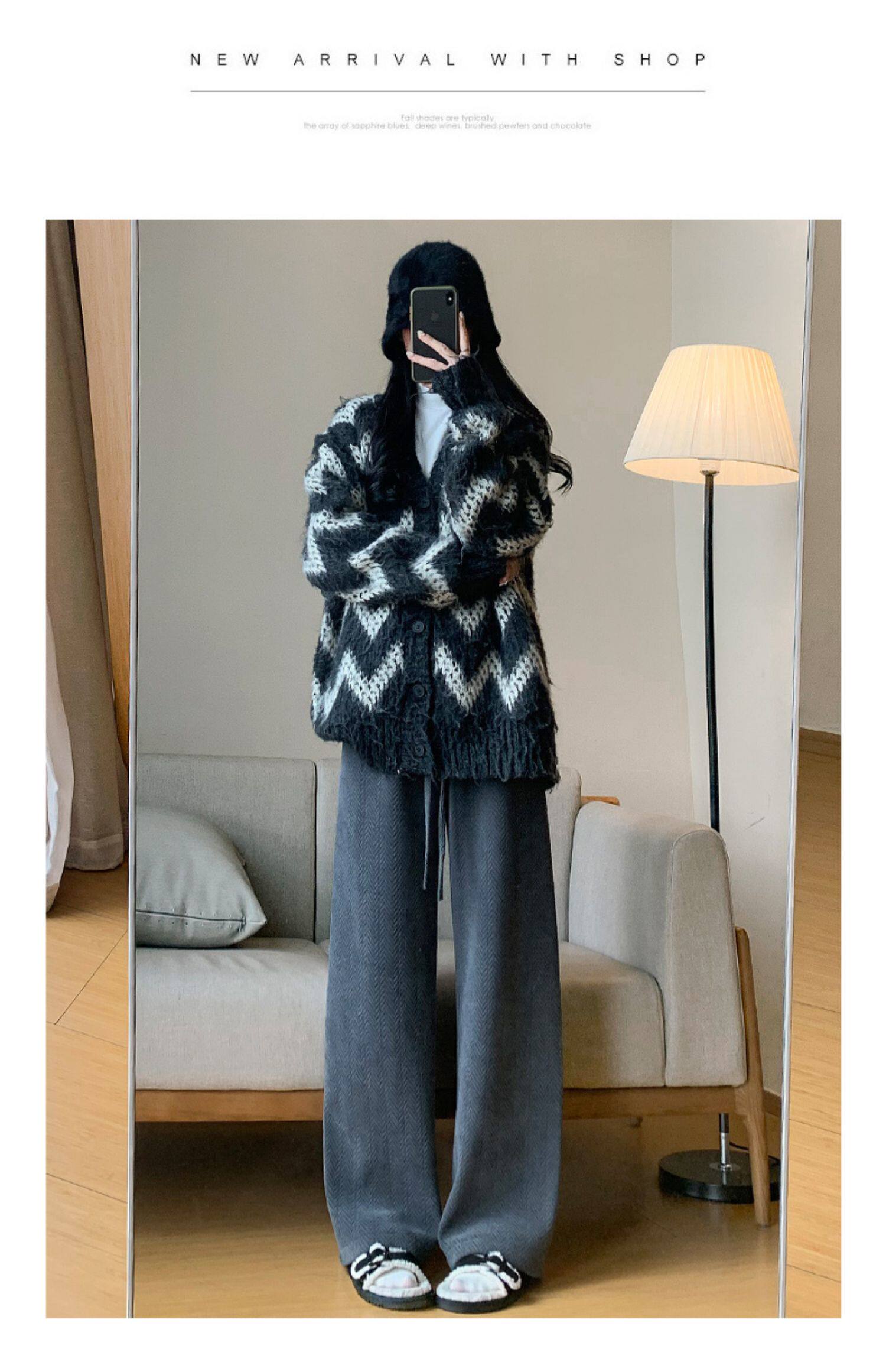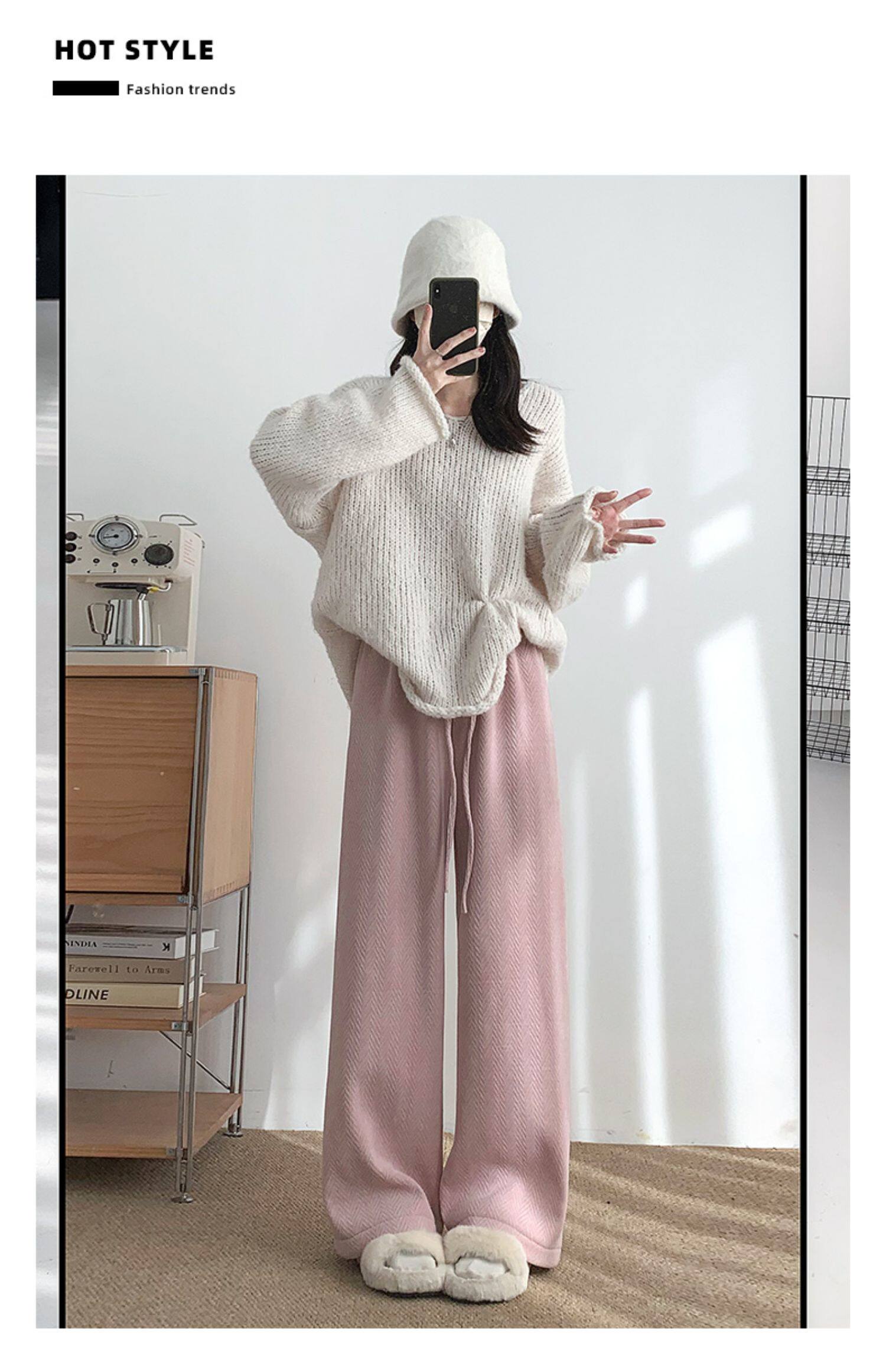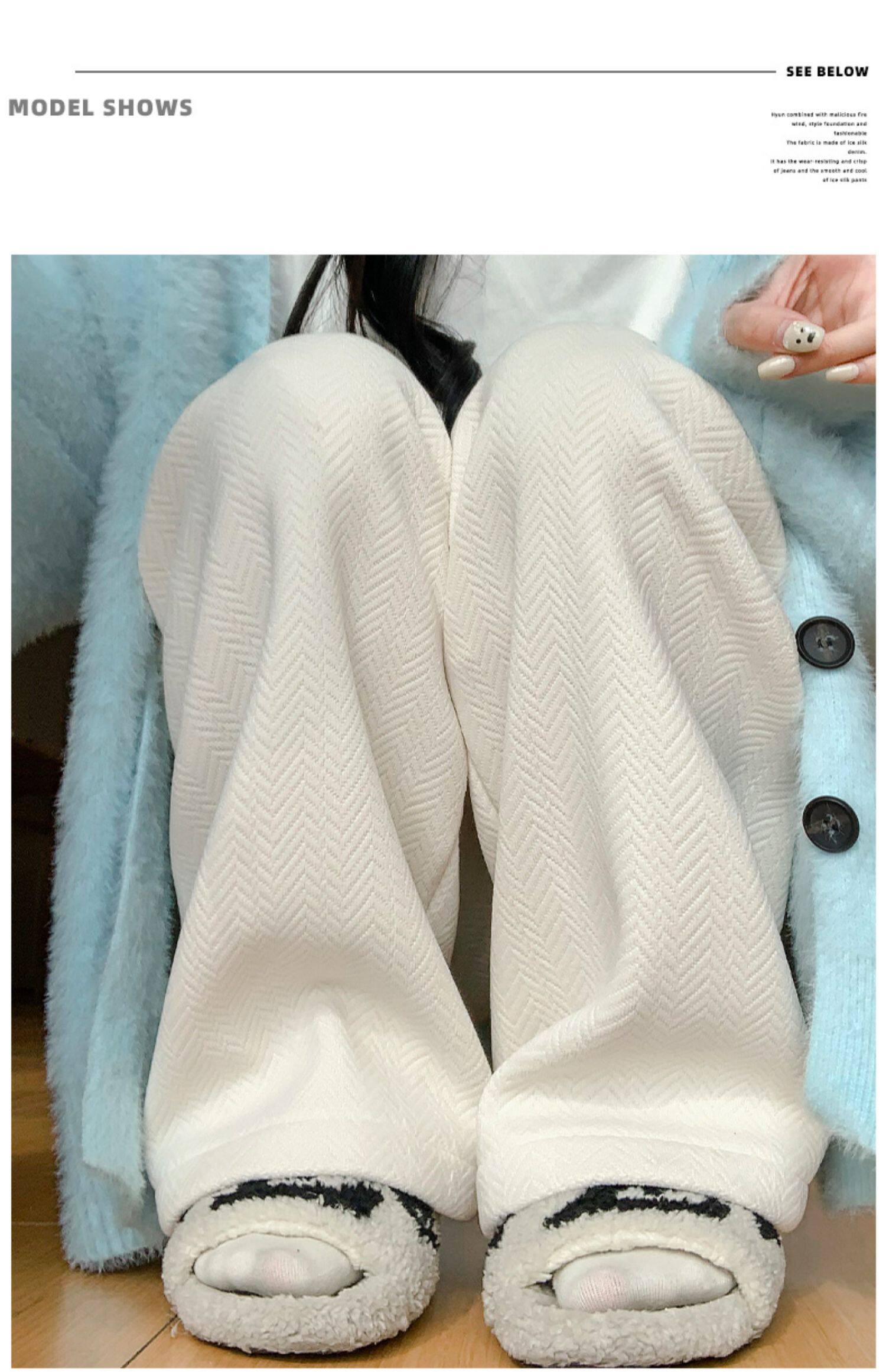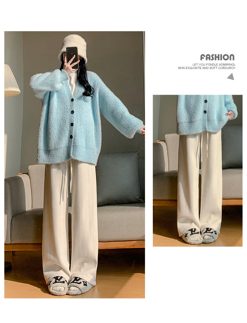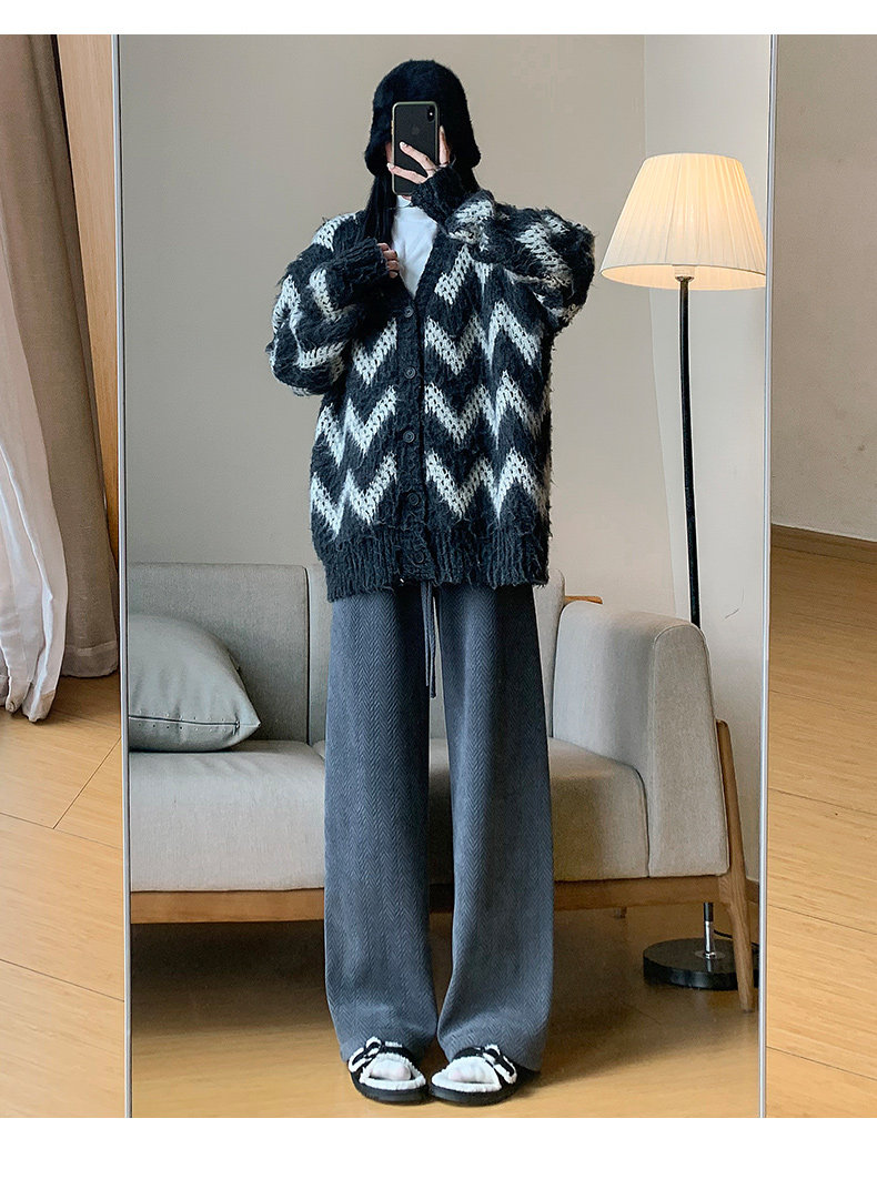 咖色人字紋濶腿褲女秋冬2025新款bf慵懶風小個子雪尼爾加絨直筒褲