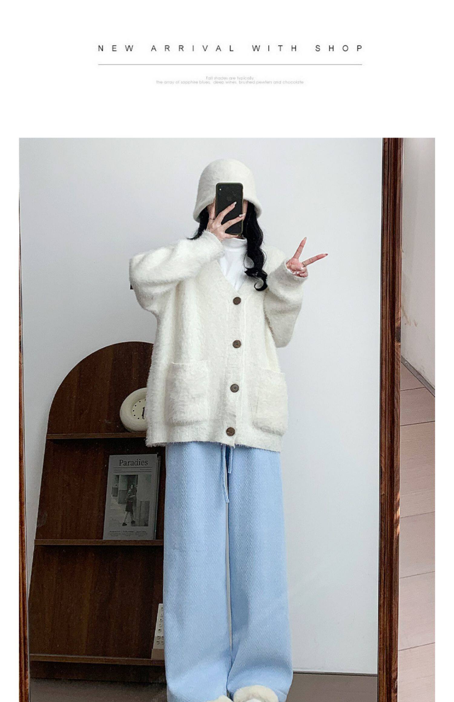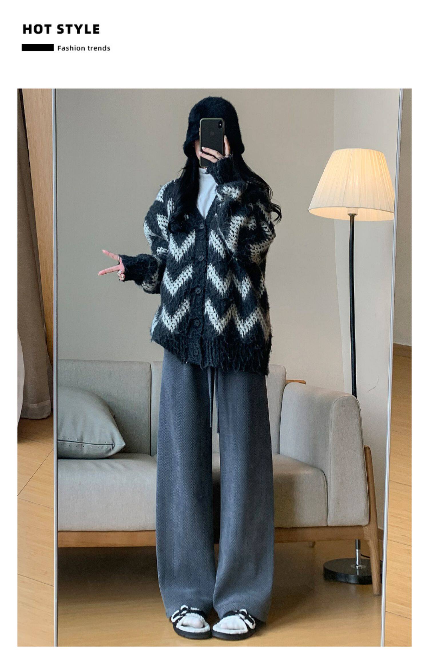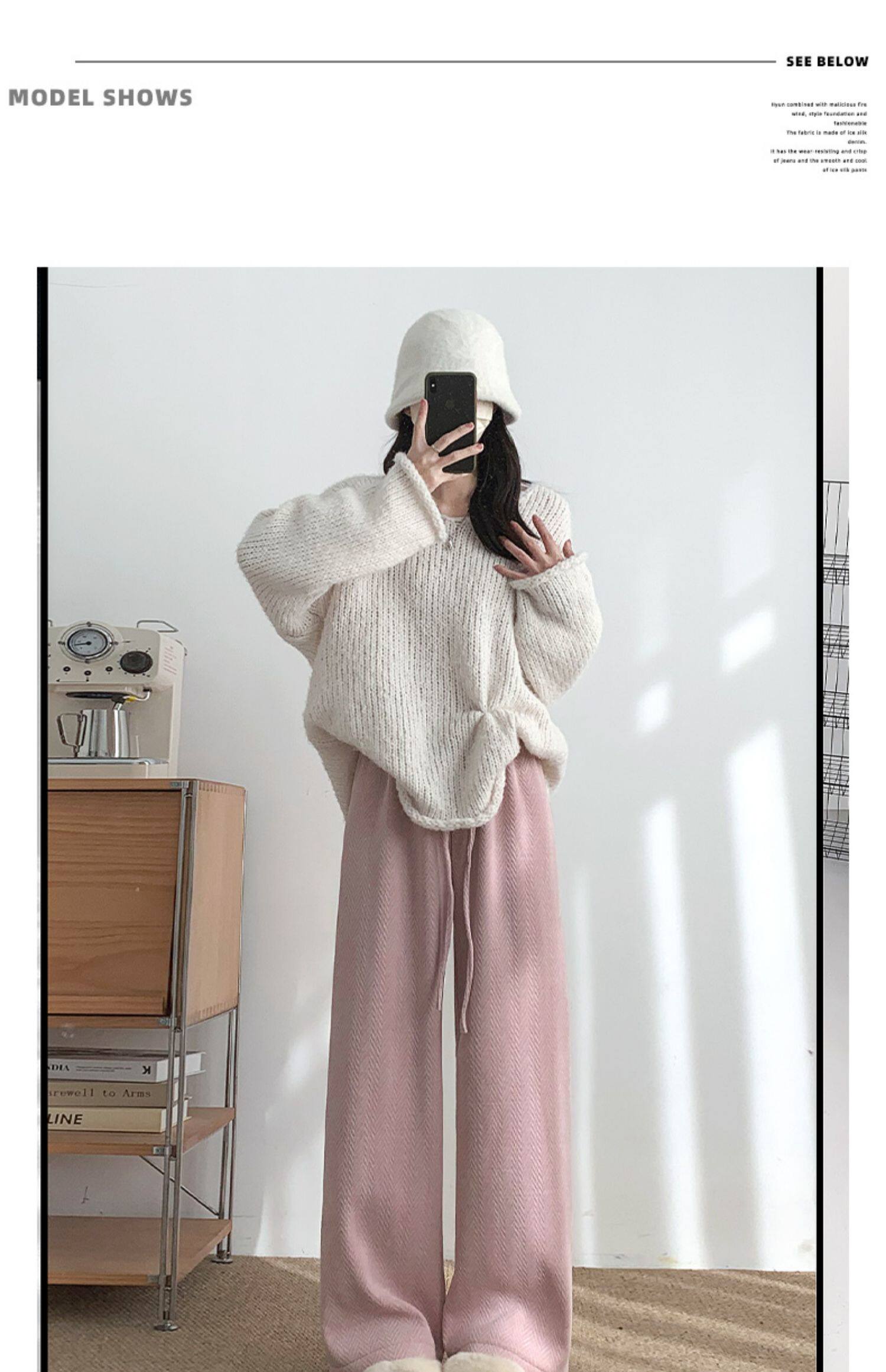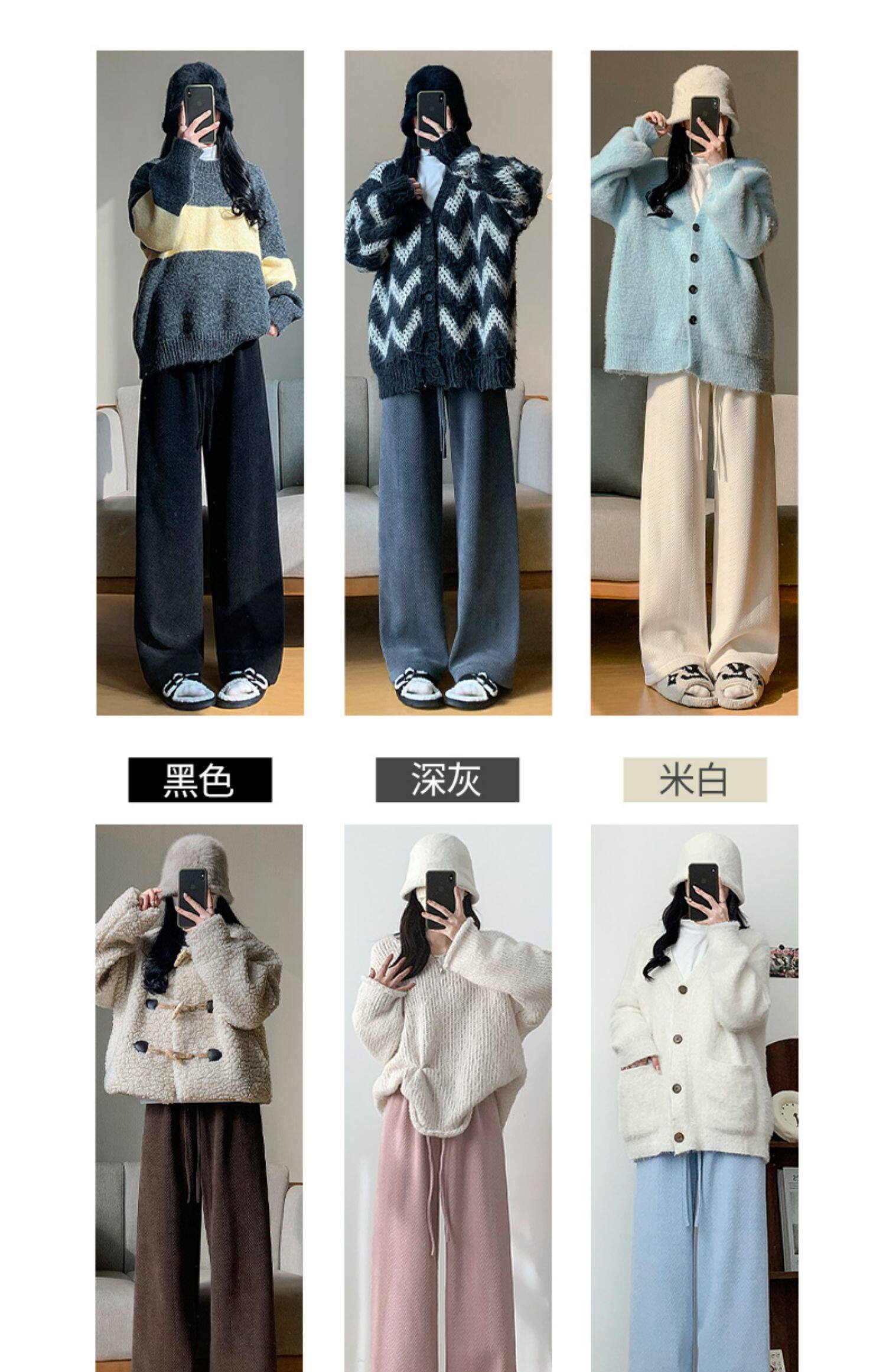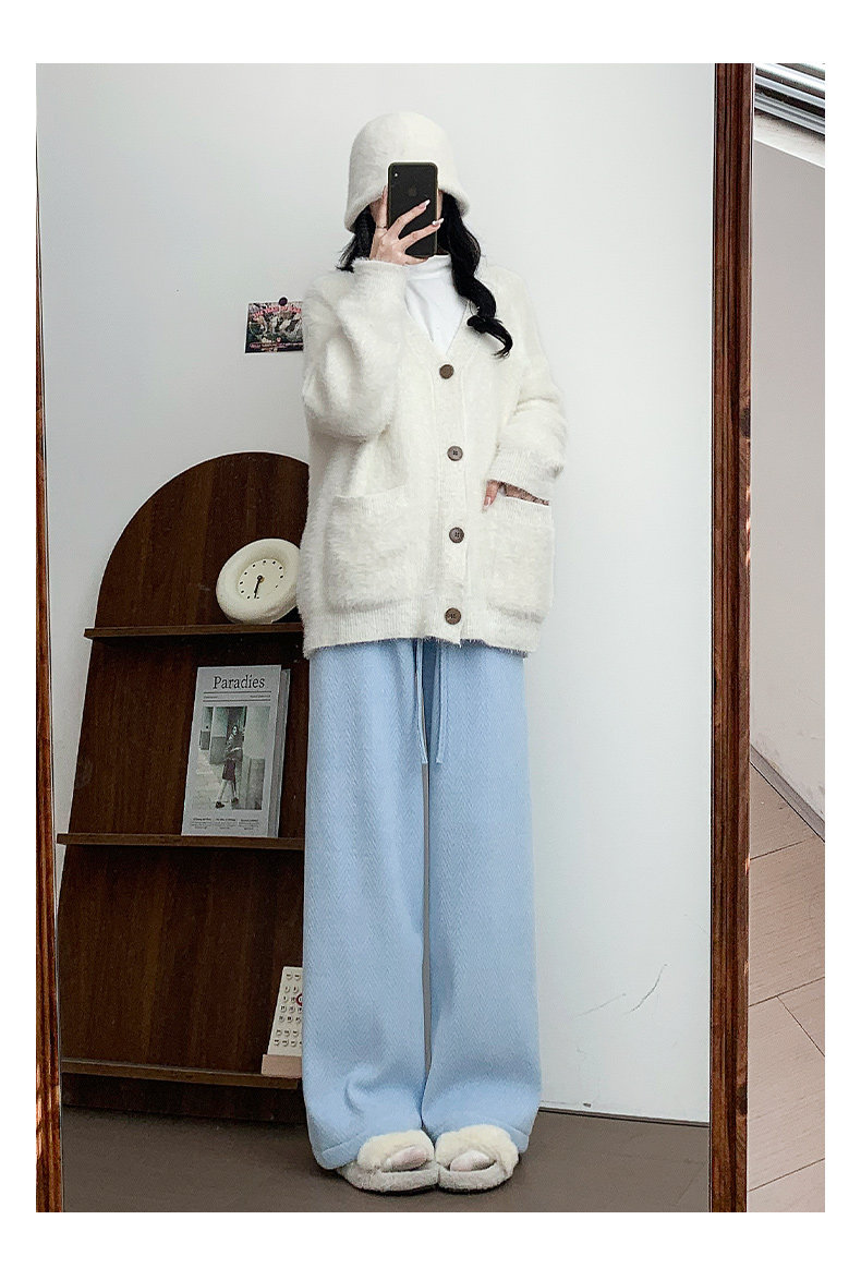 咖色人字紋濶腿褲女秋冬2025新款bf慵懶風小個子雪尼爾加絨直筒褲