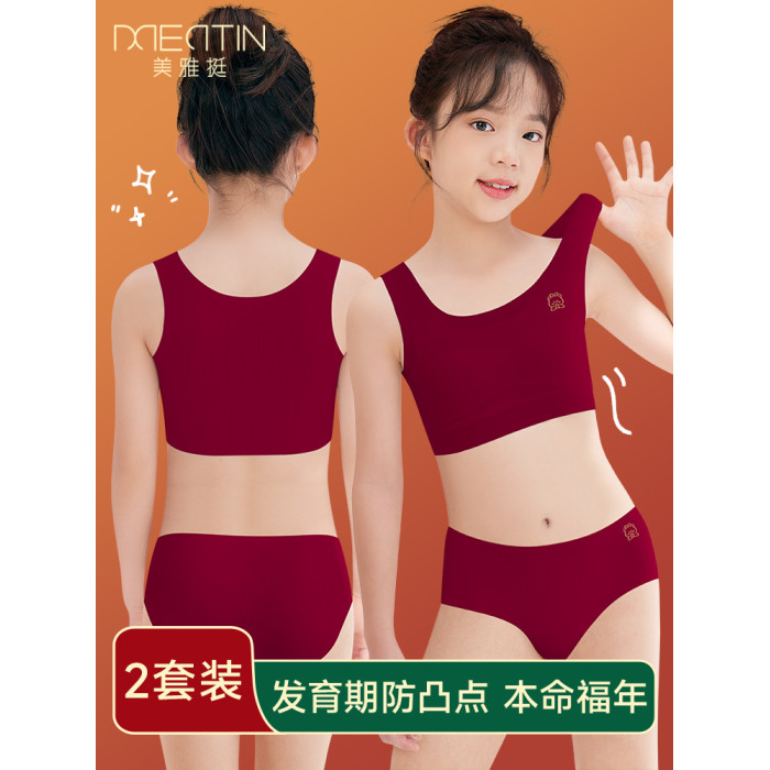 兒童本命年內衣內褲套裝12嵗女孩紅色背心發育期文胸2026年屬馬年