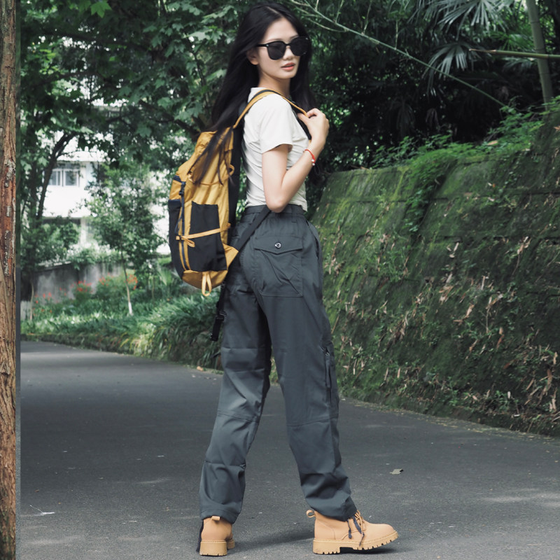 戶外登山褲女徒步秋季防風防水速乾褲美式工裝褲女款加絨沖鋒褲男