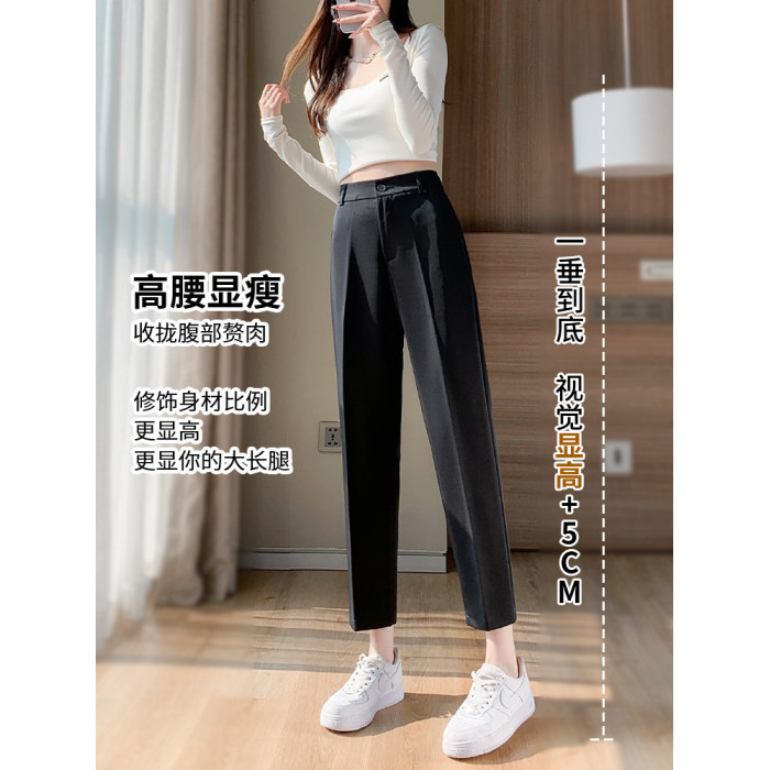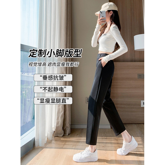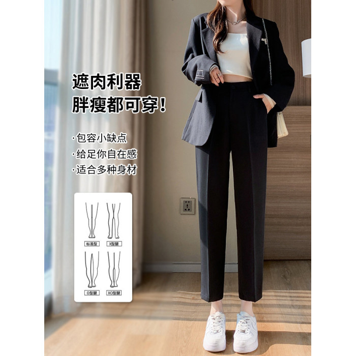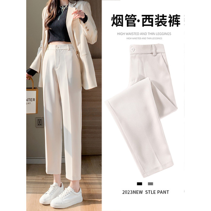 米白色西裝褲女春秋季直筒高腰垂感菸琯九分上班面試工裝職業西褲
