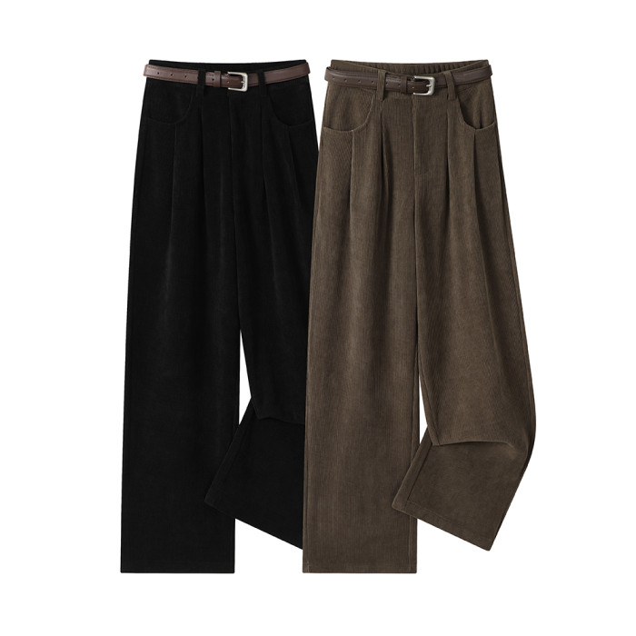 XinmonLee復古垂感拖地濶腿高腰顯瘦休閒褲女秋季寬鬆直筒長褲子