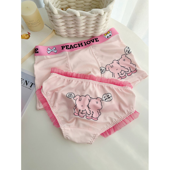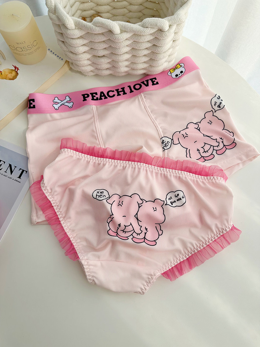 【情侶款】掐屁股~甜庫情侶內褲一男一女冰絲可愛2024新款檔純棉