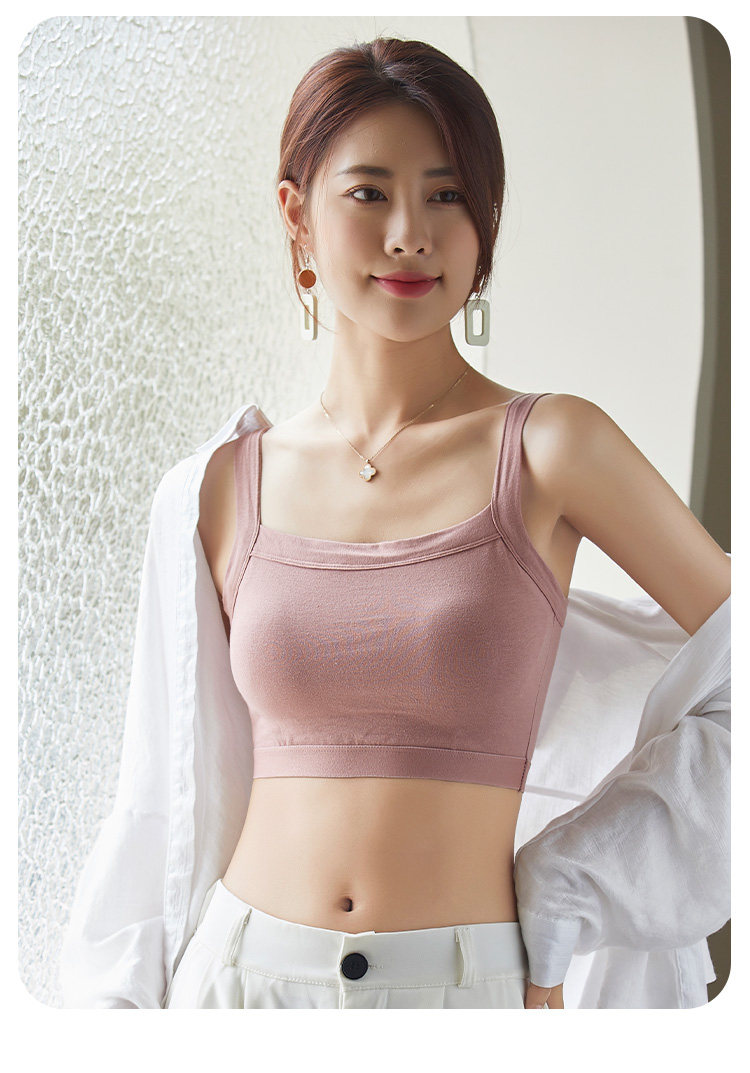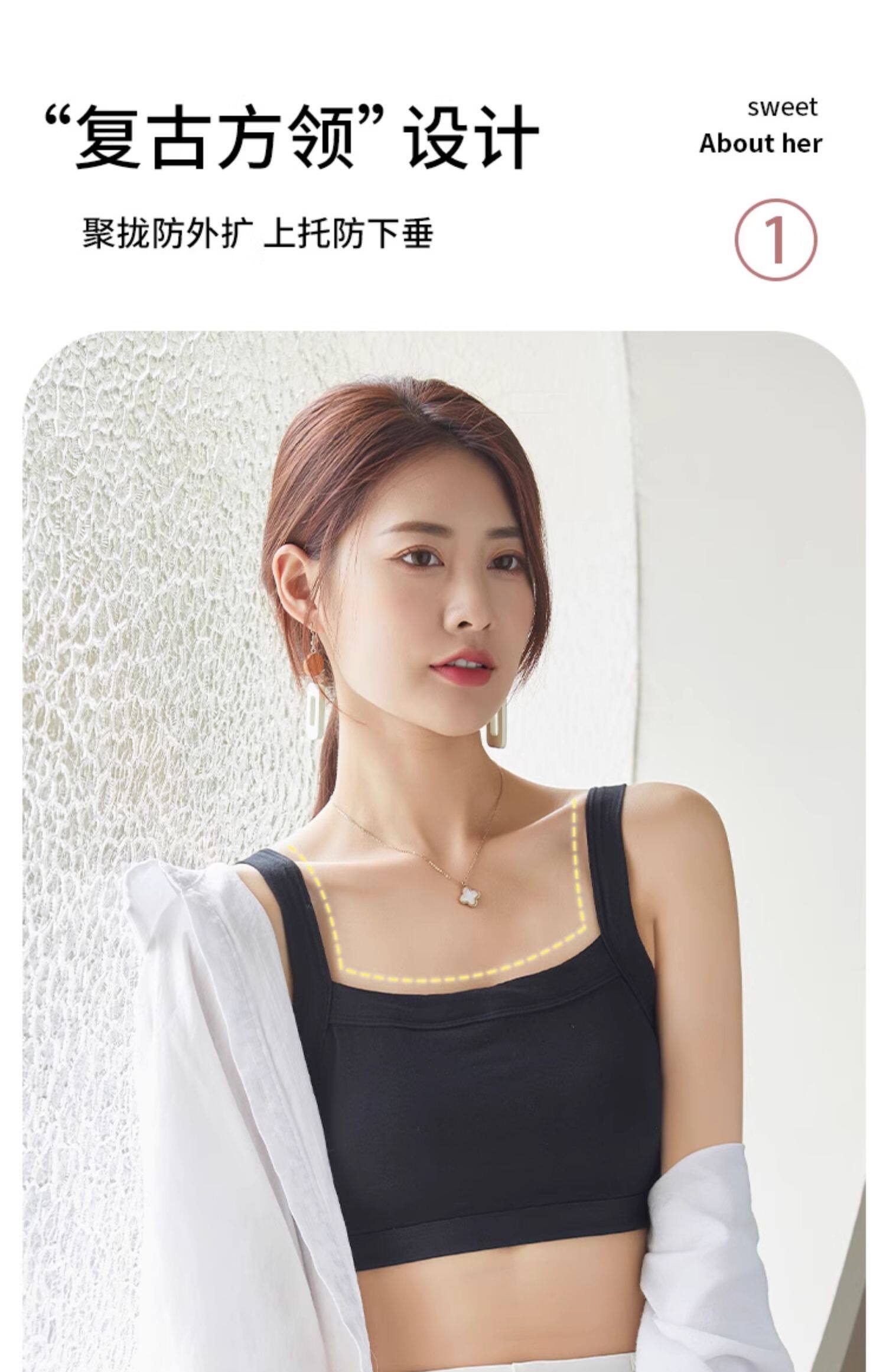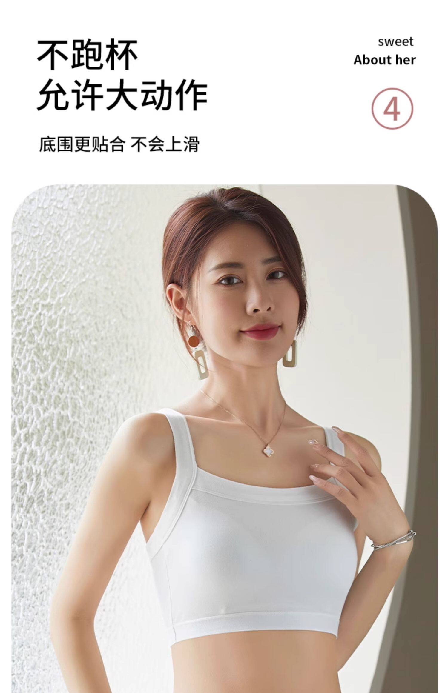 純棉美背吊帶一體式背心內衣女學生初中少女文胸高中生青春期運動