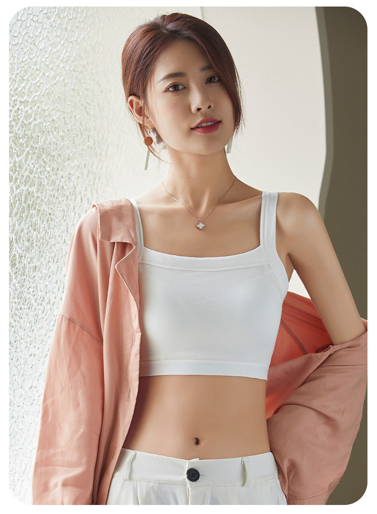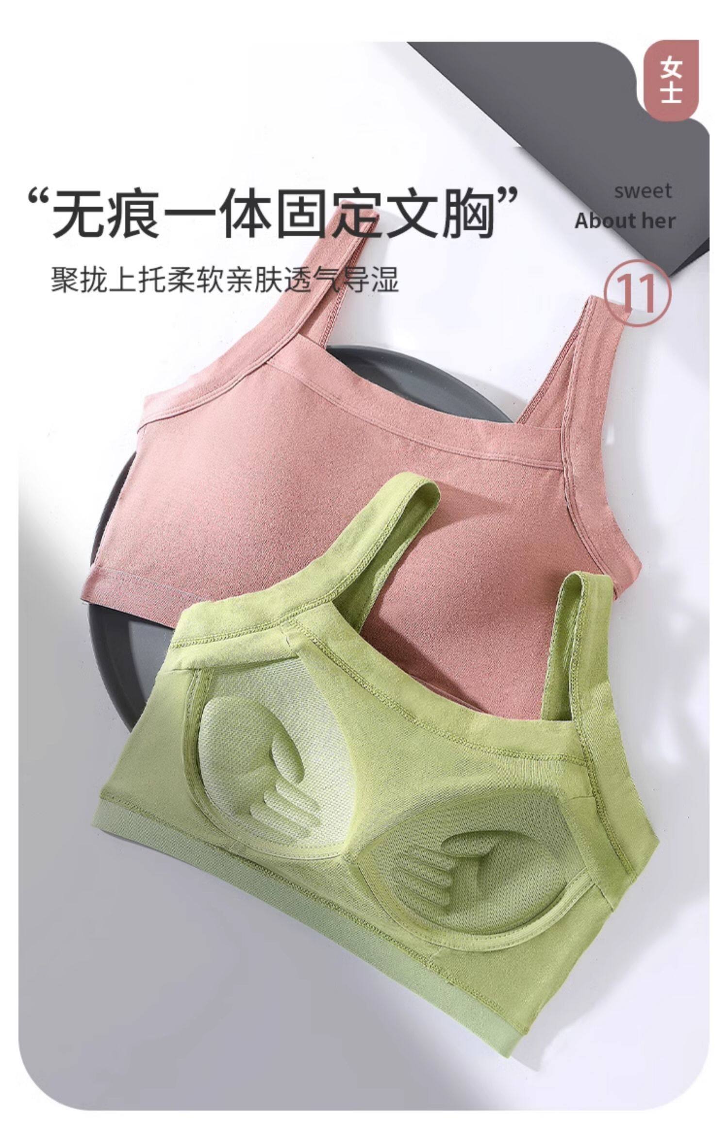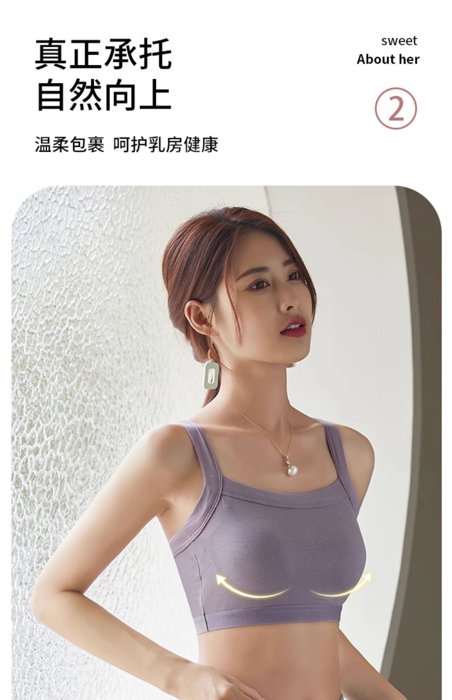 純棉美背吊帶一體式背心內衣女學生初中少女文胸高中生青春期運動