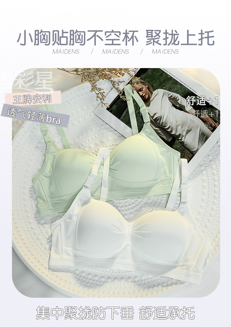 少女內衣聚攏小胸夏季薄款女學生初中高中無鋼圈收副乳小清新文胸