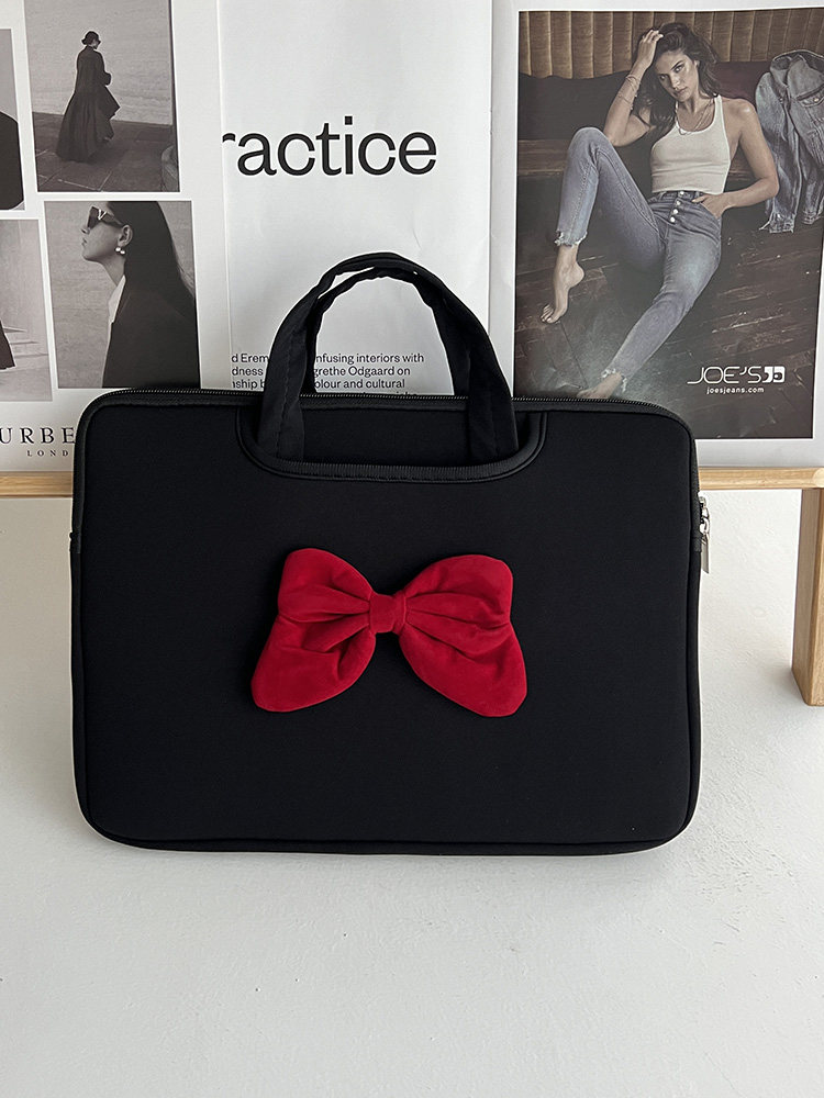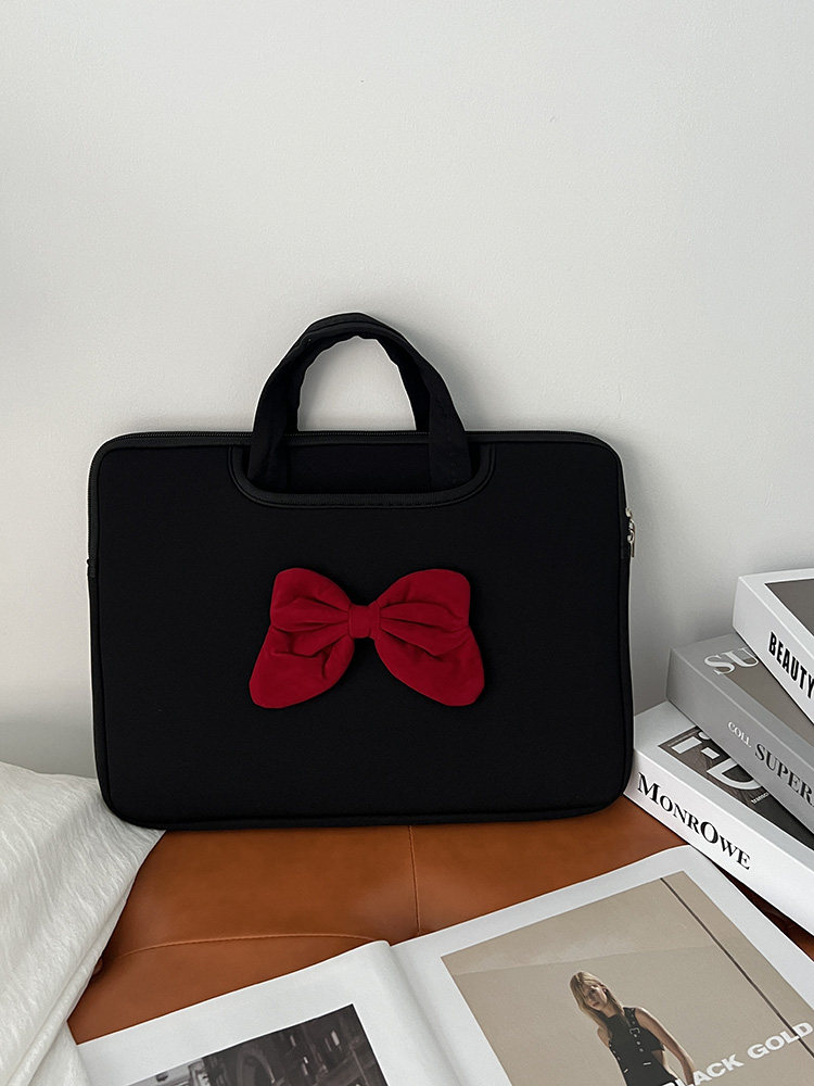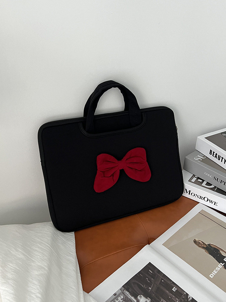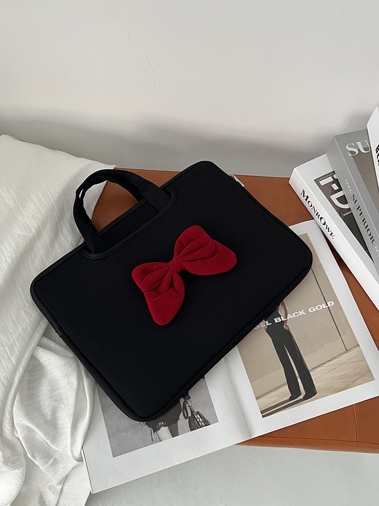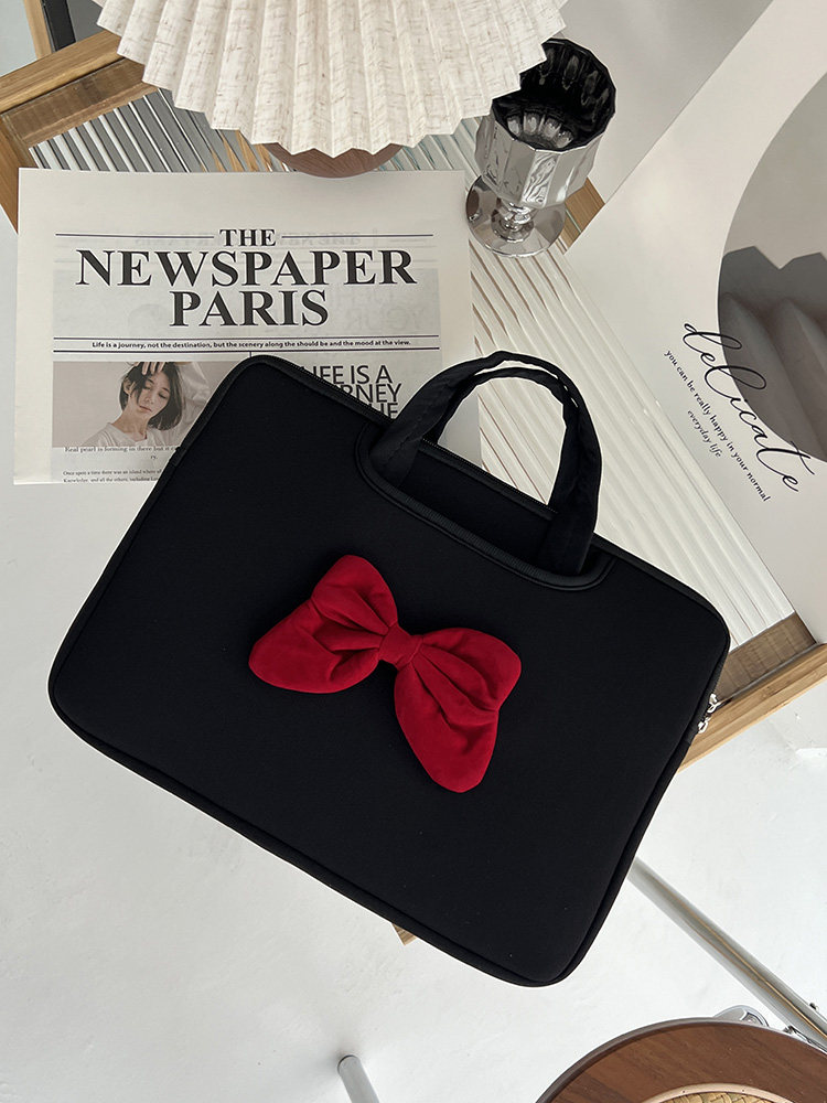 原創時尚潮牌學院風蝴蝶結新款手提筆記型電腦包ipad平板防摔收納包防水防震公文包15寸14寸通勤學生手提包