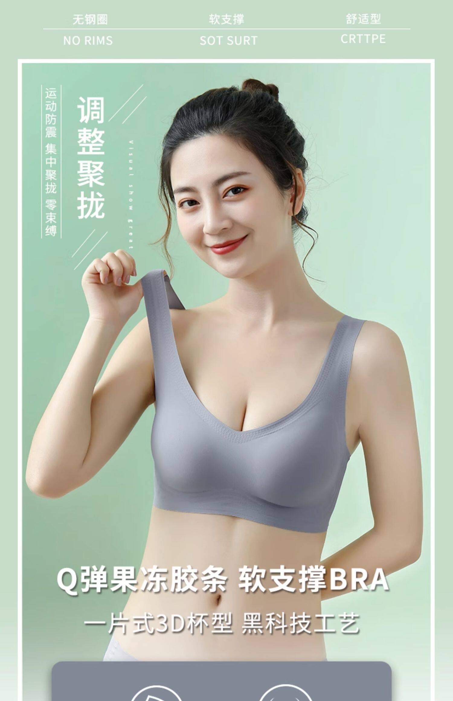 乳膠無痕運動內衣女果凍條美背小胸聚攏無鋼圈防下垂背心式文胸罩