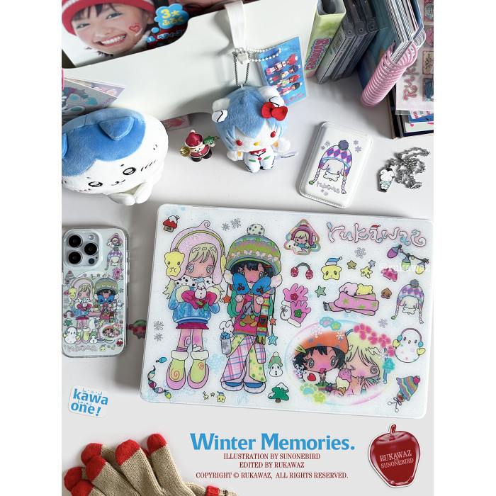 RUKAWAZx鳥鳥一聯名原創冬日廻憶動漫日系適用蘋果電腦筆電MacbookproM3/air 13/16/14寸滿天星亮面