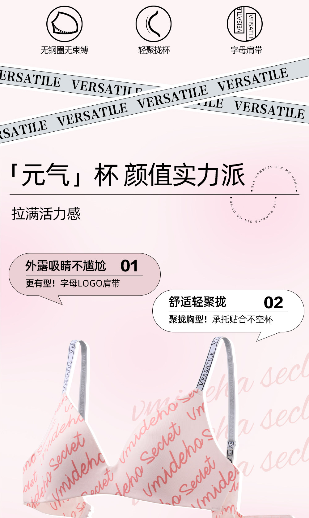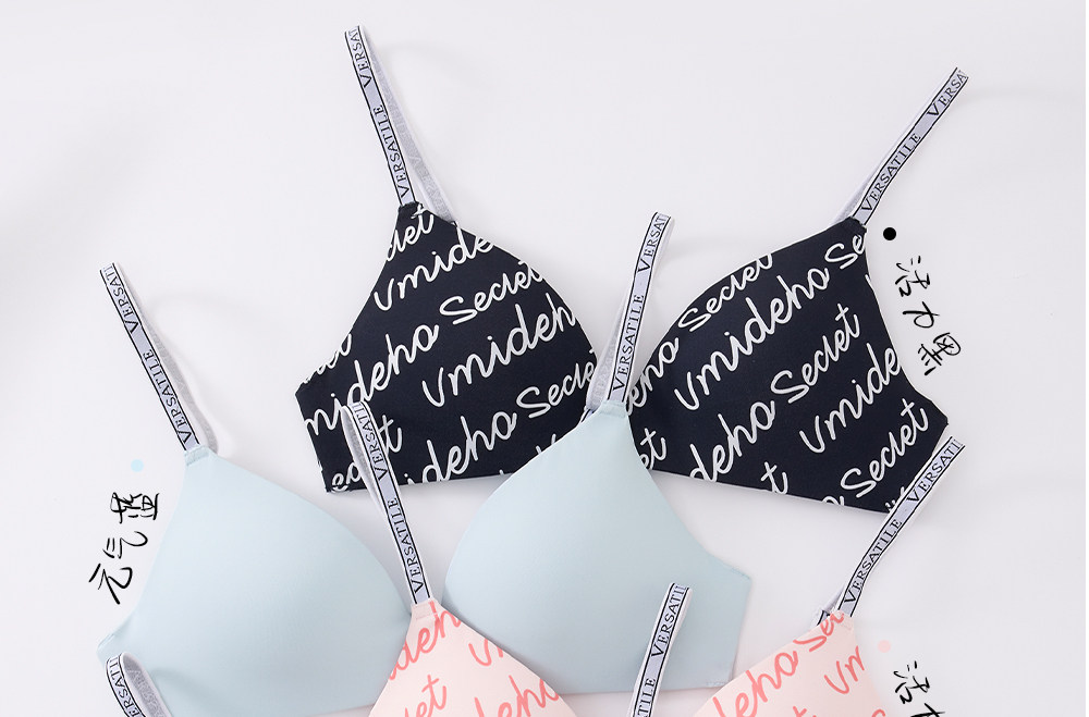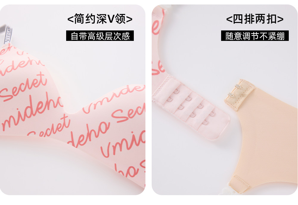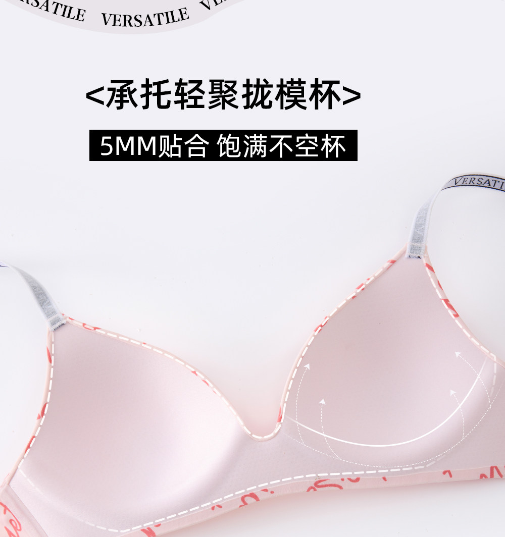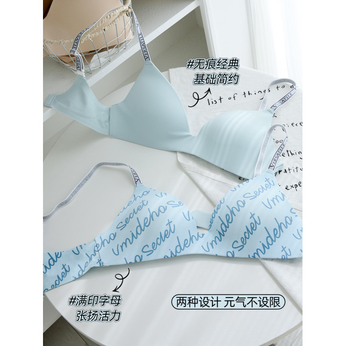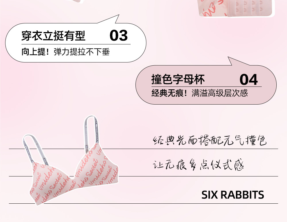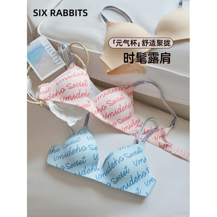 六隻兔子無痕內衣女輕聚攏軟支撐防下垂胸罩字母肩帶無鋼圈文胸
