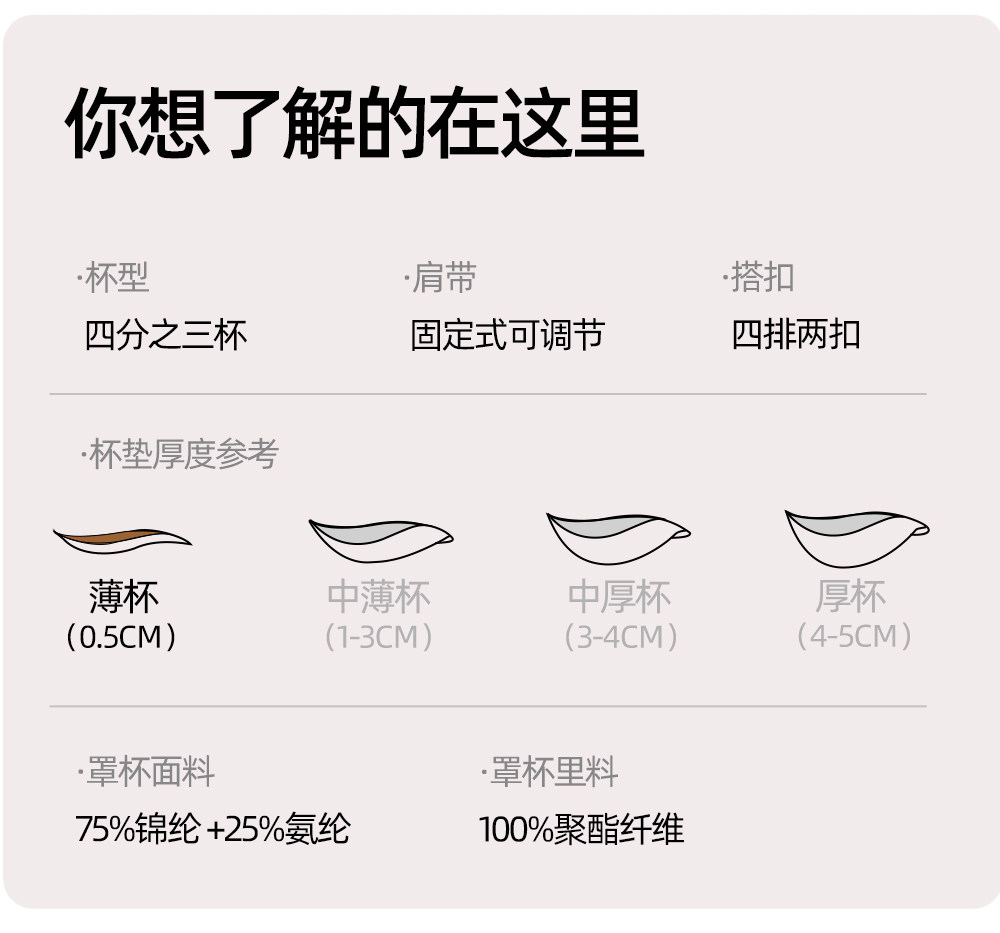 | 罩杯款式 | 3/4罩杯 |