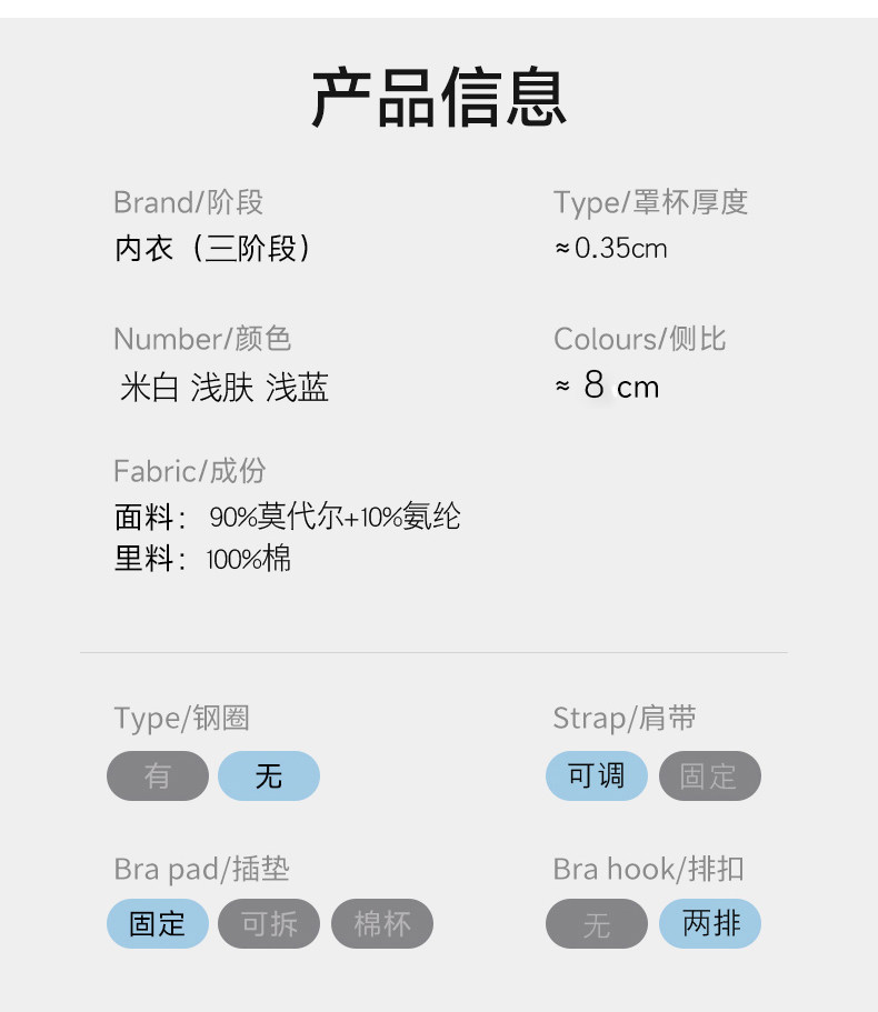 | 罩杯厚度 | 薄模杯 |