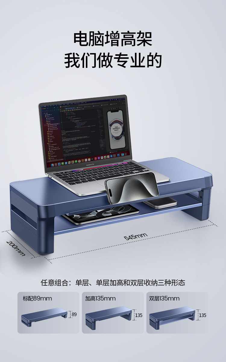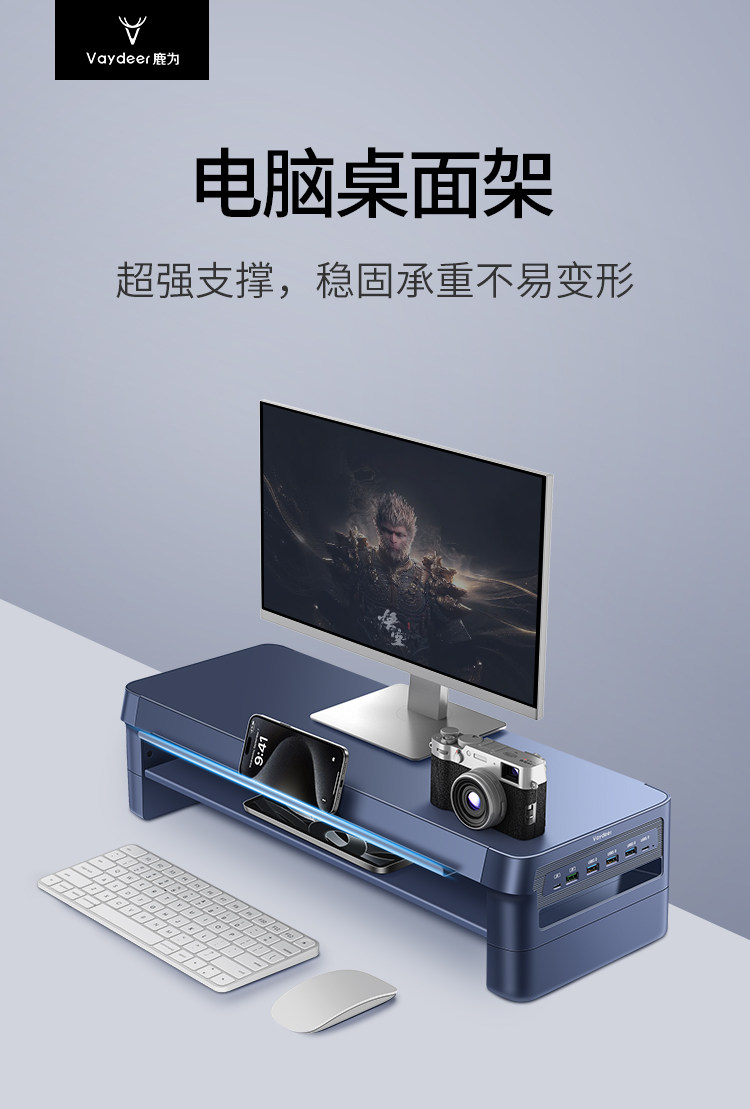 鹿爲金屬桌上型電腦顯示器增高架加寬加高帶收納槽電競桌面螢幕支架
