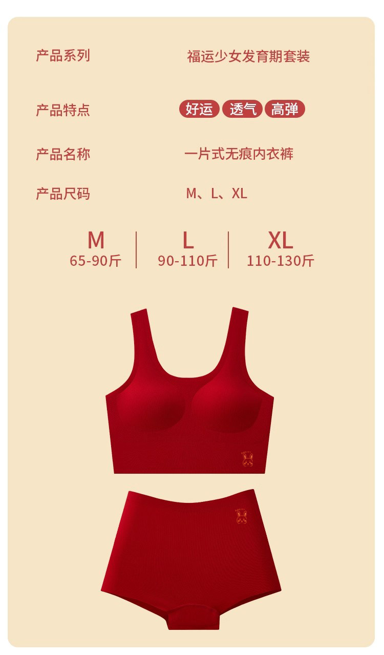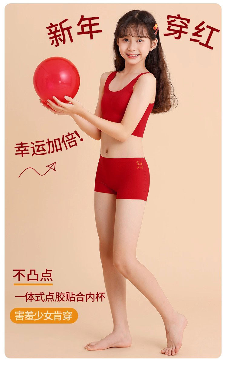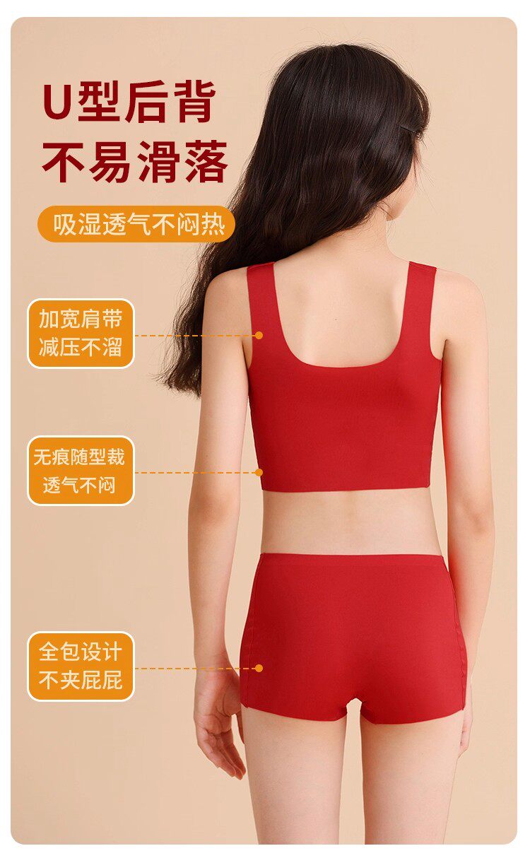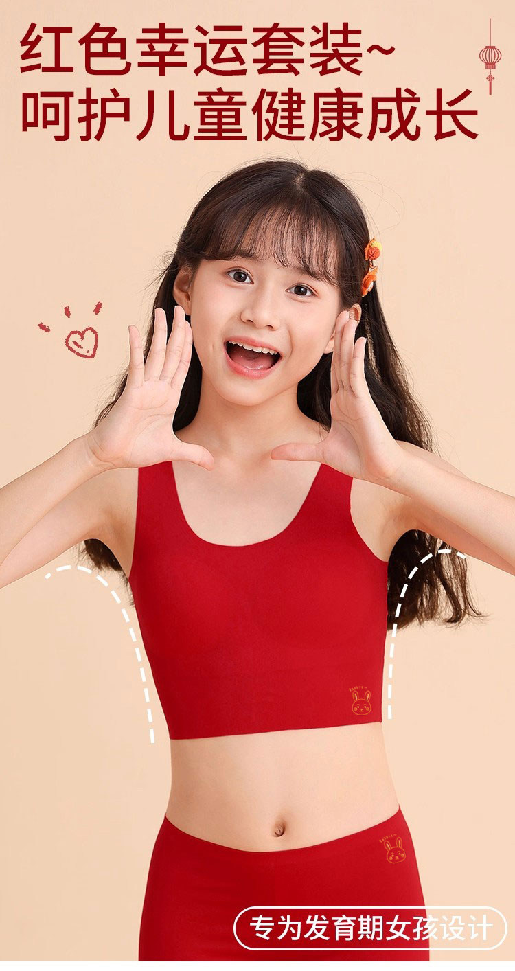 女童內衣本命年紅色套裝發育期學生兒童青少年女孩小背心少女文胸