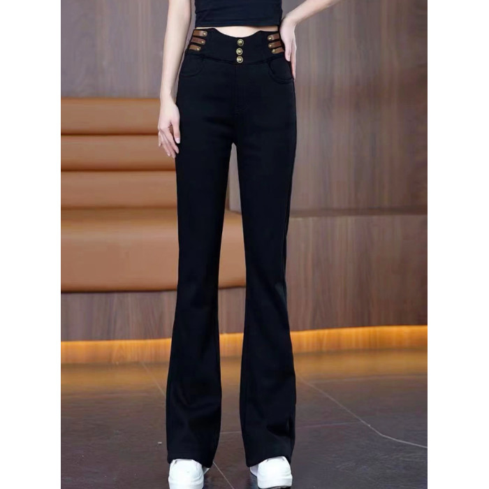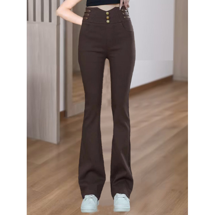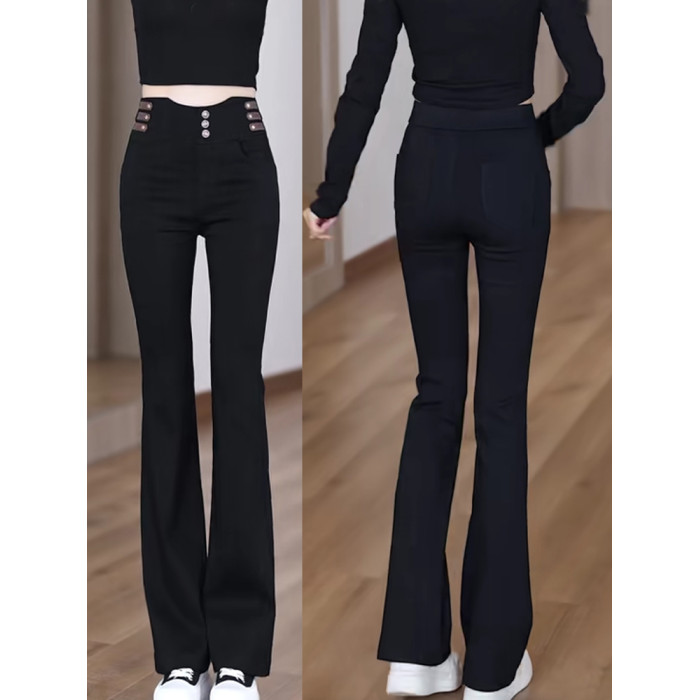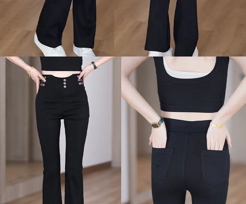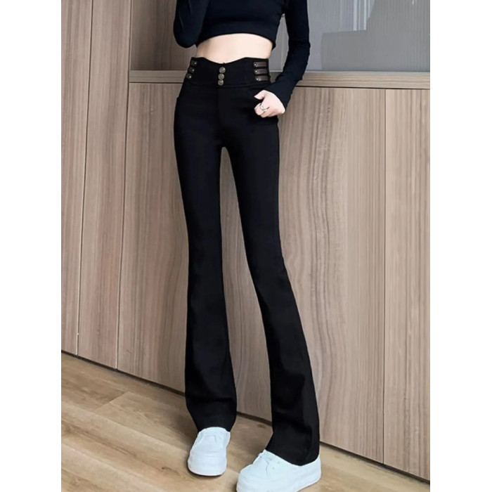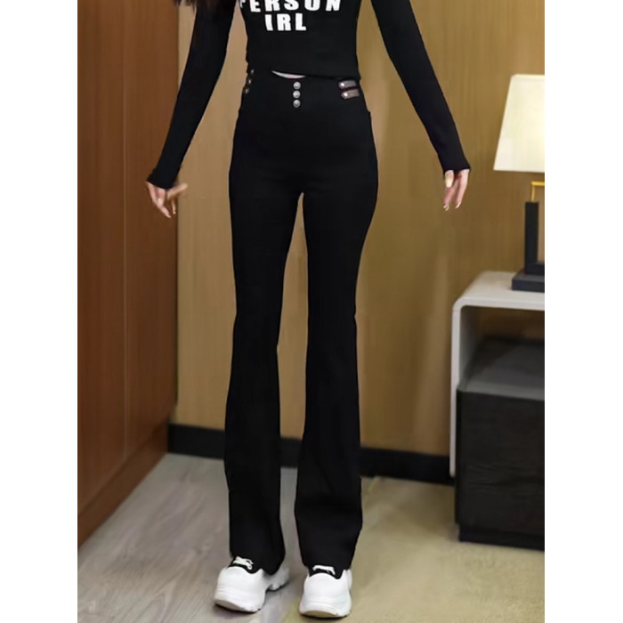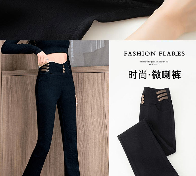 高腰微喇褲女春秋小個子爆款2025新款黑色氣質顯瘦外穿打底喇叭褲