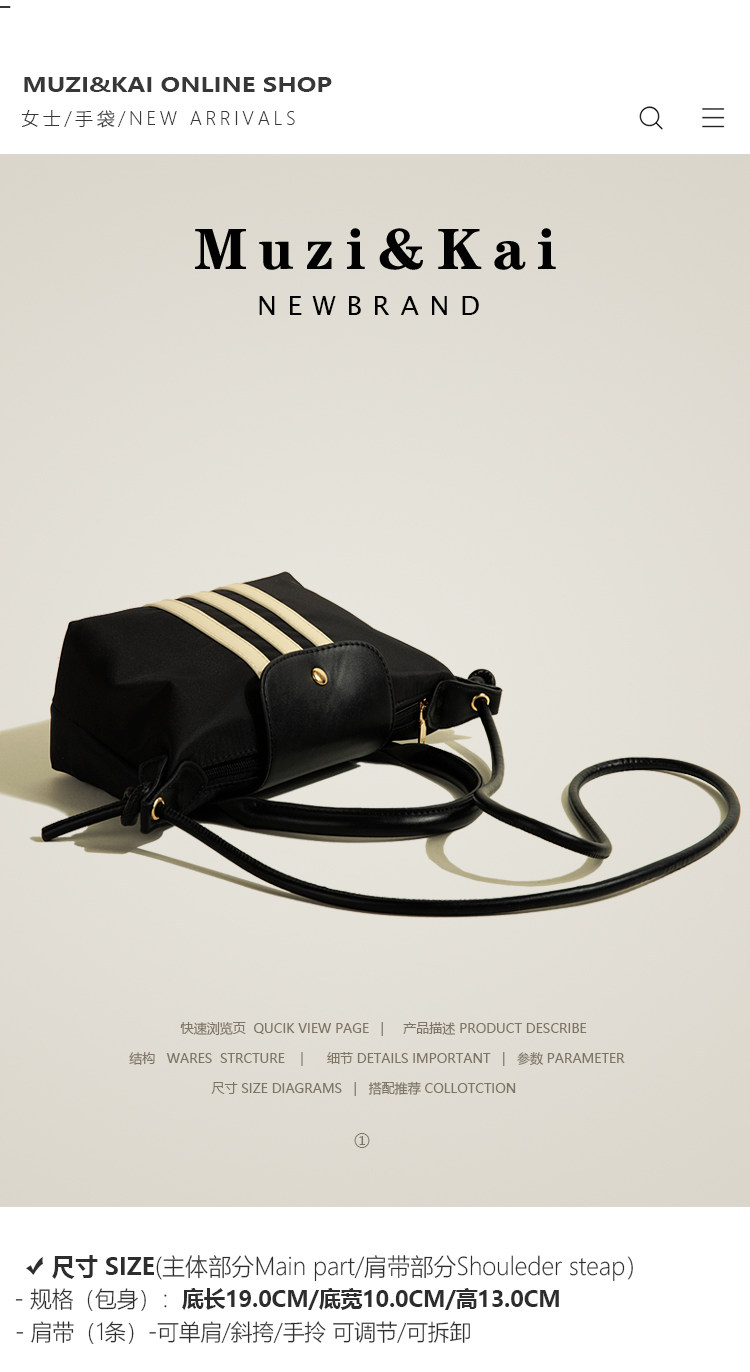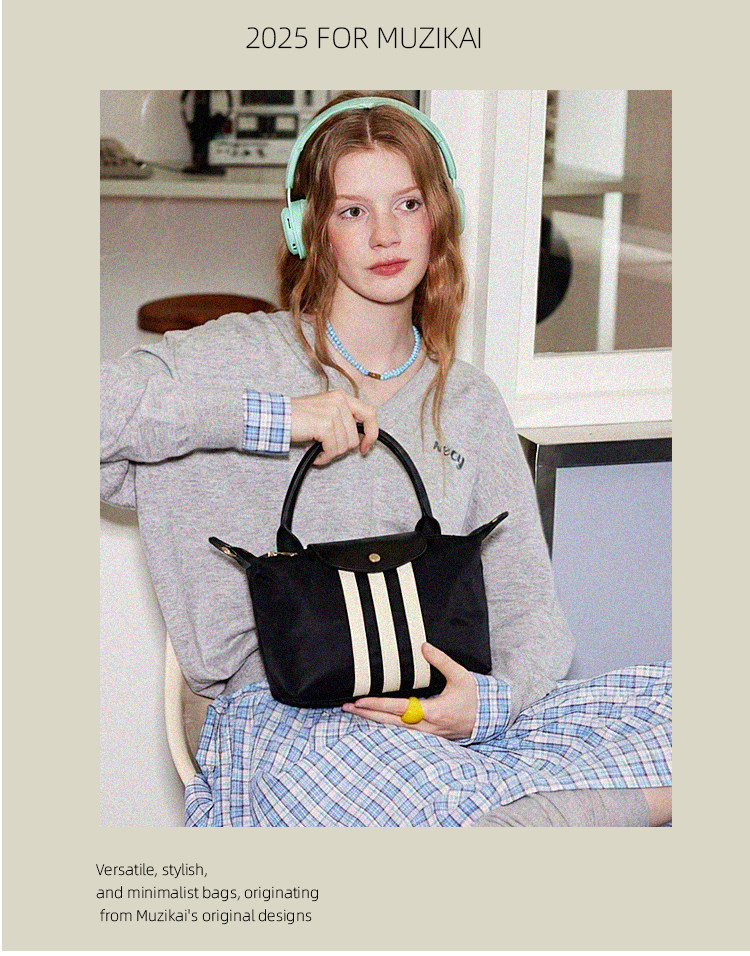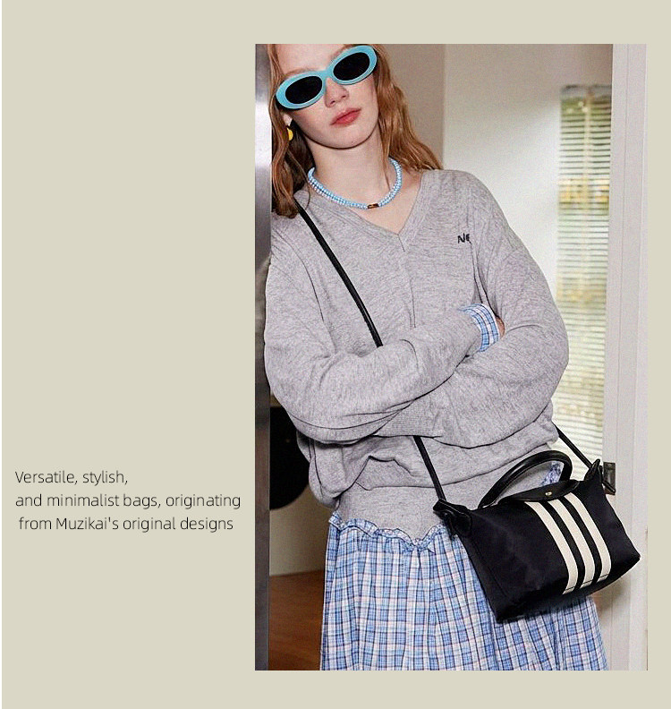 MuziKai包包高級質感小衆條紋手提包包女2026新款簡約休閒斜後後背包