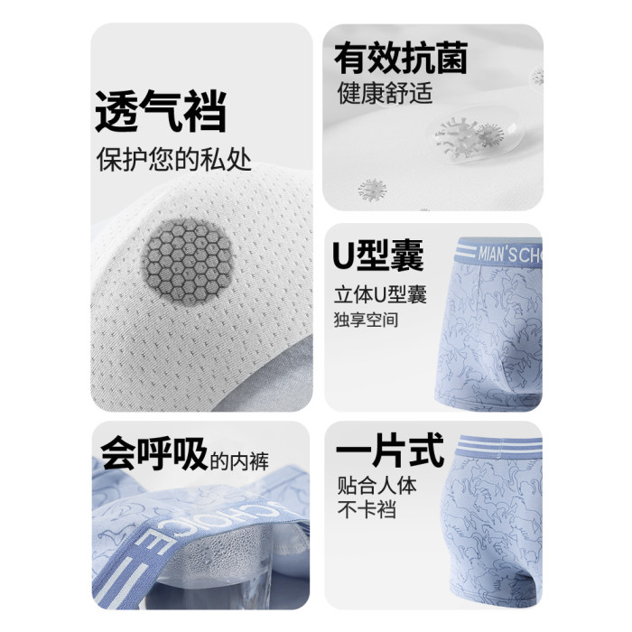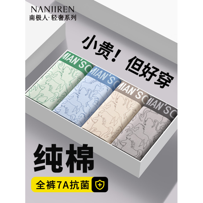 南極人男士內褲純棉抗菌透氣青少年運動大碼四角短褲頭2025年新款