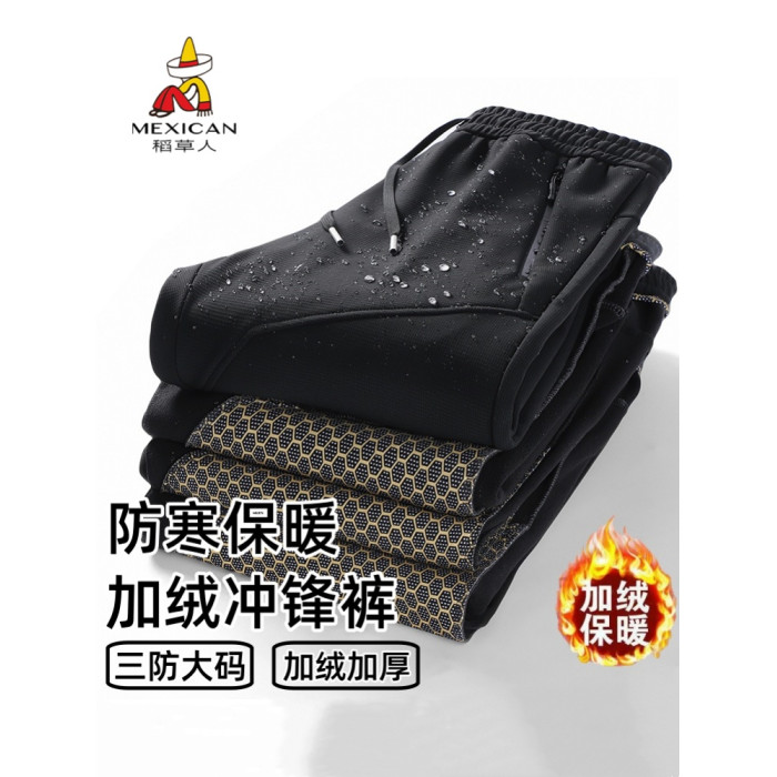 稻草人石墨烯護膝沖鋒褲男女秋冬三防高彈戶外長褲加絨加厚運動褲